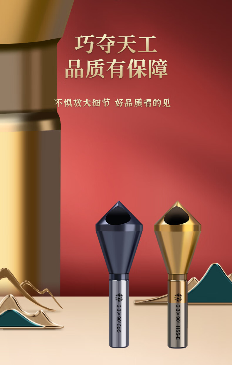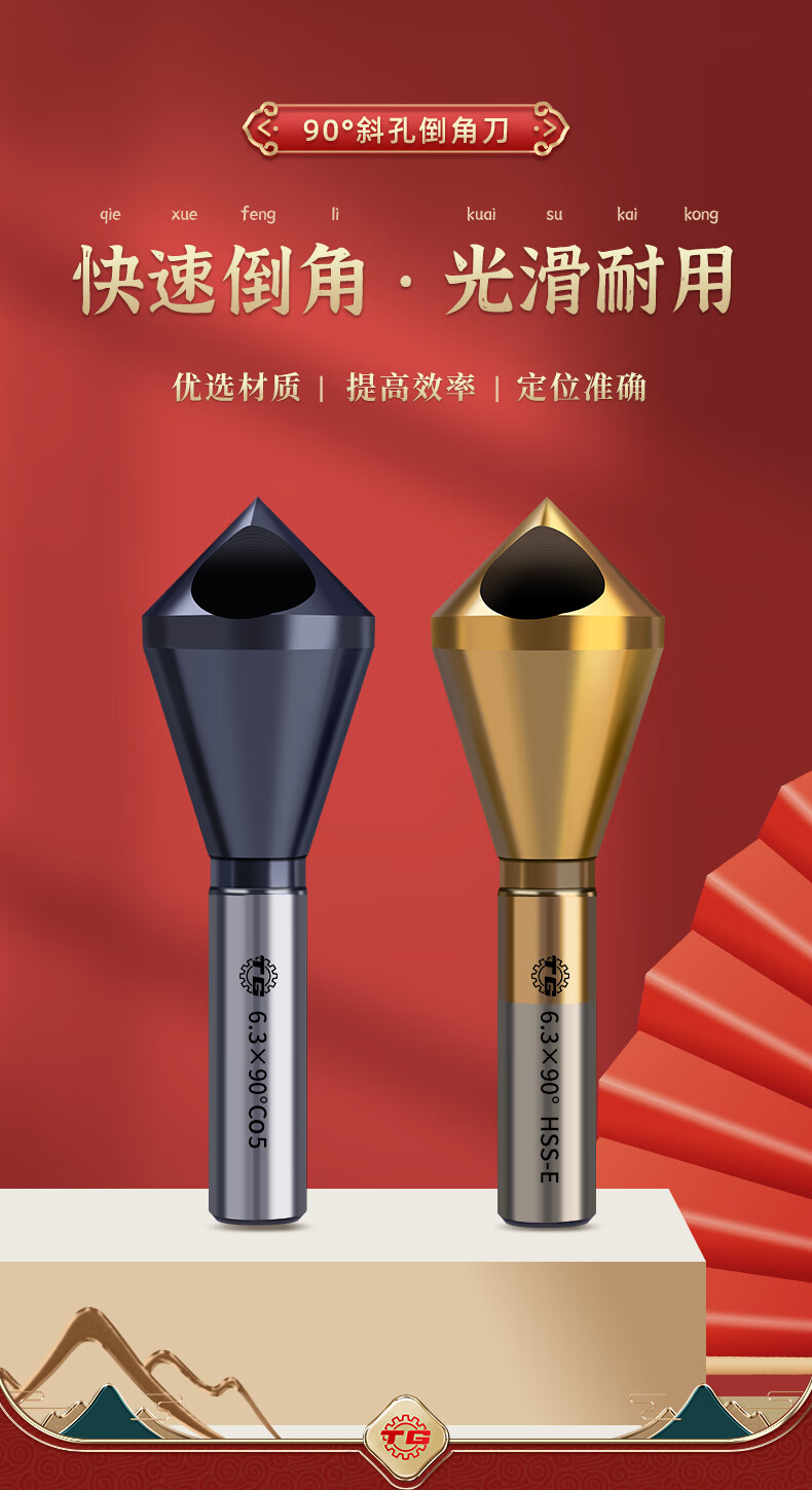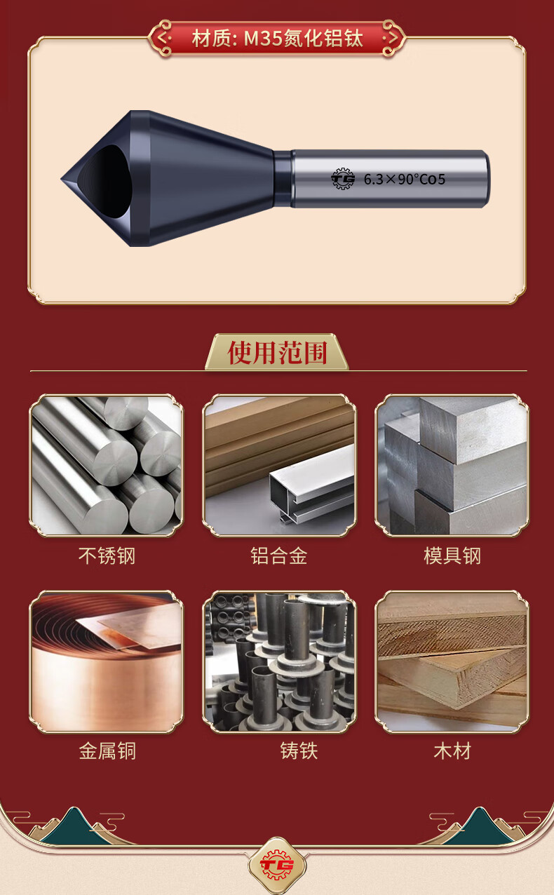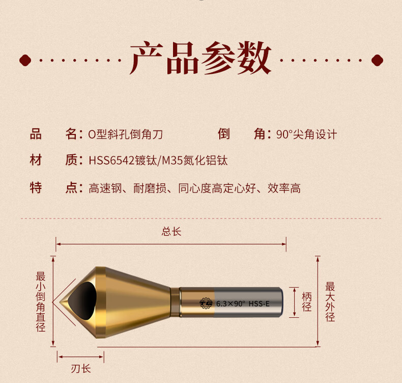 TIANGONG M35 cobalt-containing oblique hole chamfering cutter 90-degree countersink chamfer drill bit inner hole chamfering device new internal chip removal M35 cobalt-containing durable type 5-10mm