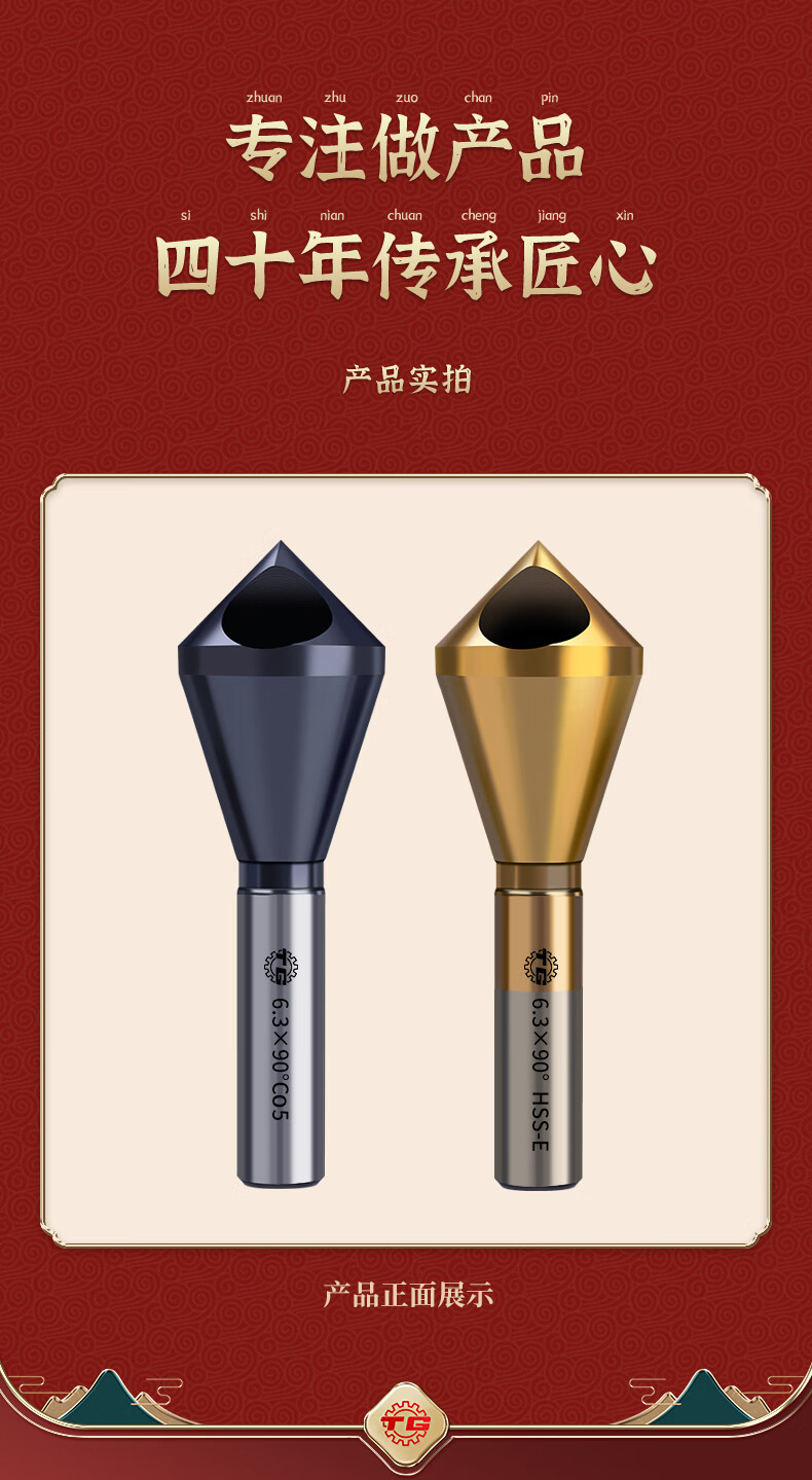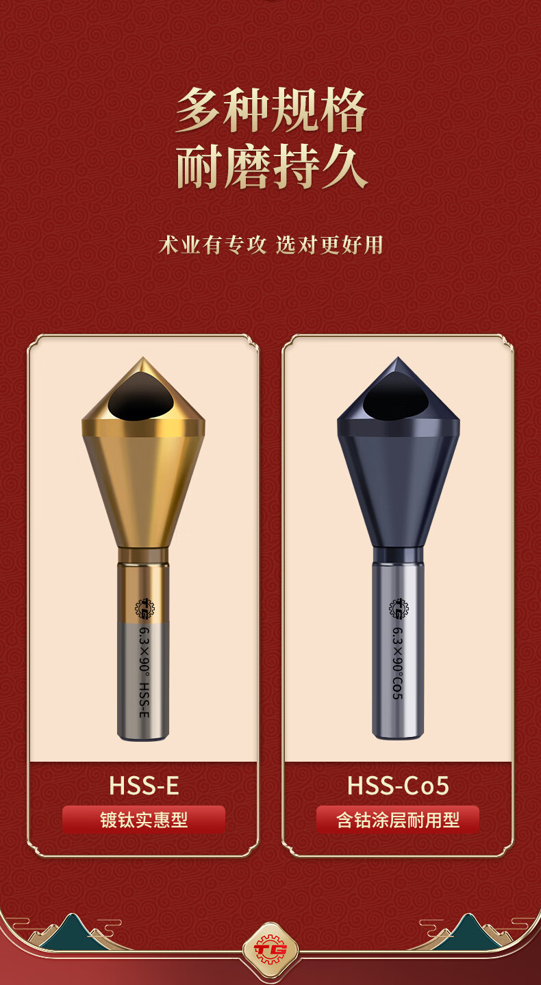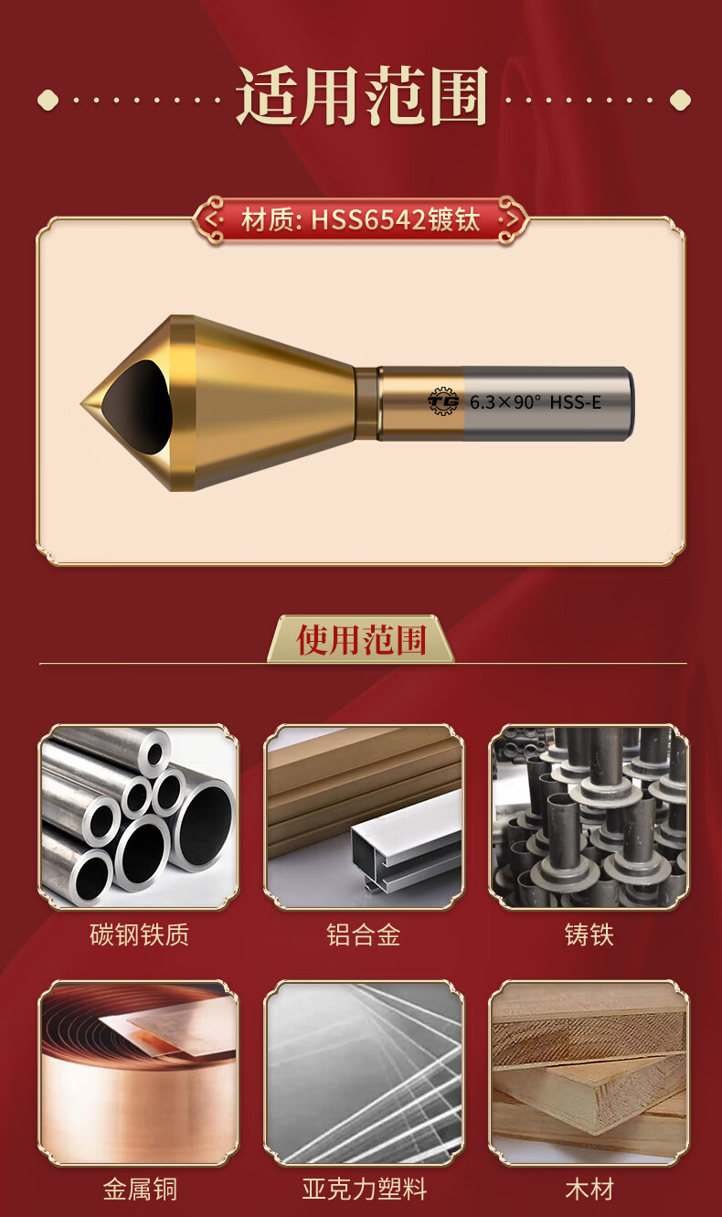 TIANGONG M35 cobalt-containing oblique hole chamfering cutter 90-degree countersink chamfer drill bit inner hole chamfering device new internal chip removal M35 cobalt-containing durable type 5-10mm