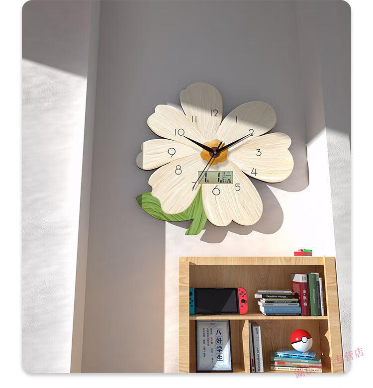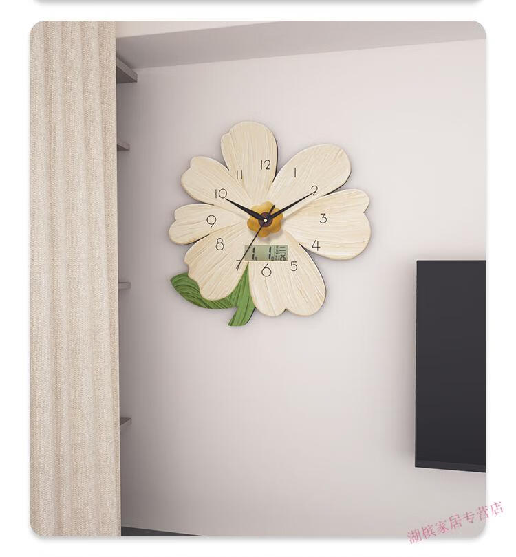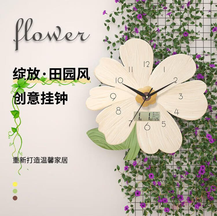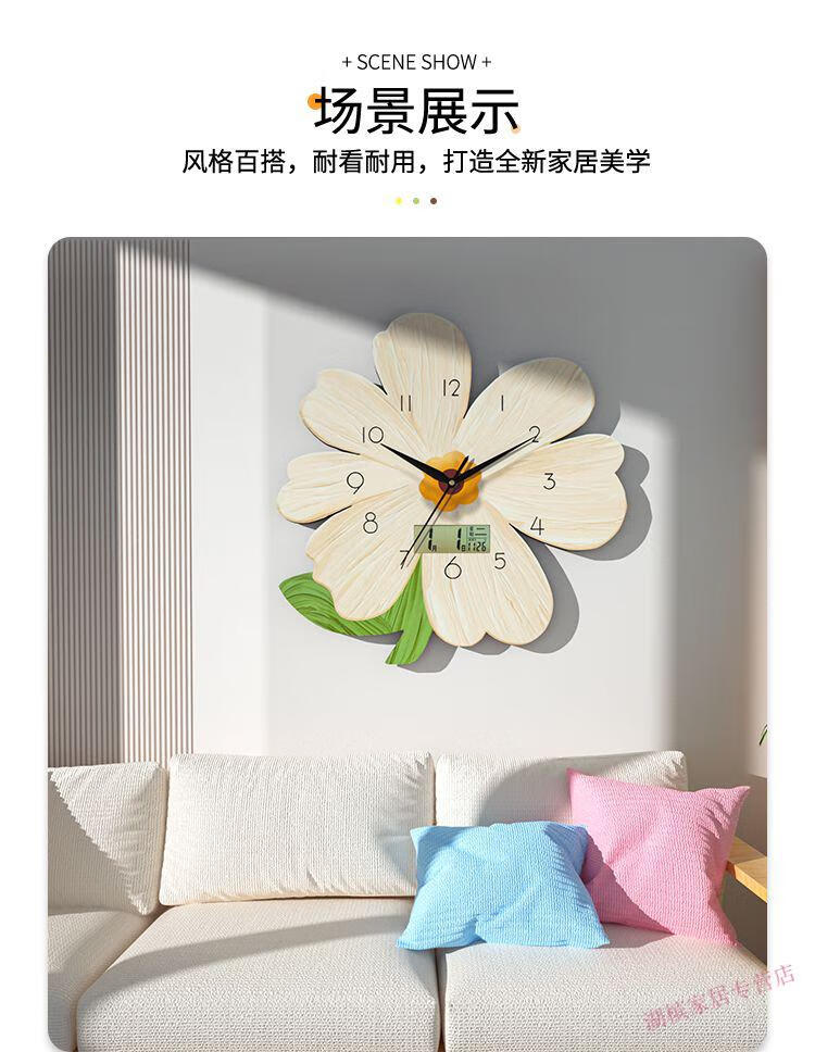 Jiali Youbao Living Room Clock Wall Clock Internet Celebrity Wall Decoration Clock Perpetual Calendar Modern Fashion Quartz Clock Creative Clock Happy Flower Medium 30*30 cm 1