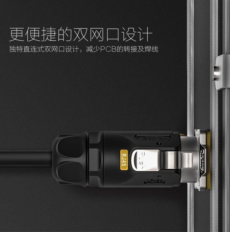 CNLINKO outdoor LP-24 aviation plug and socket straight-through CAT.6 dual network port network cable industrial waterproof connector RJ45 adapter LP24 type RJ45 plug