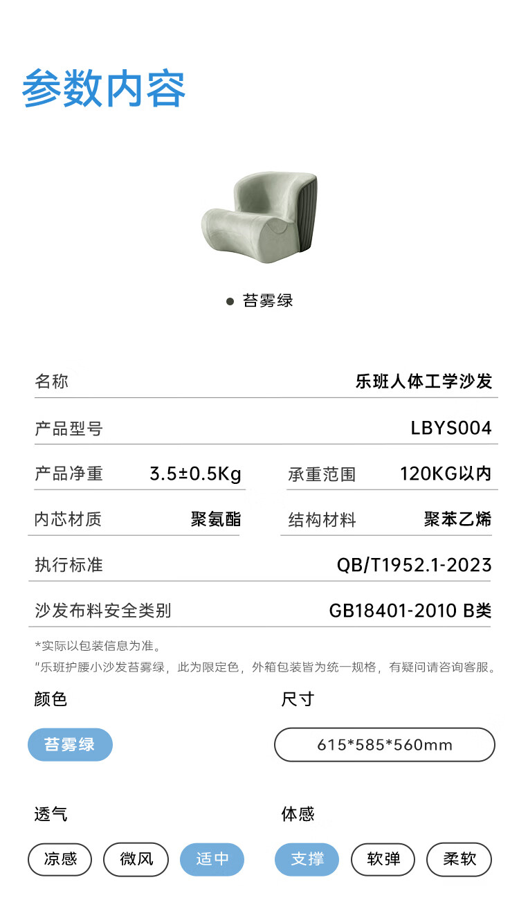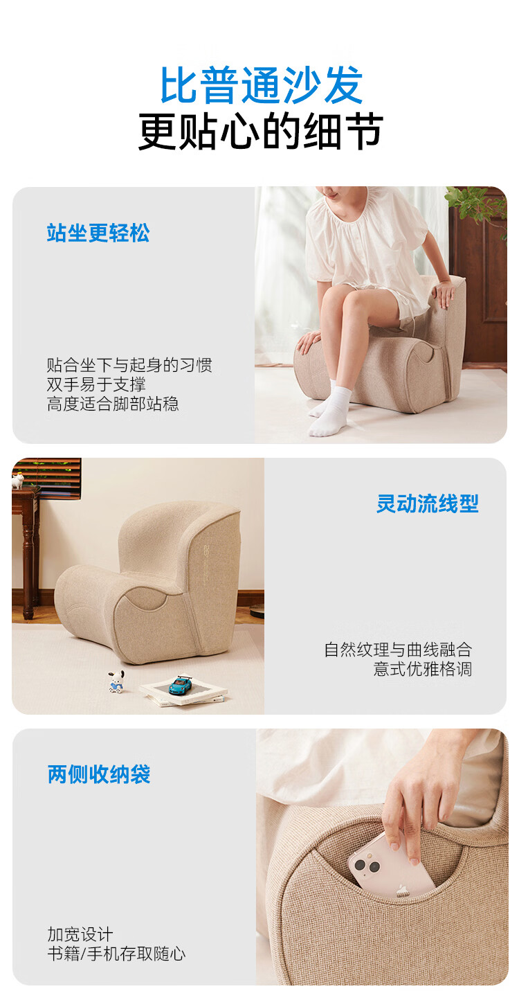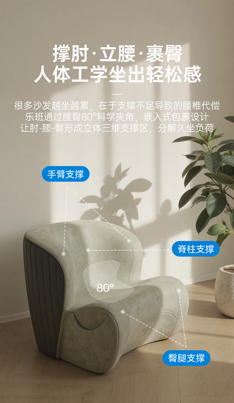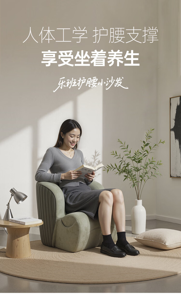 Leban ergonomic waist-protecting small sofa living room bedroom small apartment children's reading sofa lazy single sofa seat upgraded version normal dark gray