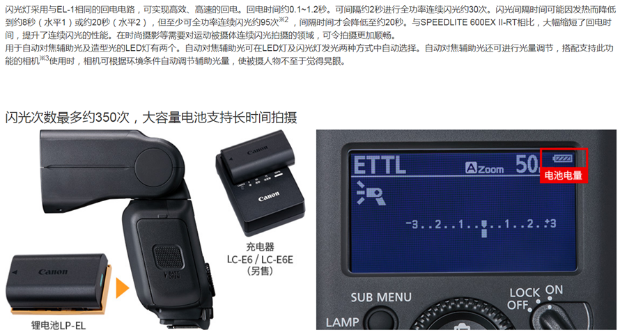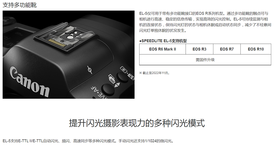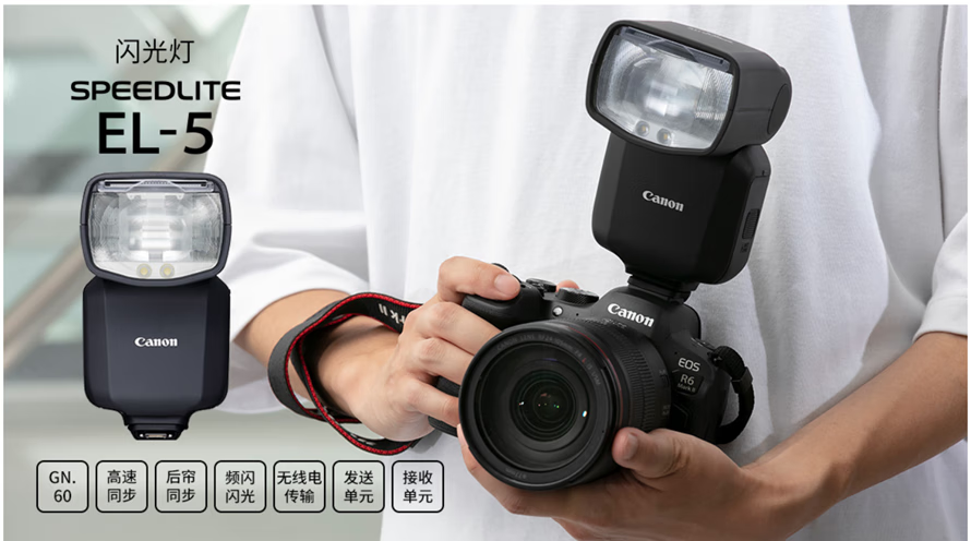 Canon flash SPEEDLITE EL-5 on-camera flash is suitable for Canon EOS R8 R50 R6II R7 R10 R3, etc. Canon LP-EL battery (excluding flash) official standard configuration
