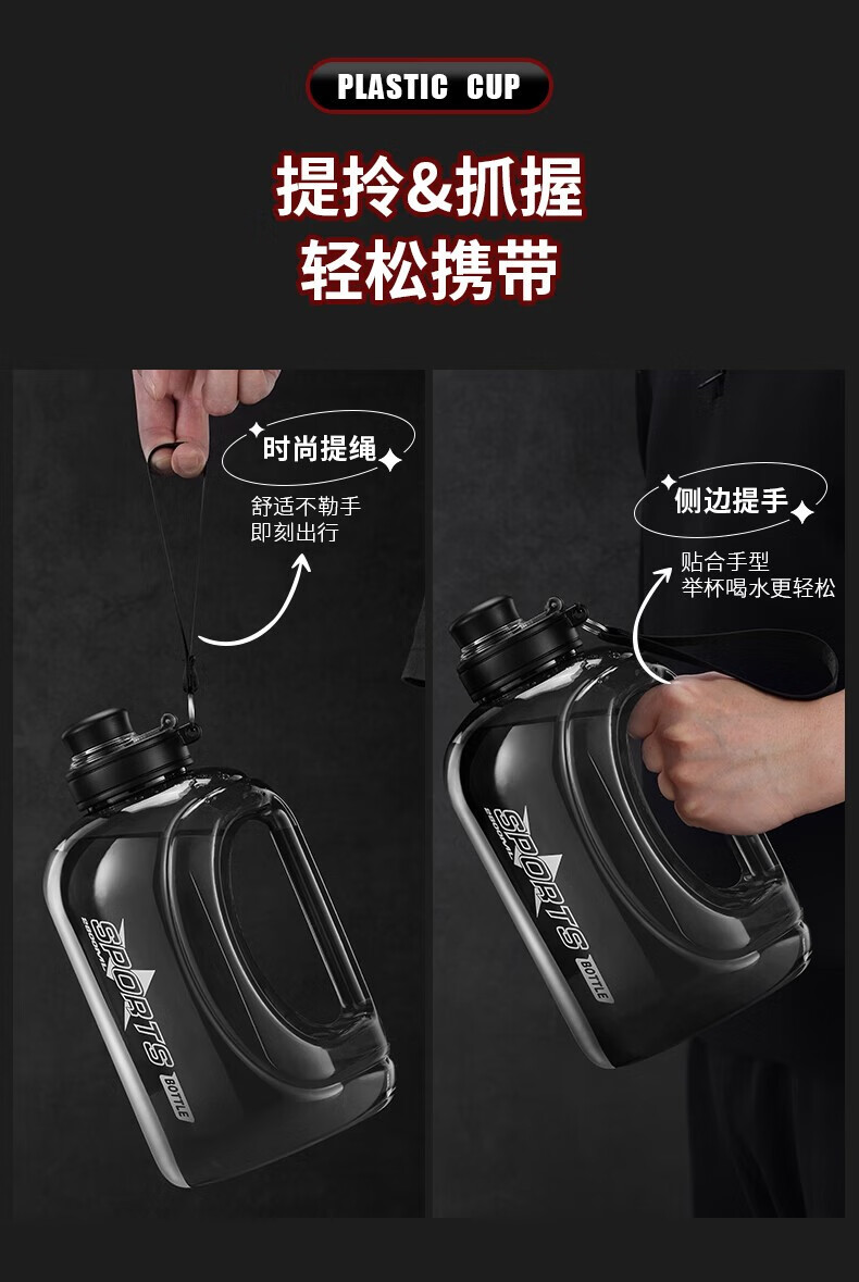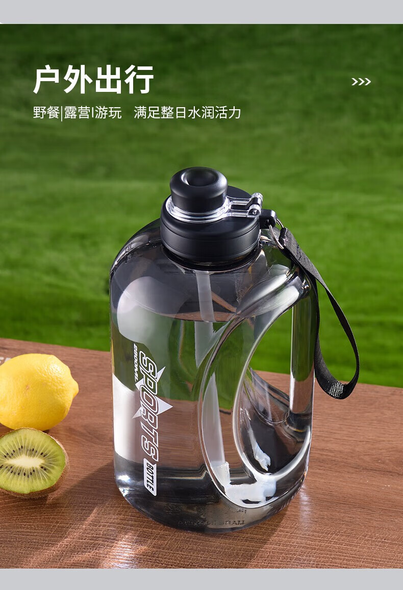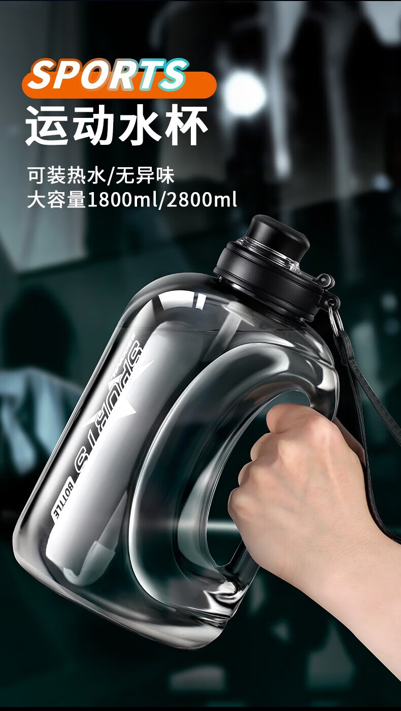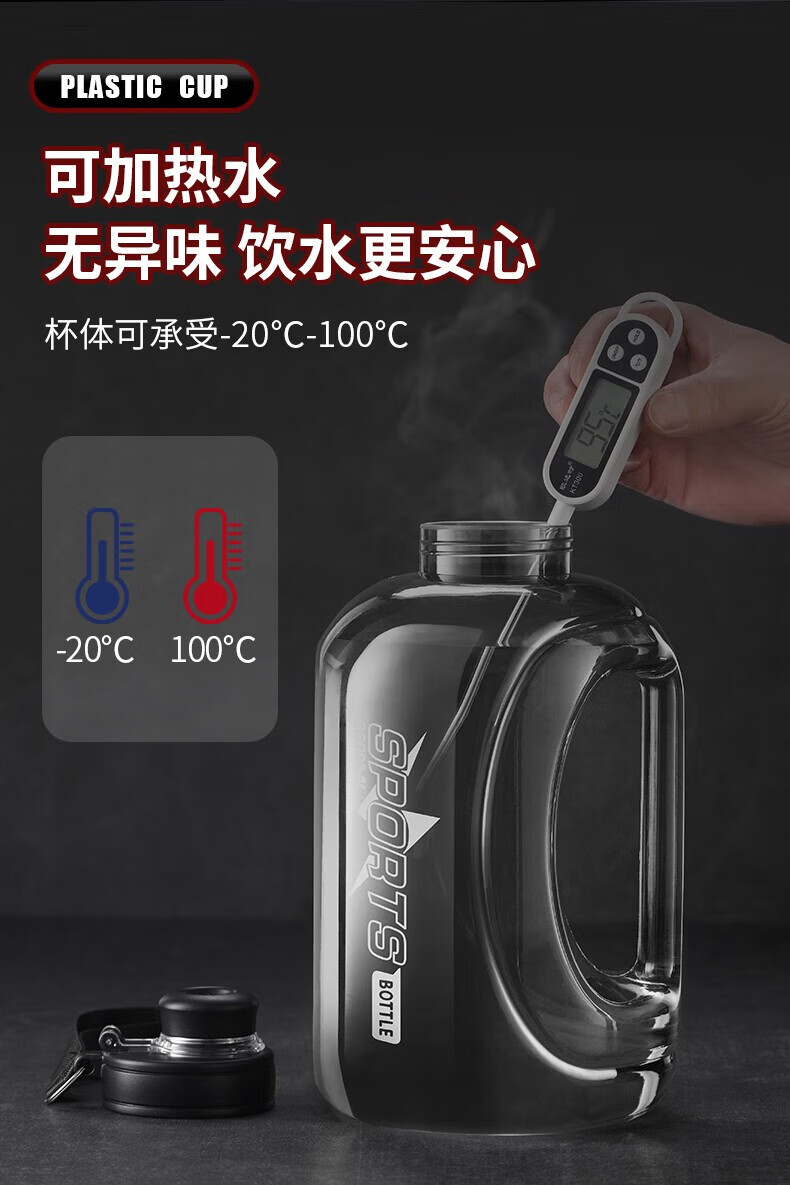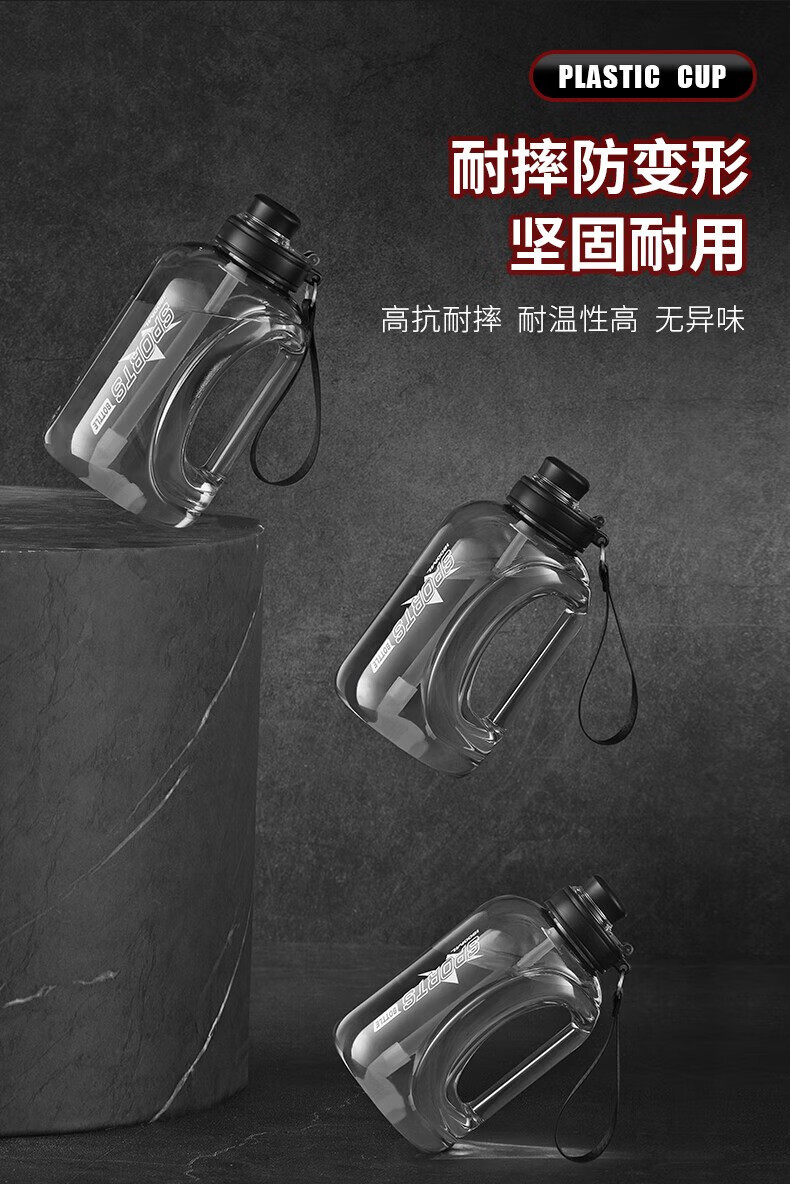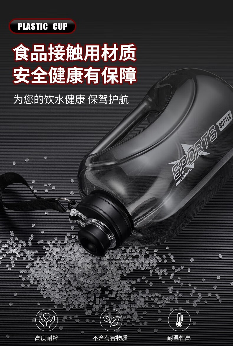 Tianxi (TIANXI) Water Cup Large Capacity Men's Fitness Sports Water Bottle Girls Ton Bucket Cup Big Belly Cup High Temperature Resistant Anti-Fall Bucket Sports Black 1.8L + Straw + Carrying Rope