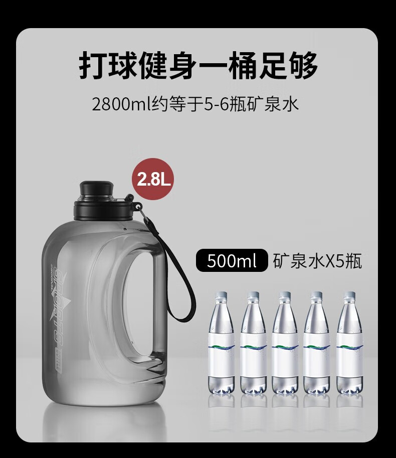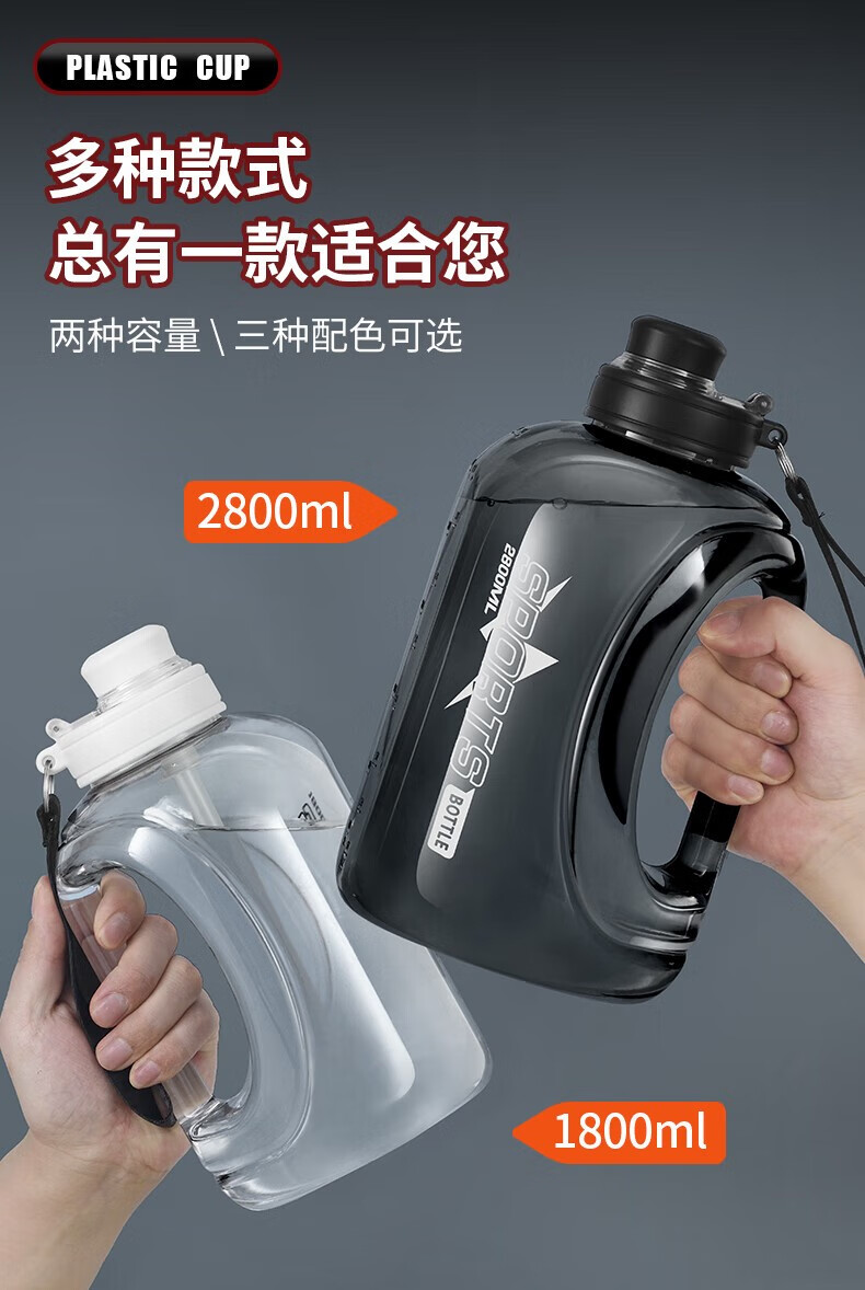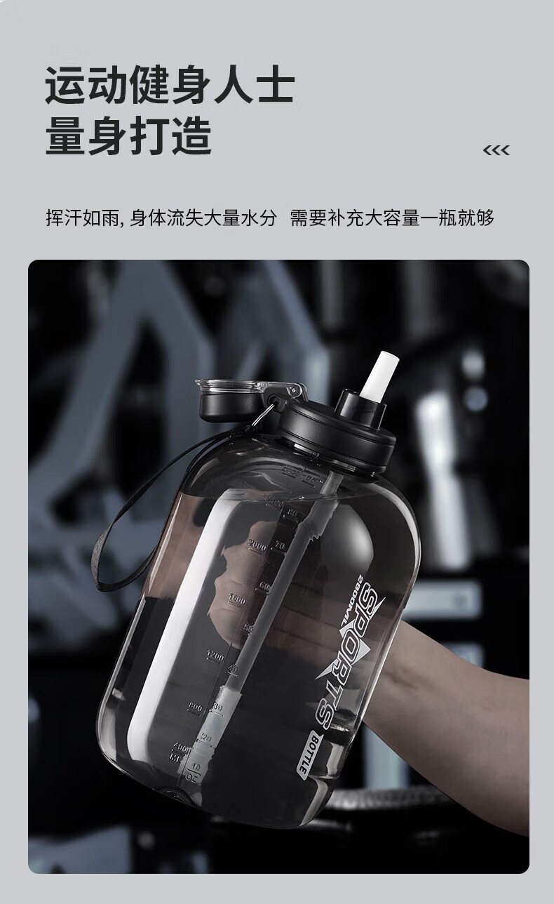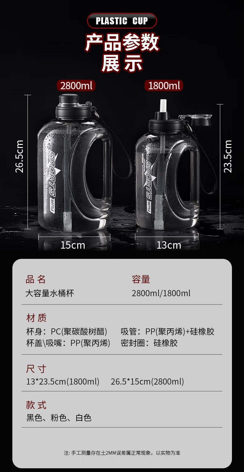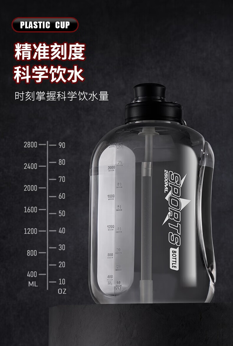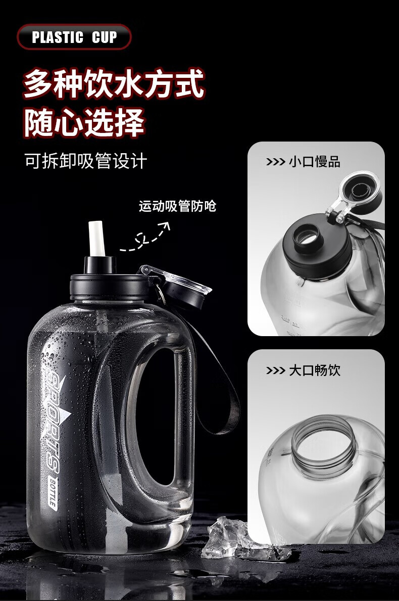 Tianxi (TIANXI) Water Cup Large Capacity Men's Fitness Sports Water Bottle Girls Ton Bucket Cup Big Belly Cup High Temperature Resistant Anti-Fall Bucket Sports Black 1.8L + Straw + Carrying Rope