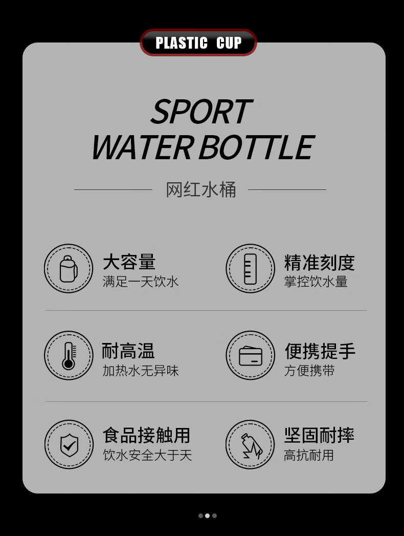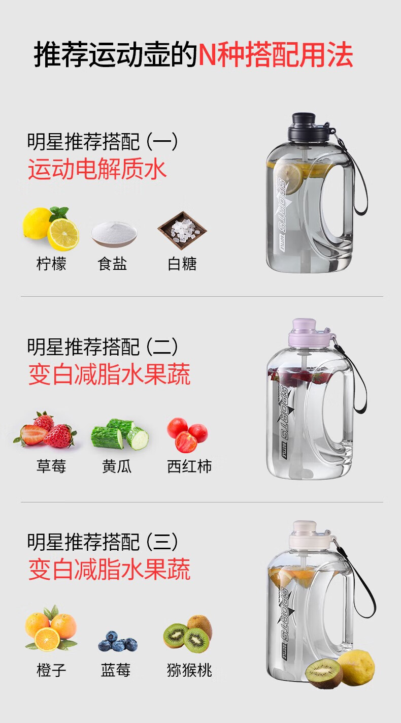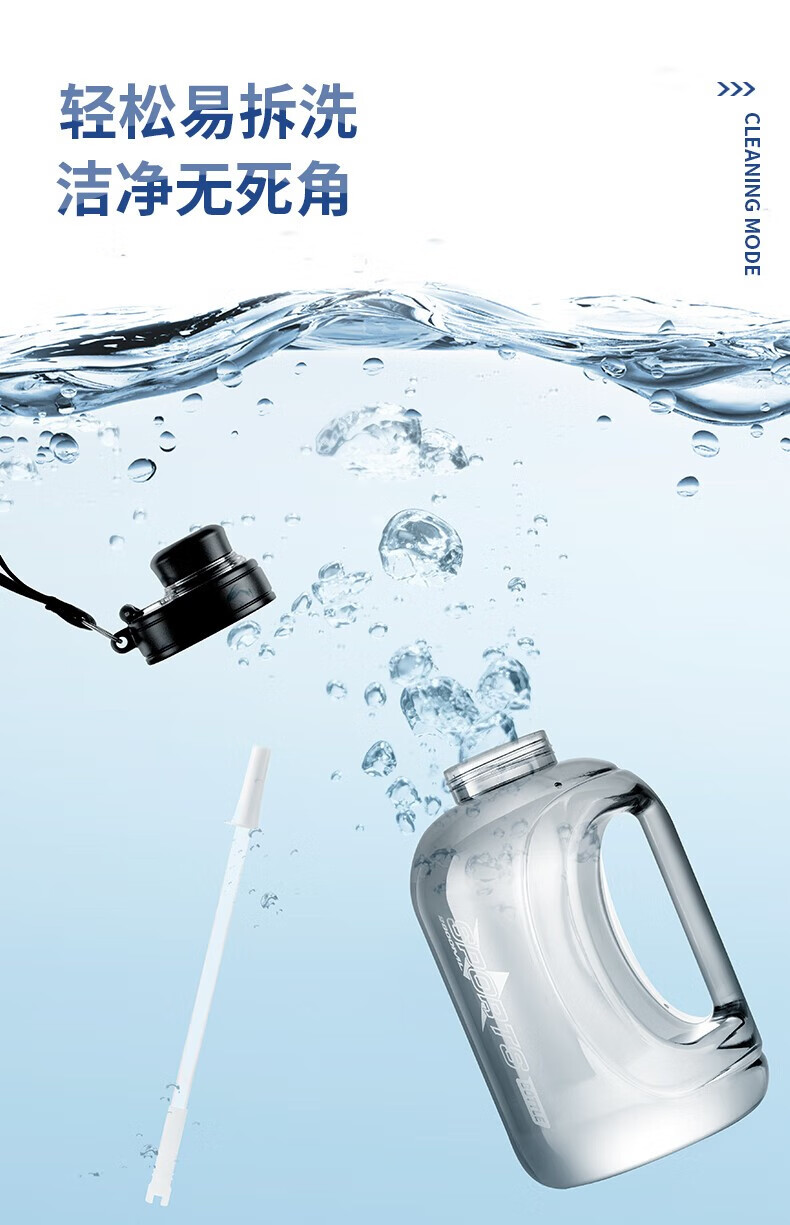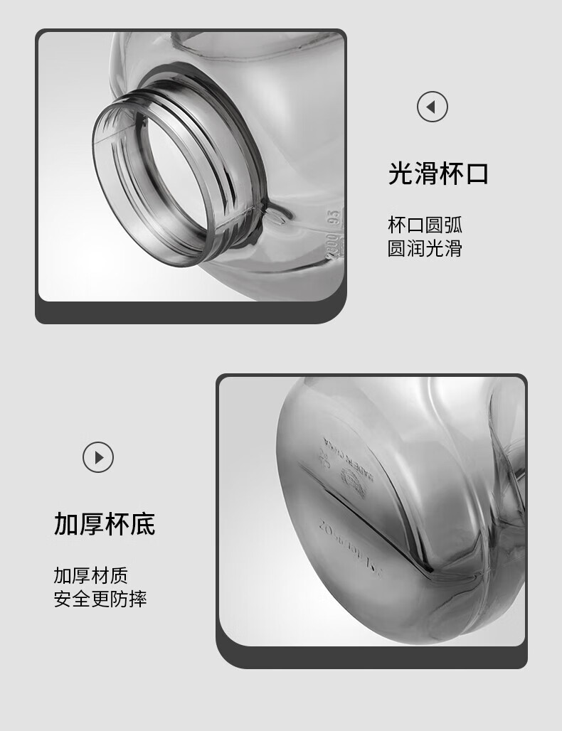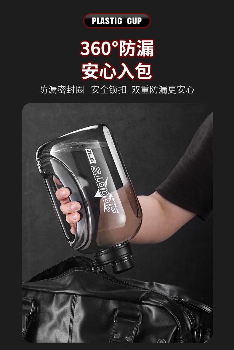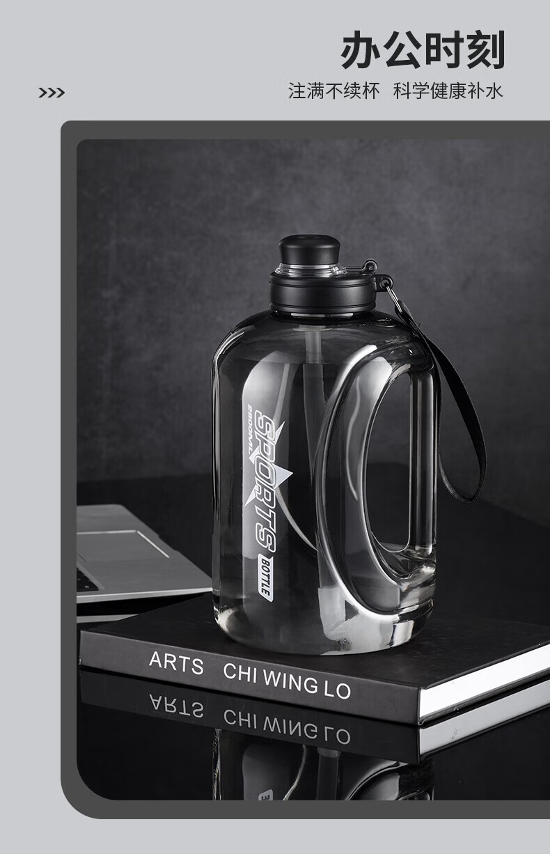 Tianxi (TIANXI) Water Cup Large Capacity Men's Fitness Sports Water Bottle Girls Ton Bucket Cup Big Belly Cup High Temperature Resistant Anti-Fall Bucket Sports Black 1.8L + Straw + Carrying Rope