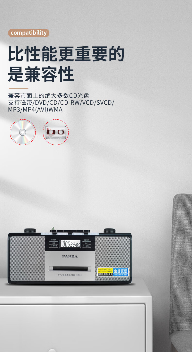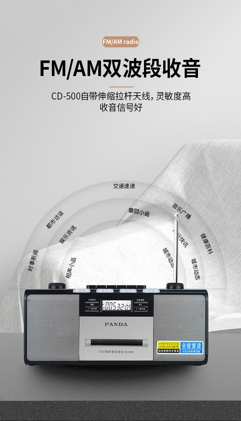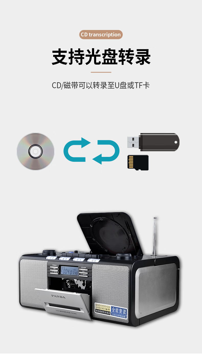 Panda (PANDA) CD player, DVD player, CD player, tape recorder, tape recorder, all-in-one teaching and examination recorder, home disc player, U disk repeater, audio CD500, standard configuration, supports tape/CD/DVD/USB