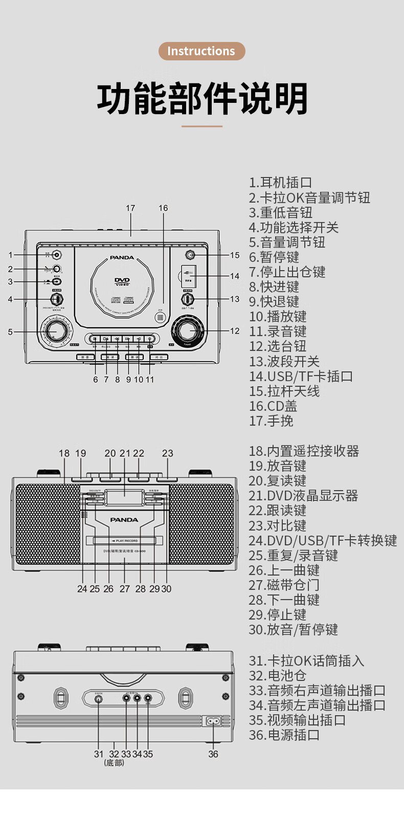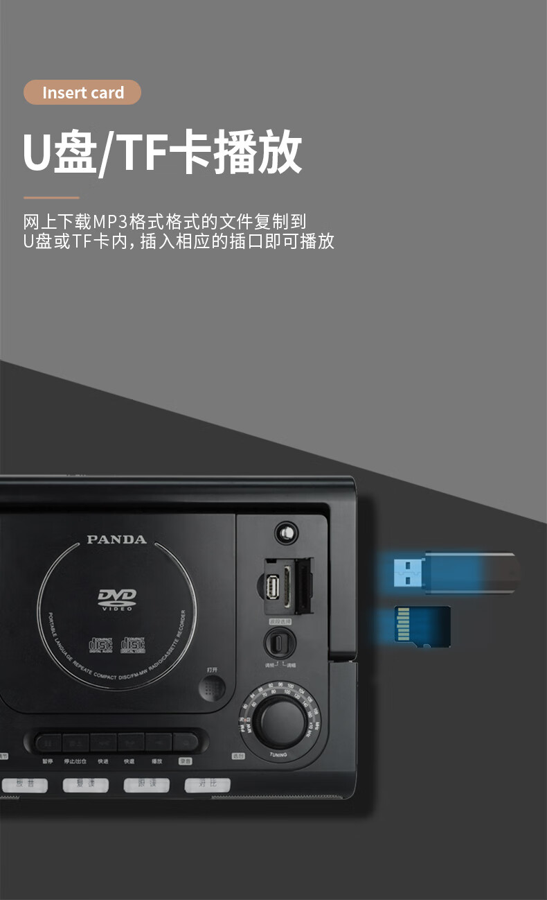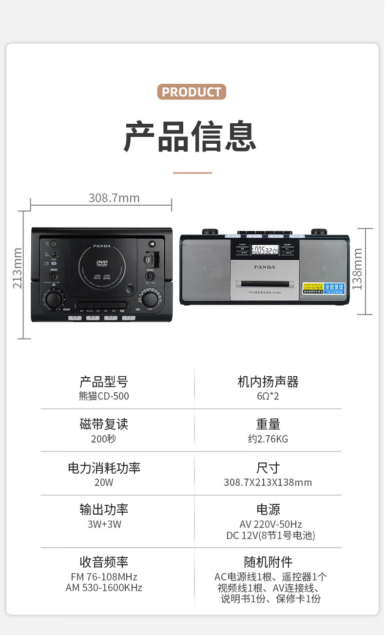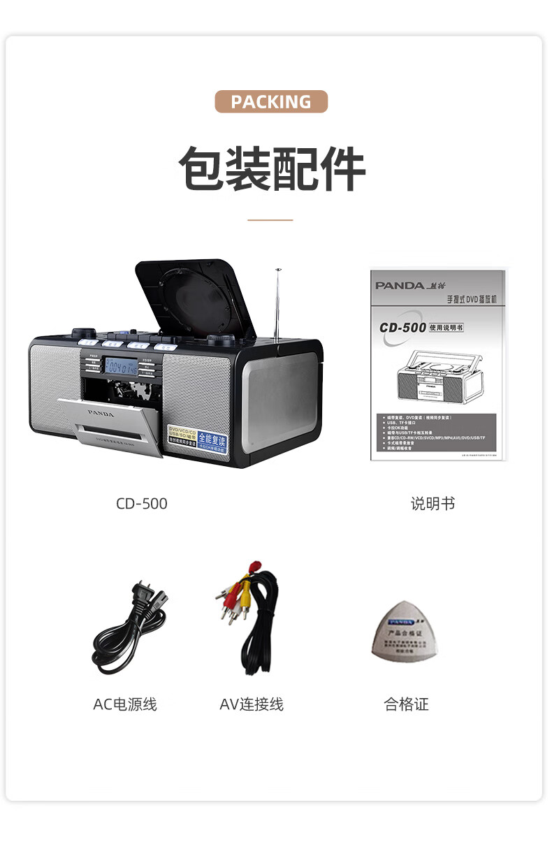 Panda (PANDA) CD player, DVD player, CD player, tape recorder, tape recorder, all-in-one teaching and examination recorder, home disc player, U disk repeater, audio CD500, standard configuration, supports tape/CD/DVD/USB
