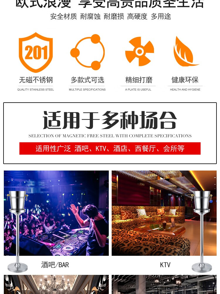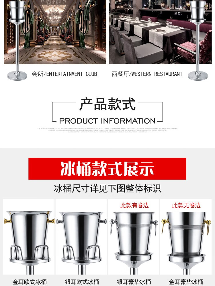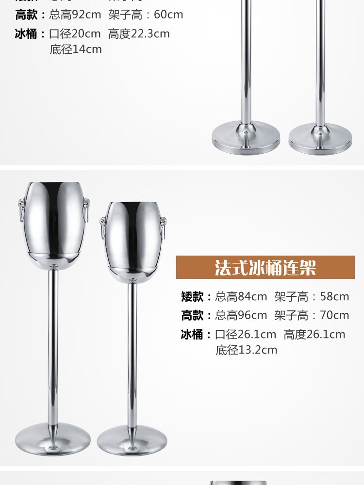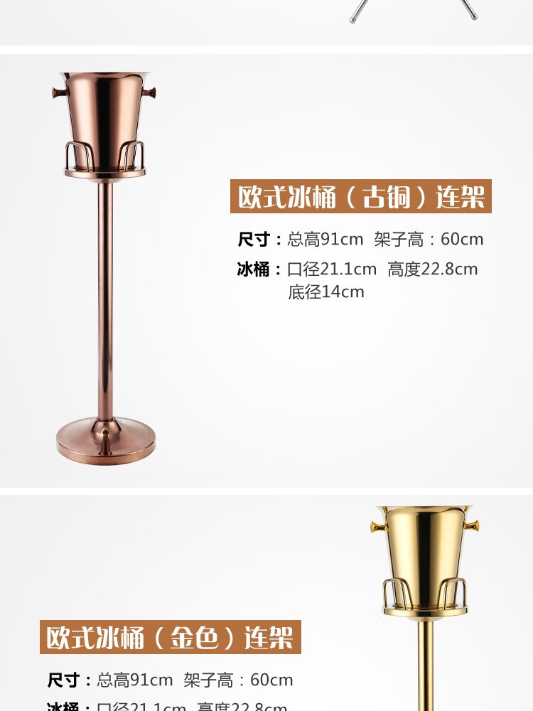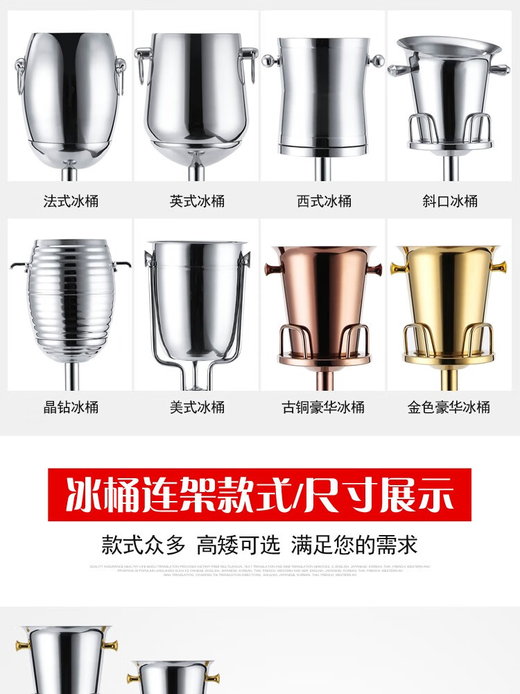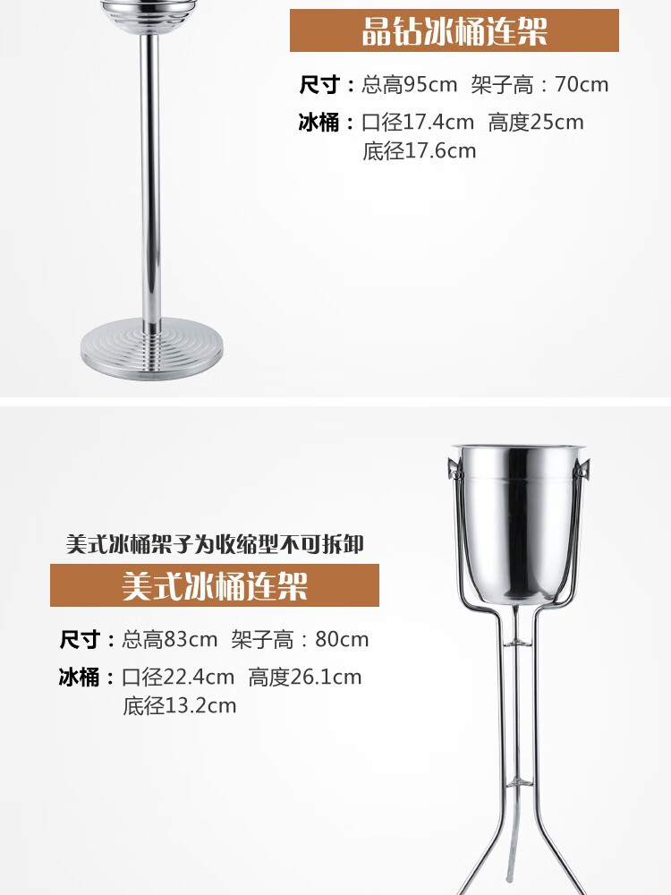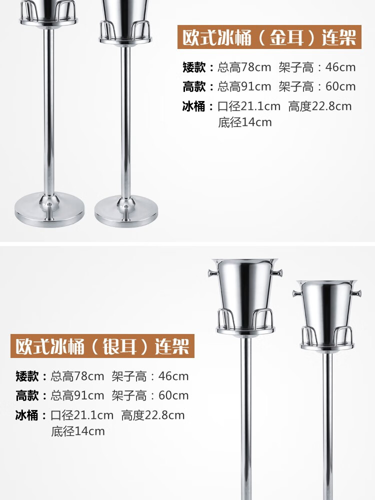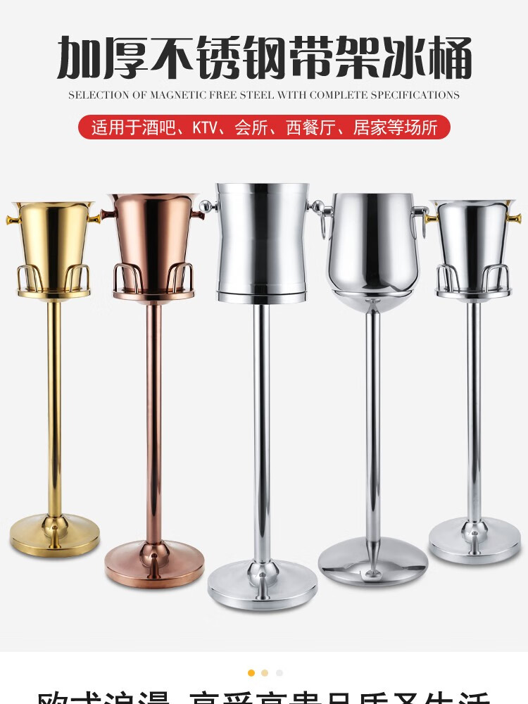 Baidishijia European-style champagne bucket rack stainless steel KTV bar ice bucket household ice bucket with tripod luxury red wine bucket 5L European-style Tremella ice bucket + elevated rack