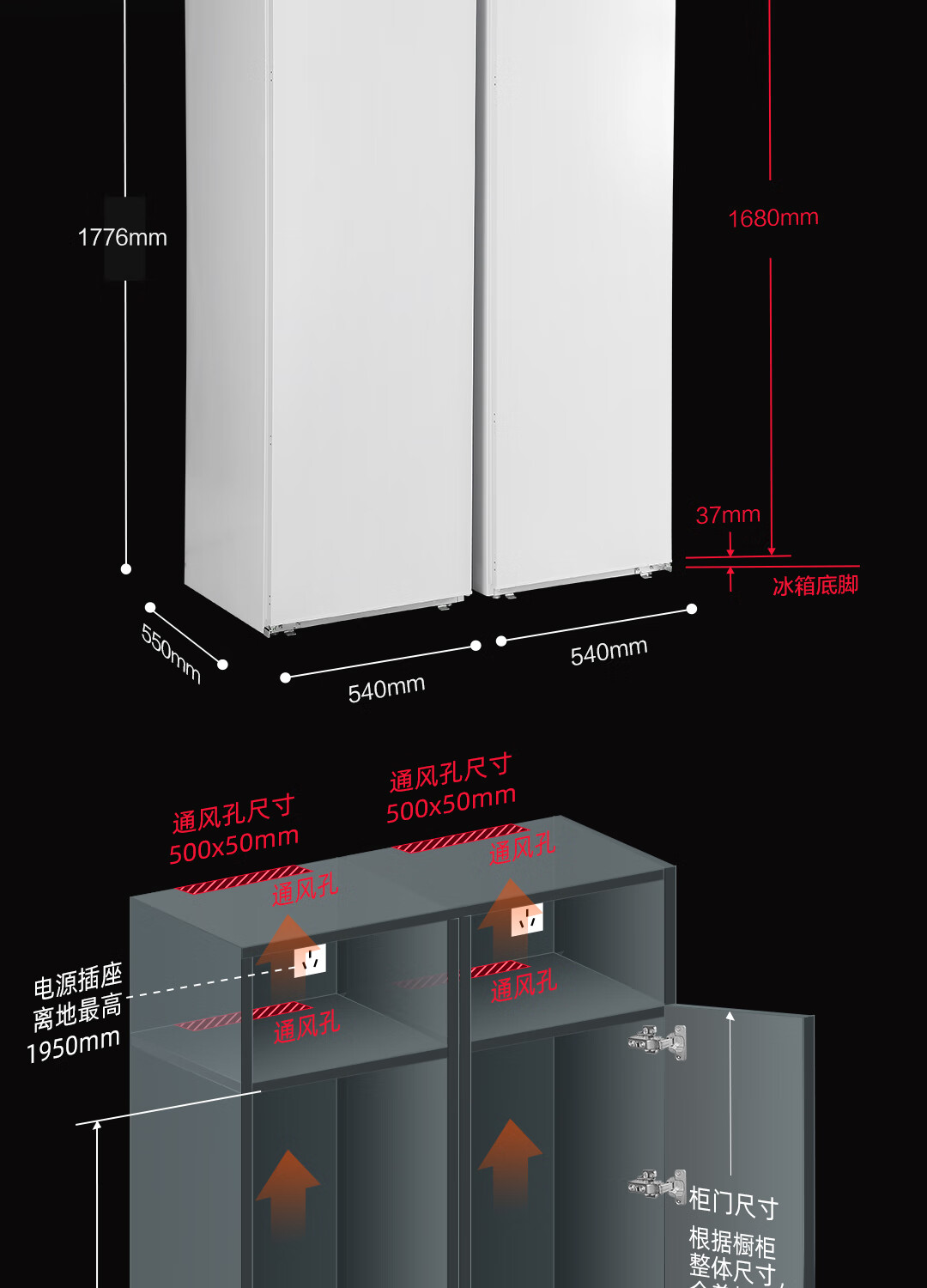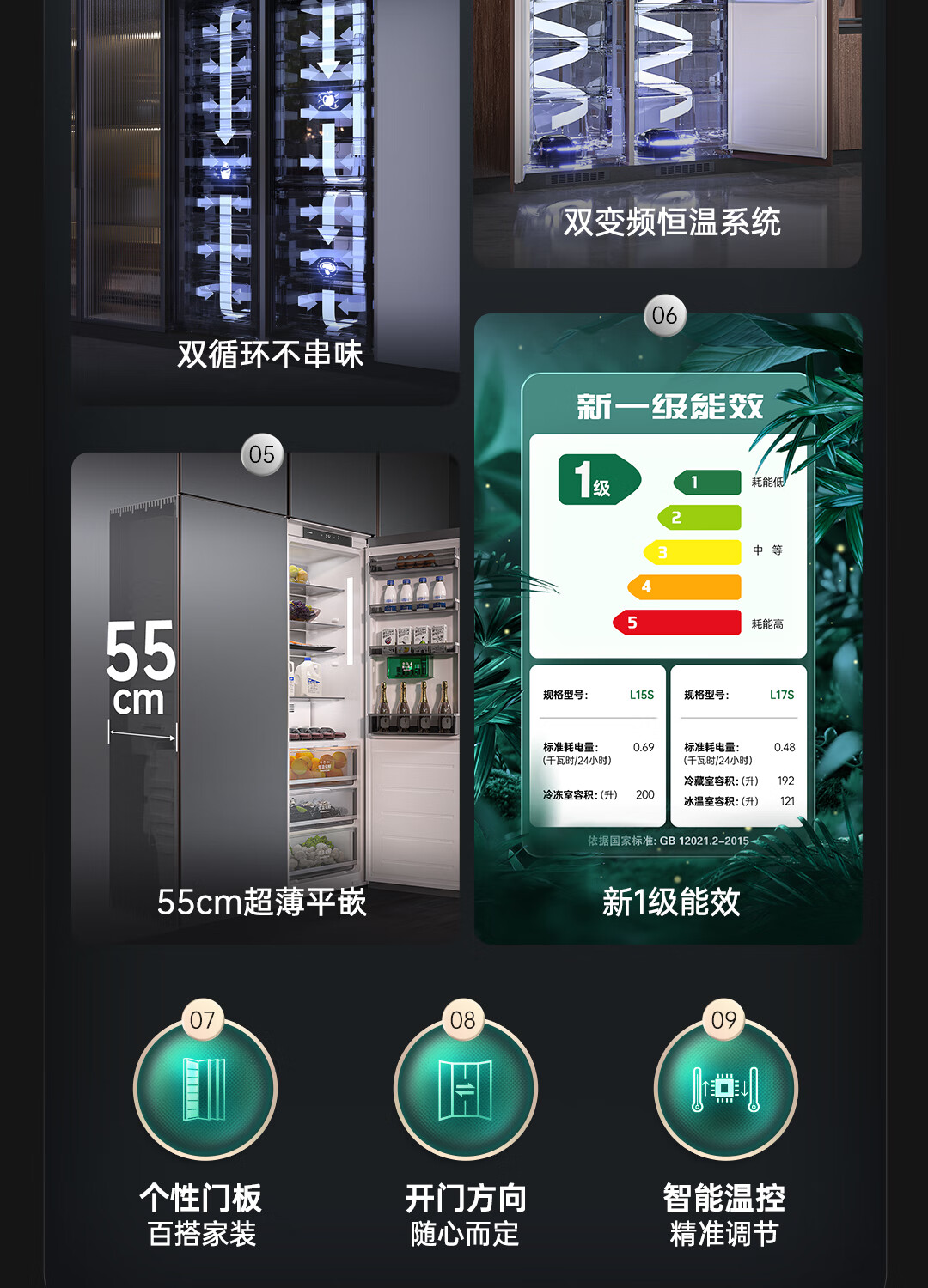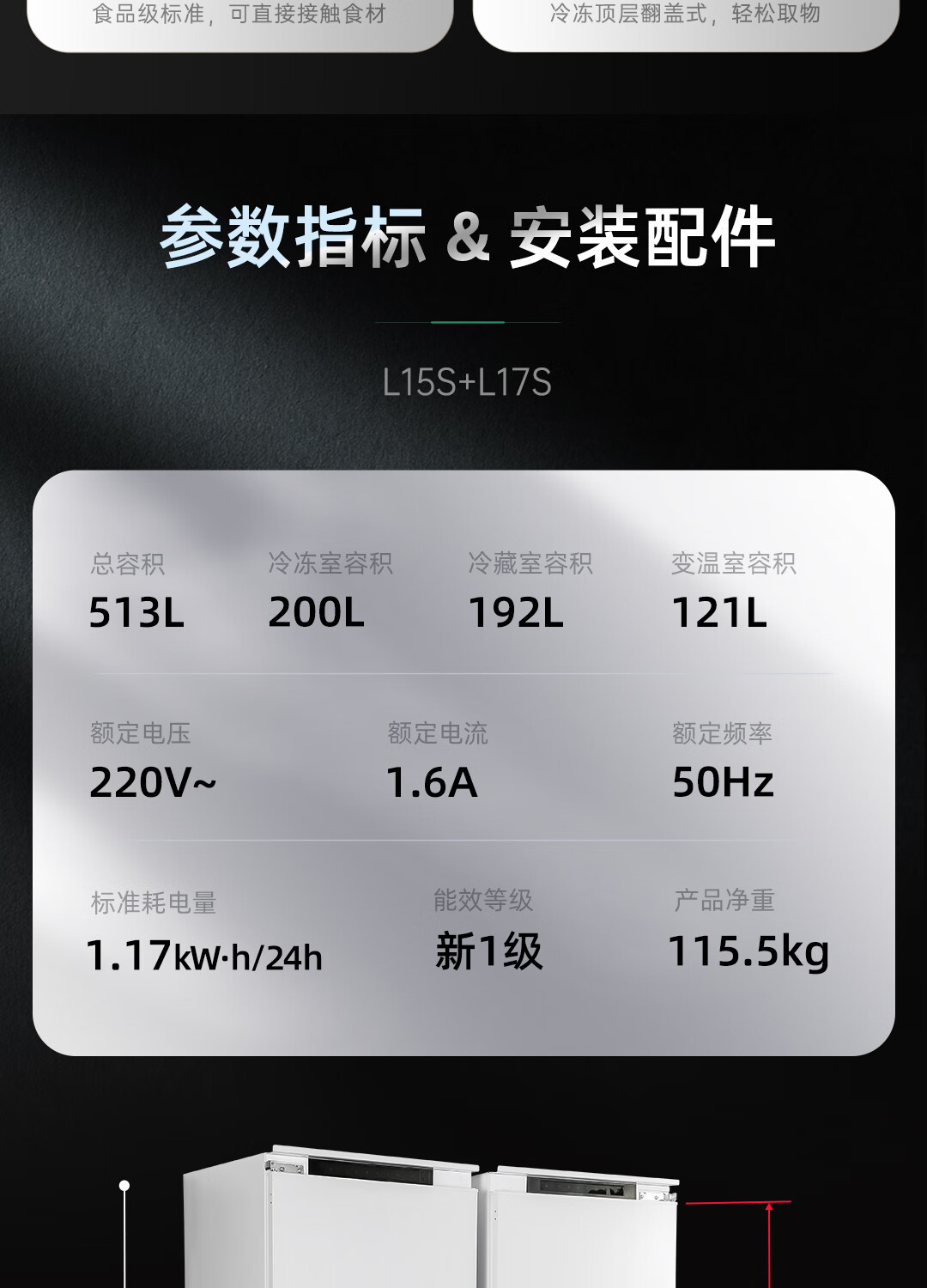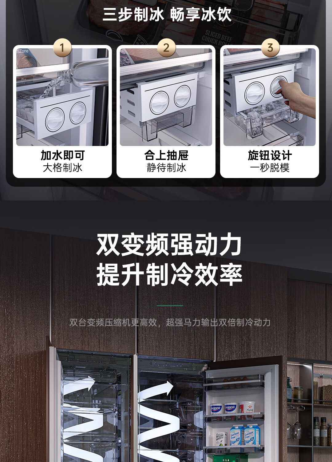 Lingchu fully-embedded refrigerator built-in inlaid hidden cabinet integrated large-capacity ice-making household air-cooled frost-free double door L17S (single refrigeration 313 liters)