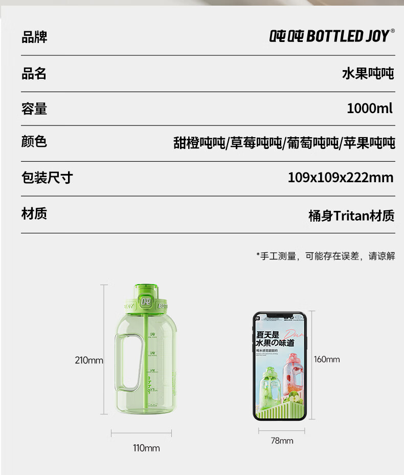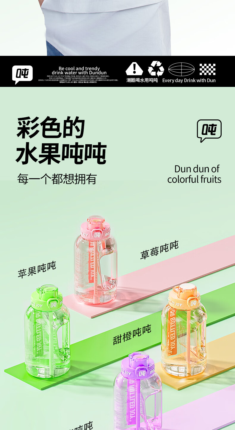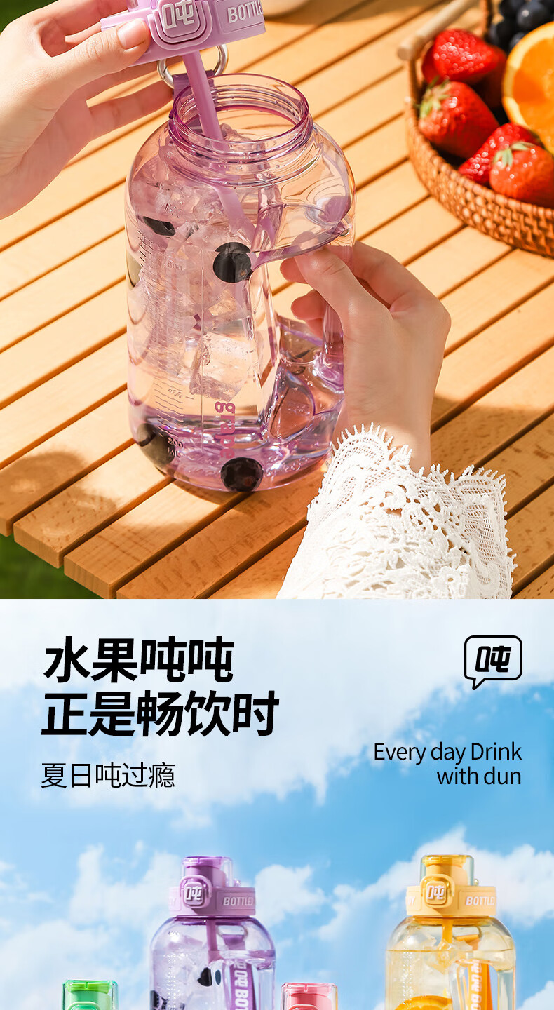 Ton ton BOTTLEDJOY fruit ton ton bucket sports water cup large capacity outdoor portable high temperature resistant water cup ton ton bucket apple ton ton without strap 1L