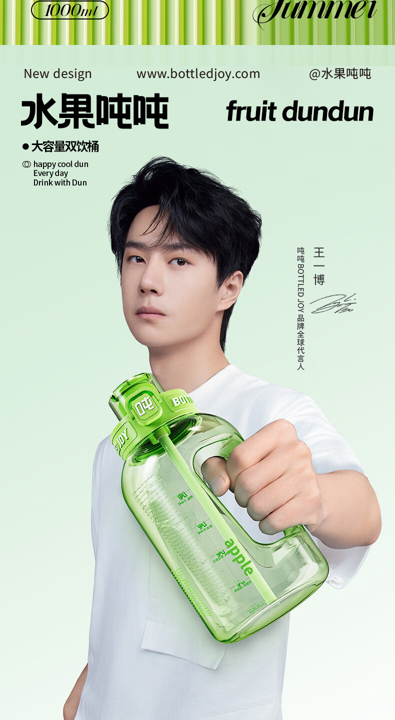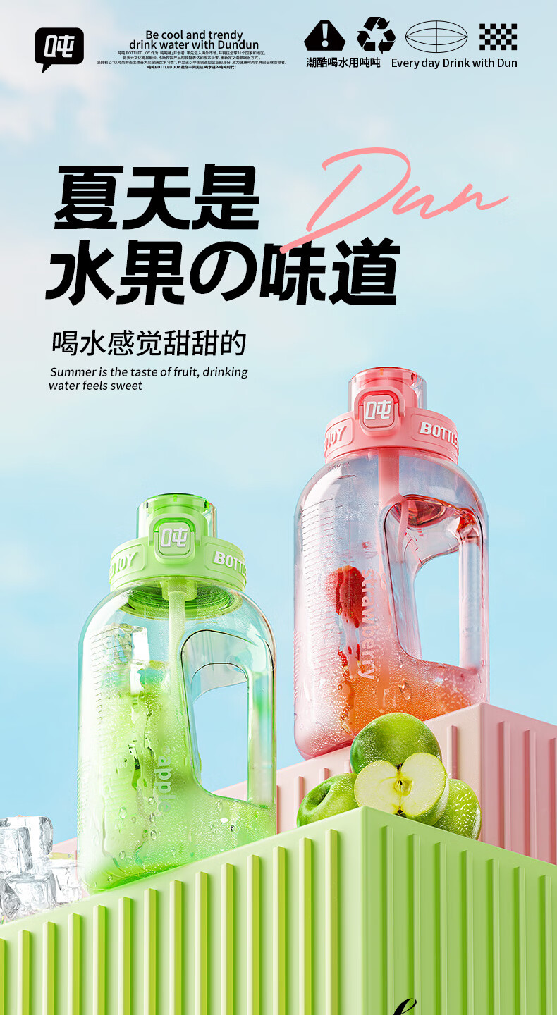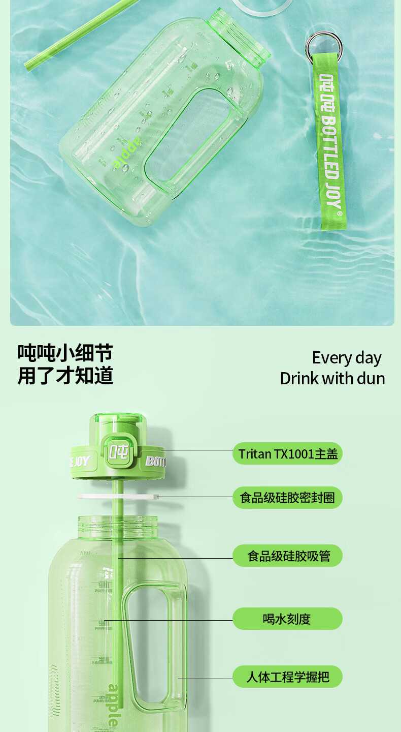 Ton ton BOTTLEDJOY fruit ton ton bucket sports water cup large capacity outdoor portable high temperature resistant water cup ton ton bucket apple ton ton without strap 1L