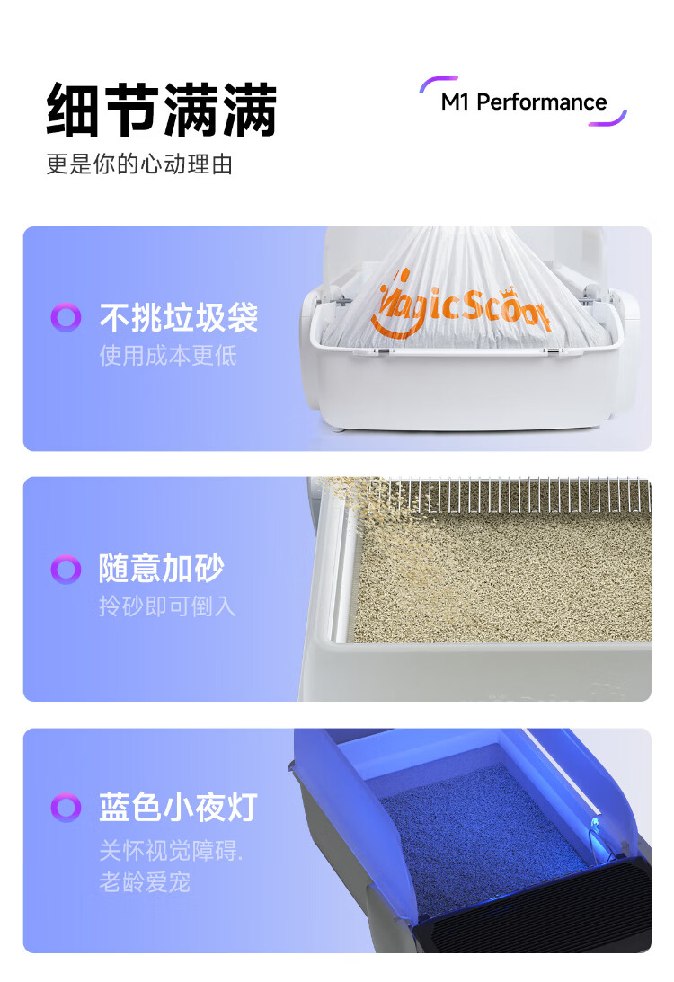 MagicScoop intelligent fully automatic cat litter box cleaning open semi-enclosed extra large cat toilet electric poop scooper M1 Performance nylon liner