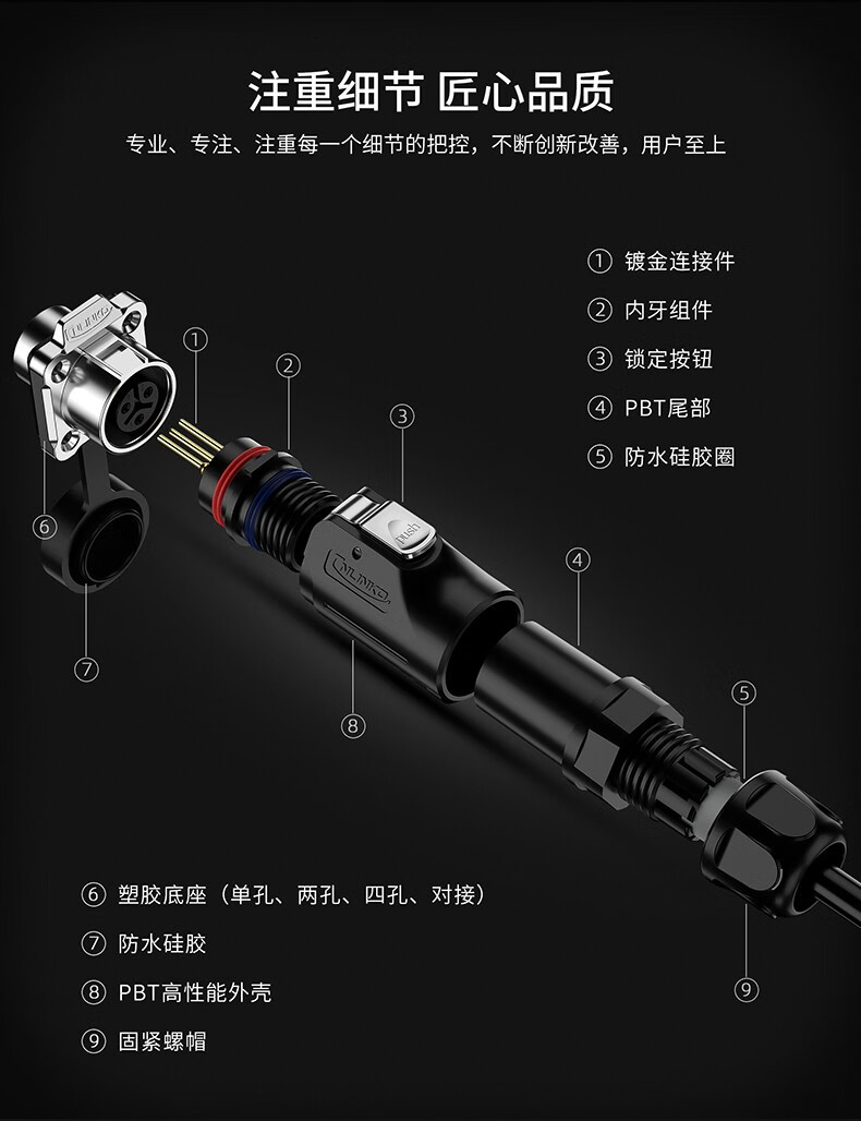 Lingke LP12 type industrial waterproof aviation plug and socket quick unplug 2 3 4 5 6 7 8-core power supply waterproof IP68 connector LP12 type 6-core flange formal installation