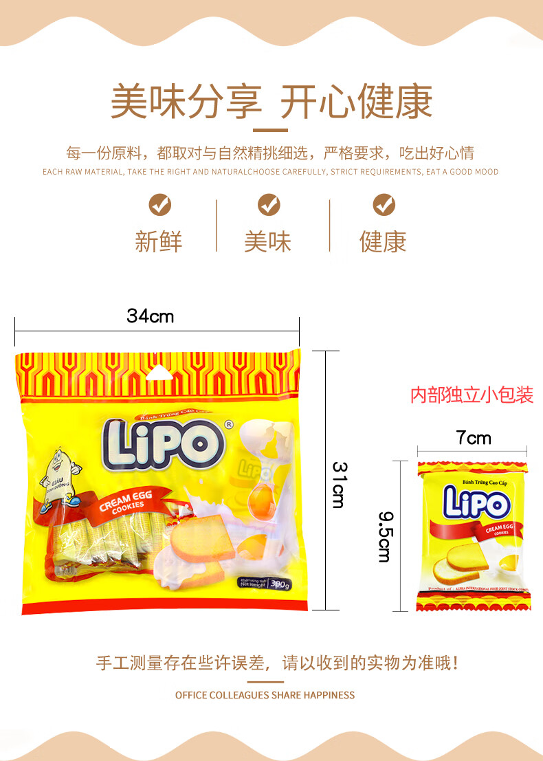 Lipo rusk imported from Vietnam, coated breakfast biscuits, office snacks, snacks, snacks and snacks, gift pack 1 bag*300g original flavor (about 29 small bags)