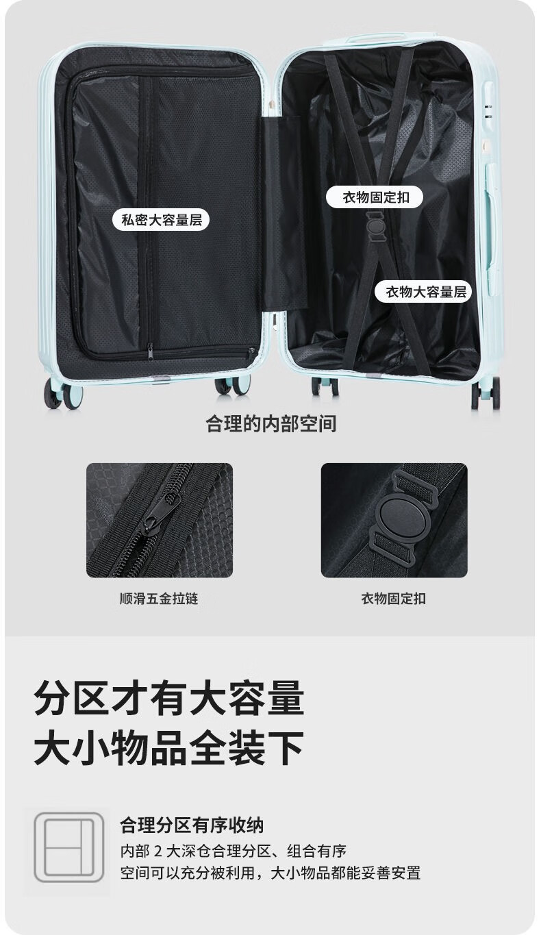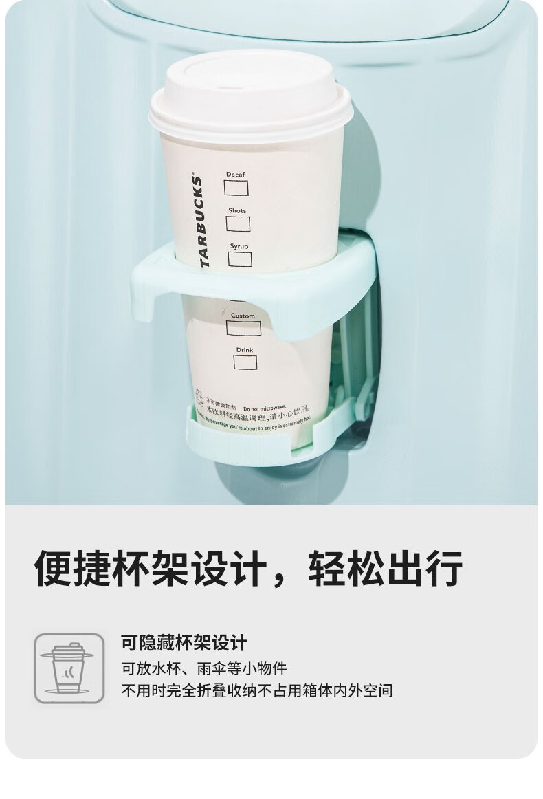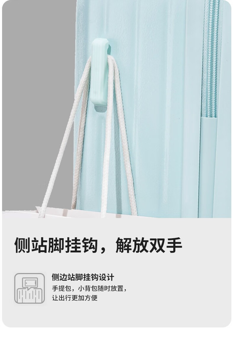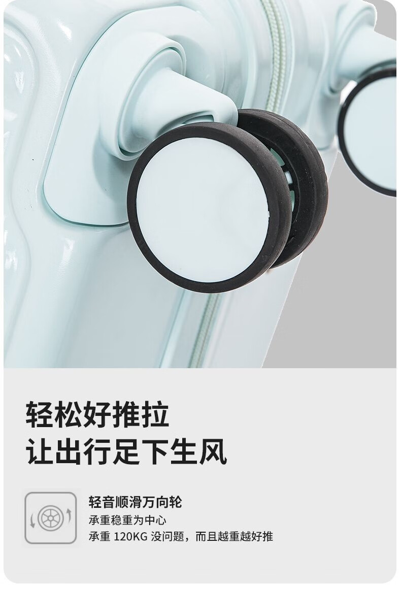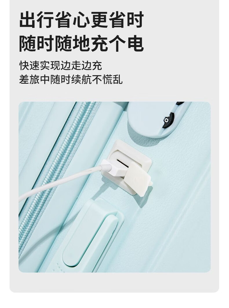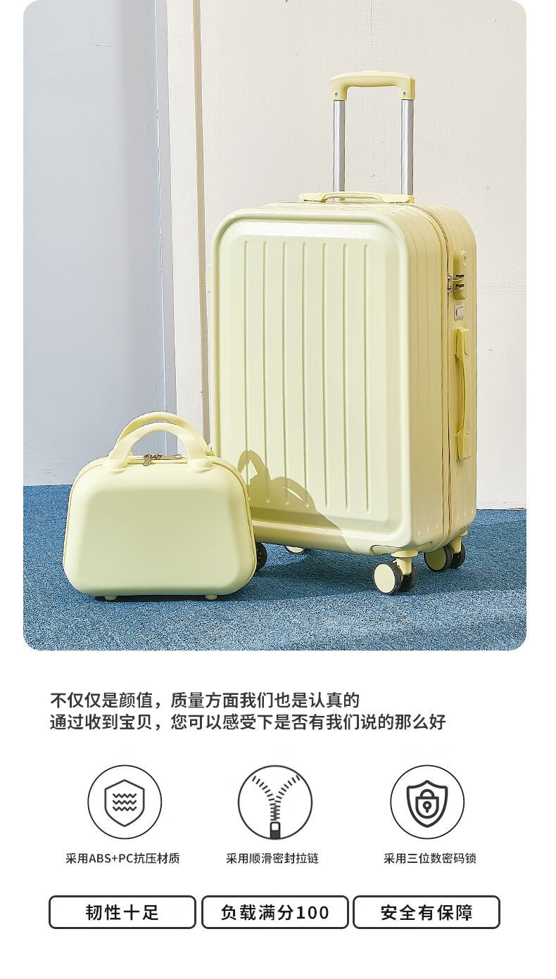 Ouyao's high-looking two-piece suitcase with next-day delivery small boarding trolley case for female students, durable and seatable password suitcase, light blue, folding cup holder + charging port + cosmetic bag, 20 inches, can be boarded on the plane without checking in