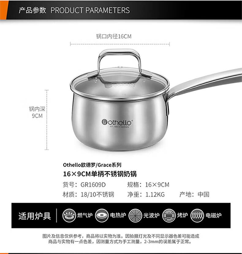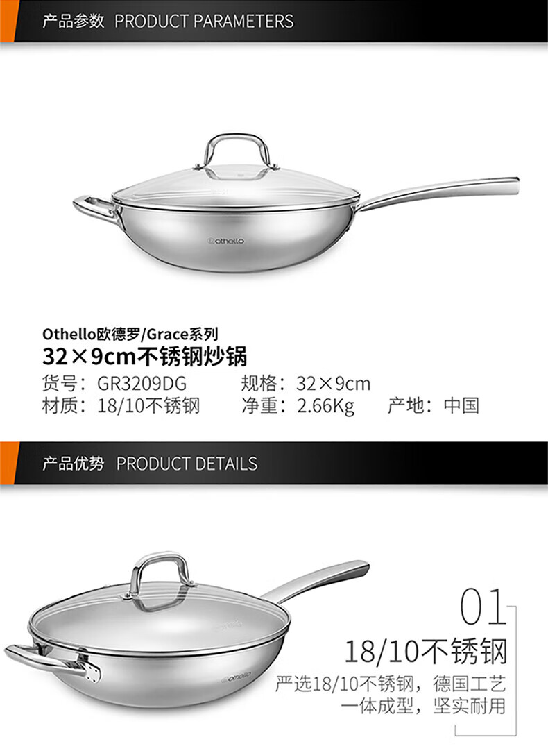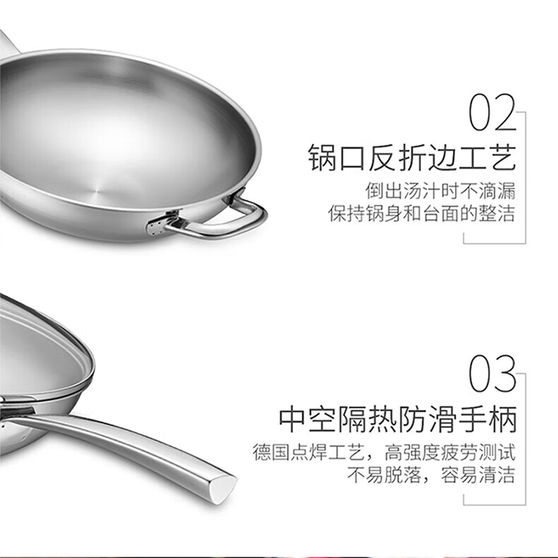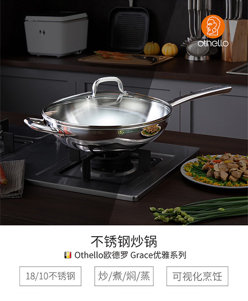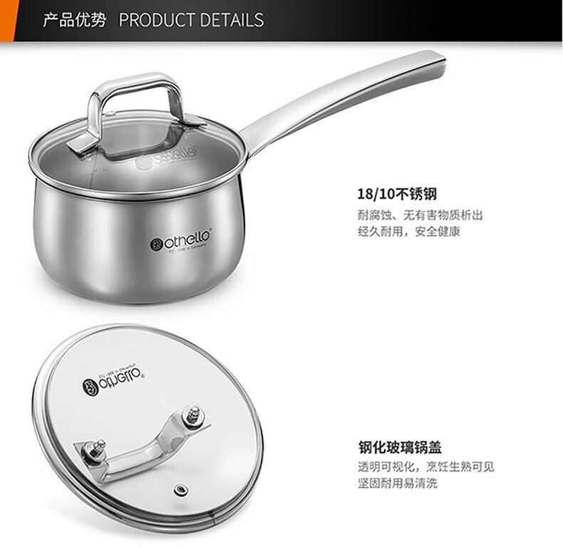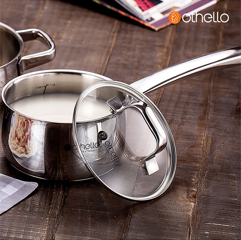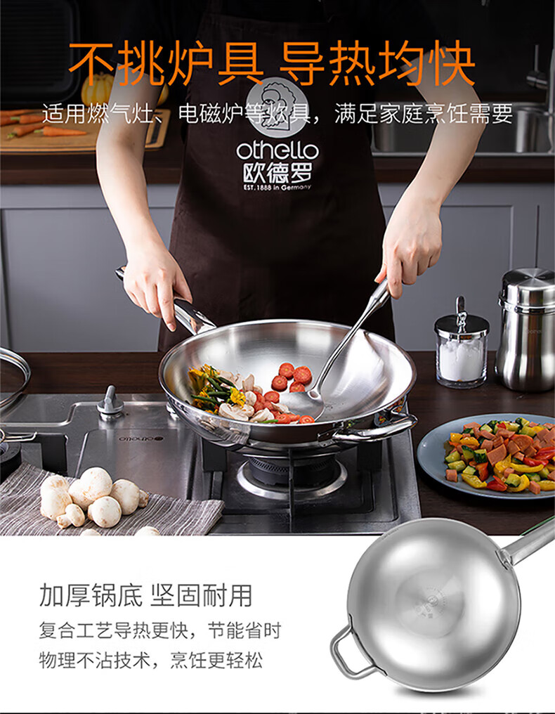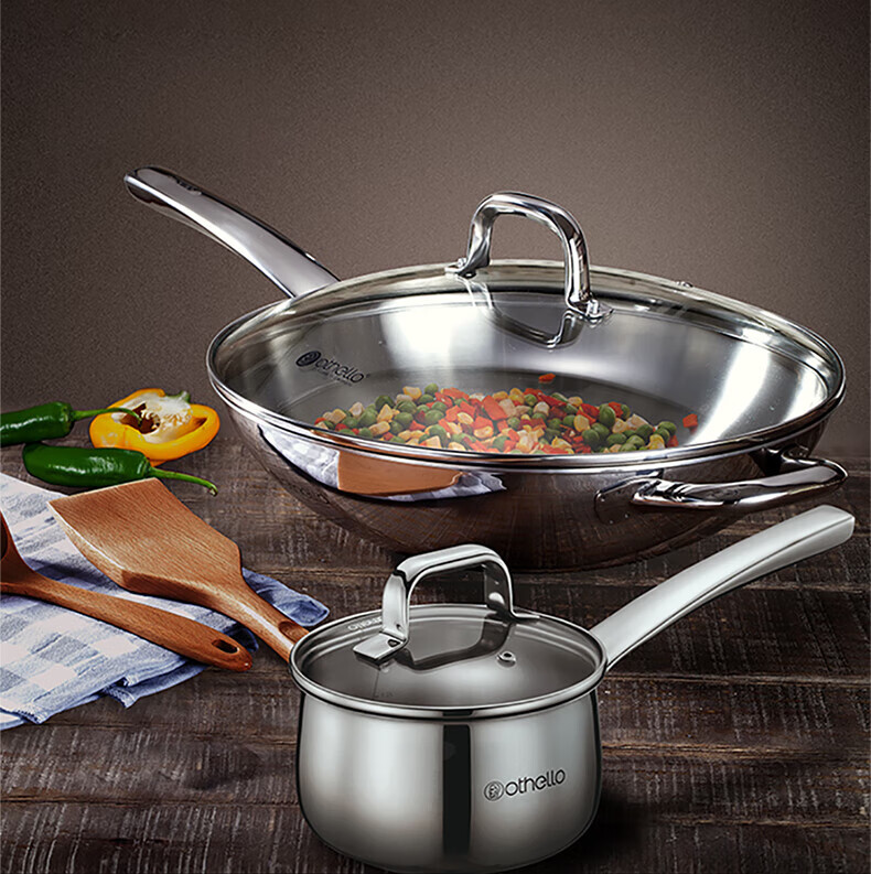 Othello food grade 304 stainless steel wok milk pan two-piece set uncoated wok gas induction cooker universal set