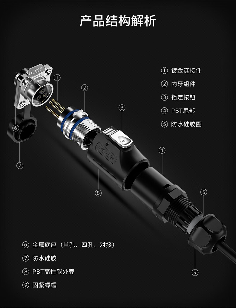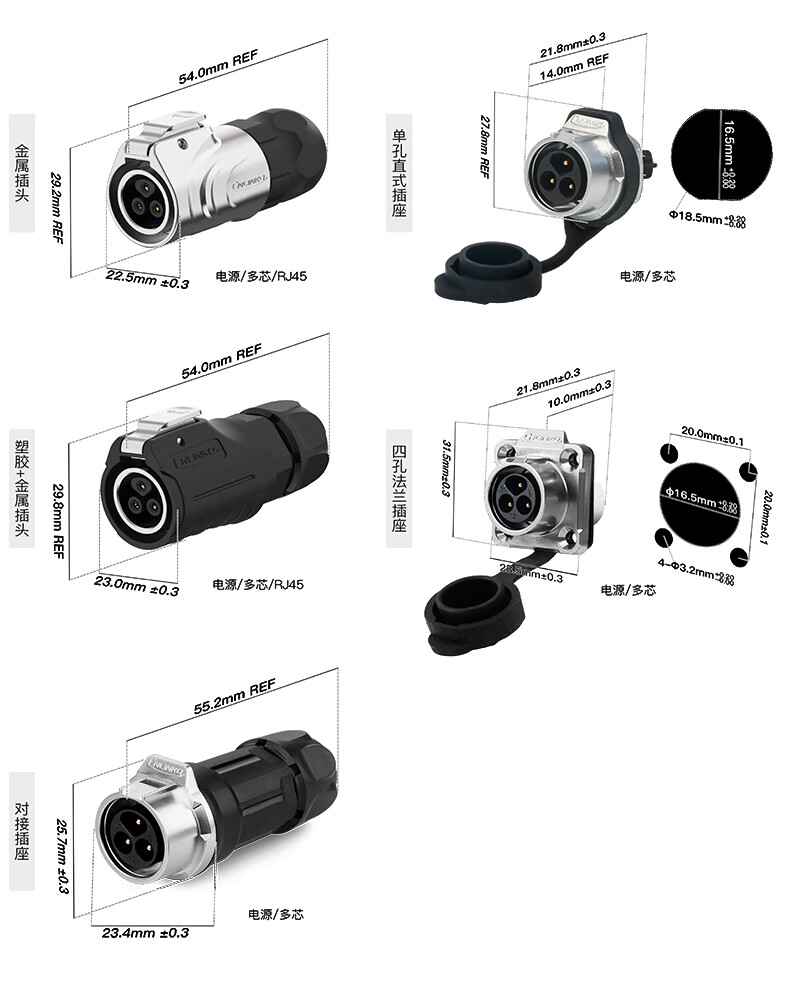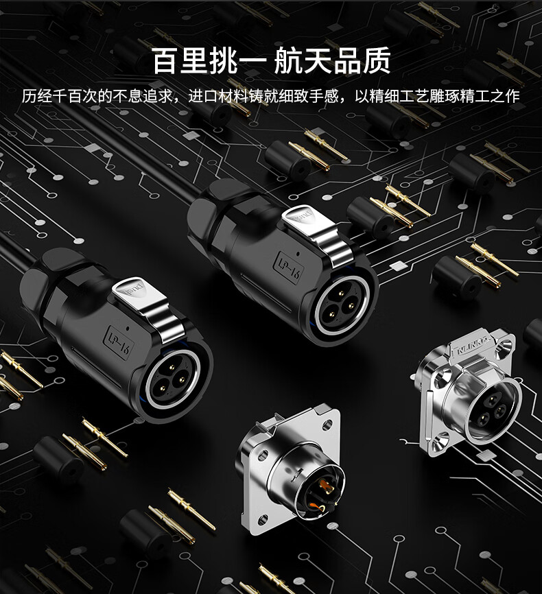 Lingke Electric LP-16 waterproof plug connector metal plastic 234578-core male and female docking aviation plug socket waterproof connector LP16 type 3-core docking formal installation