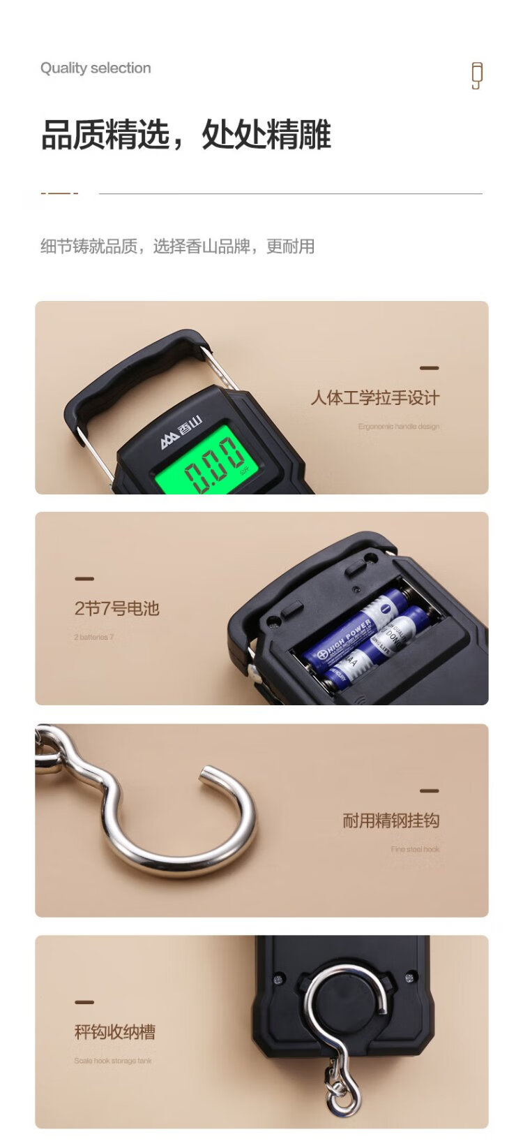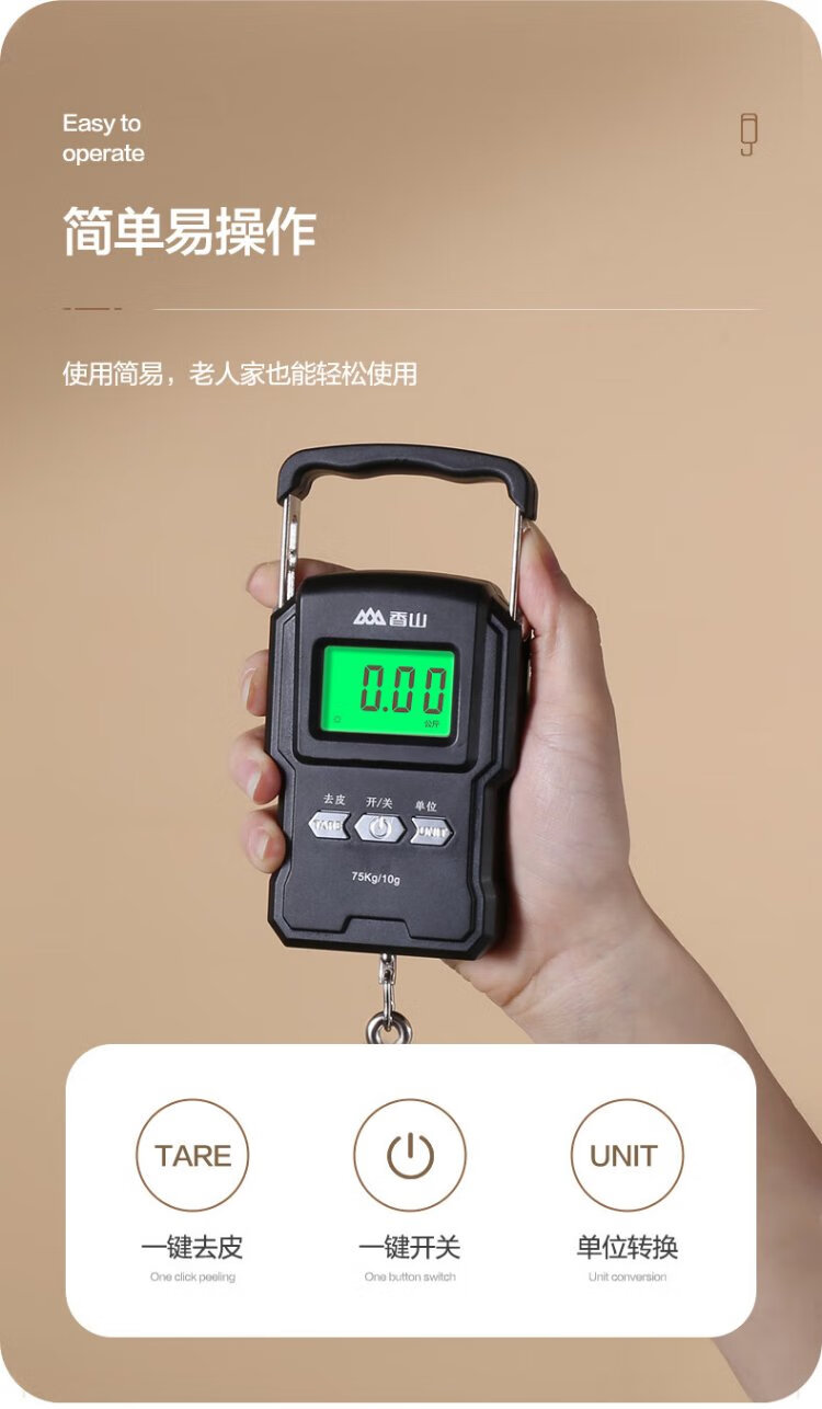 Xiangshan Portable Scale Portable Spring Scale Luggage Scale Electronic Scale Express Scale Electronic Scale Kitchen Small Hanging Scale Hook Scale Battery Model with Tape Measure 0.04kg75kg10g