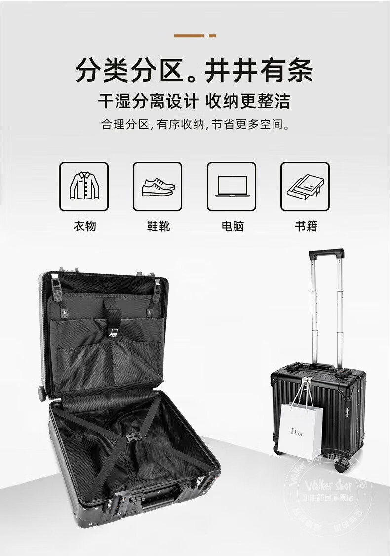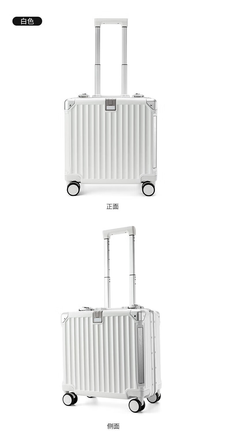 Walker Shop Light Luxury Brand Luggage Men's and Women's Aluminum Frame Carry-on Case Small Trolley Case Short-distance Business Travel Password Box White 16 Inches