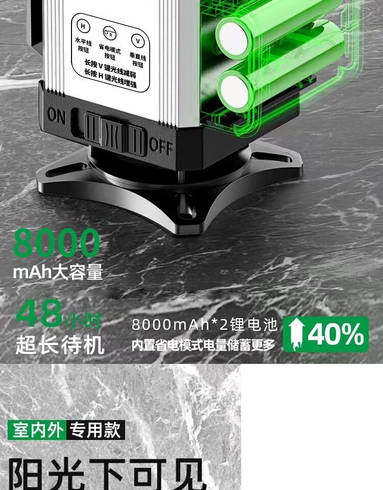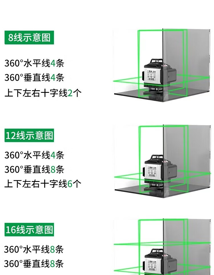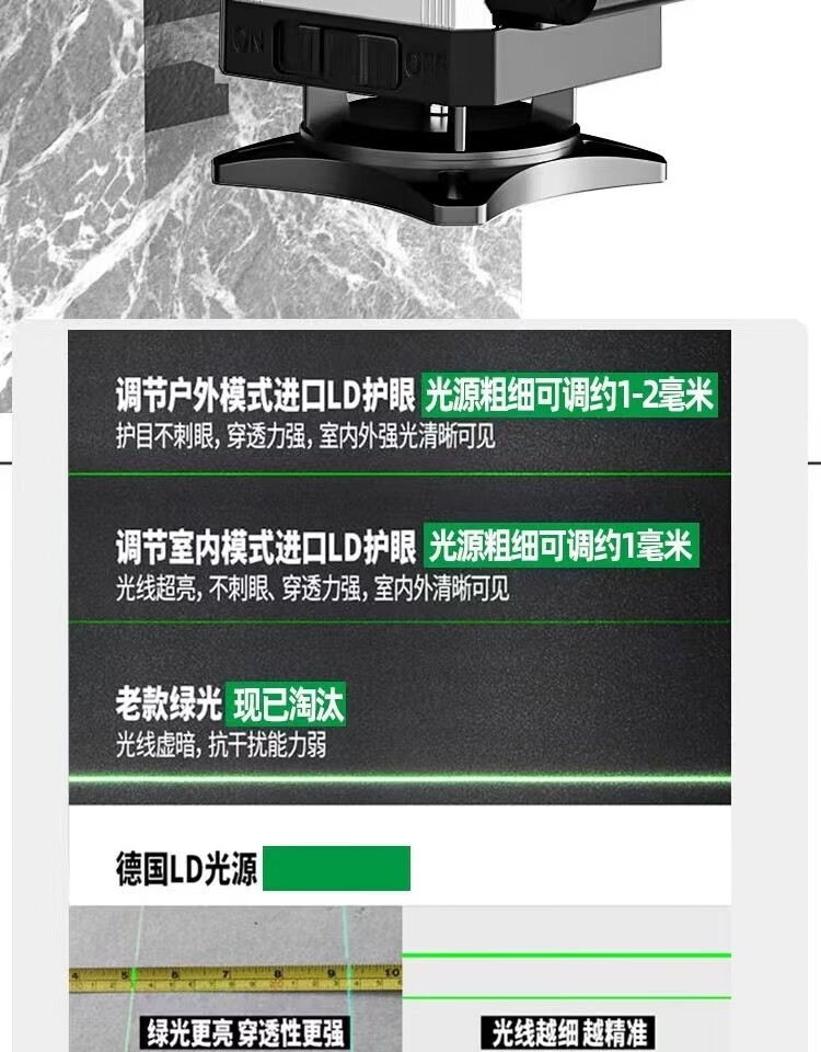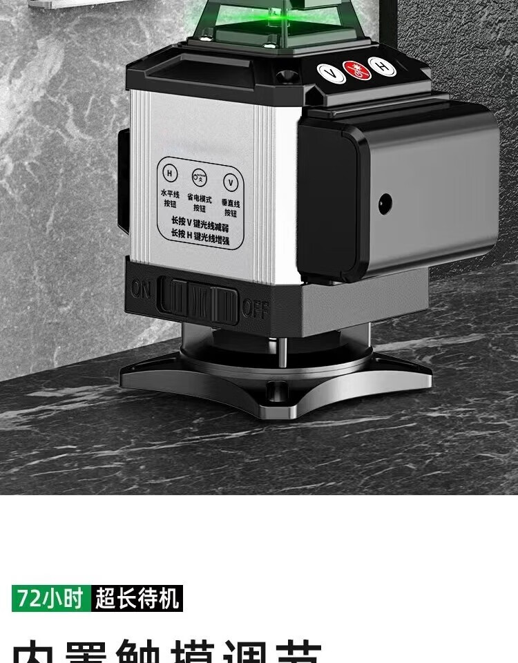 Fiber laser infrared level meter outdoor automatic leveling ultra-bright long standby green light strong light water level meter green light 8 lines extra thick aluminum alloy top version
