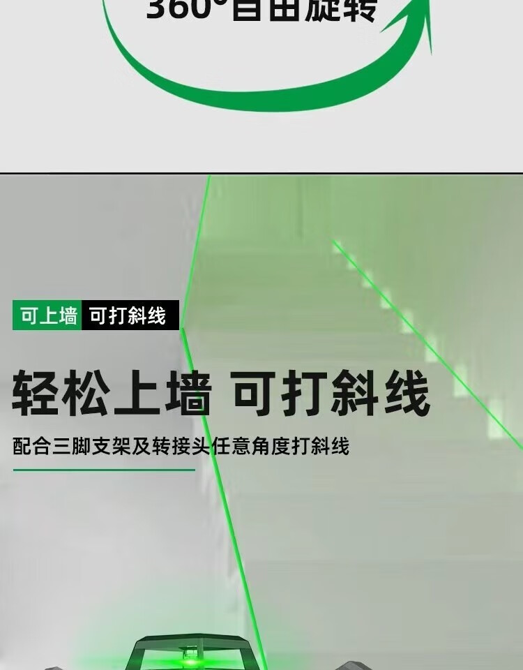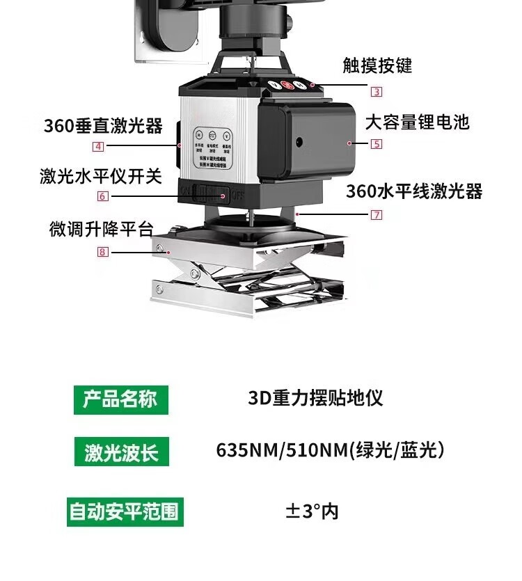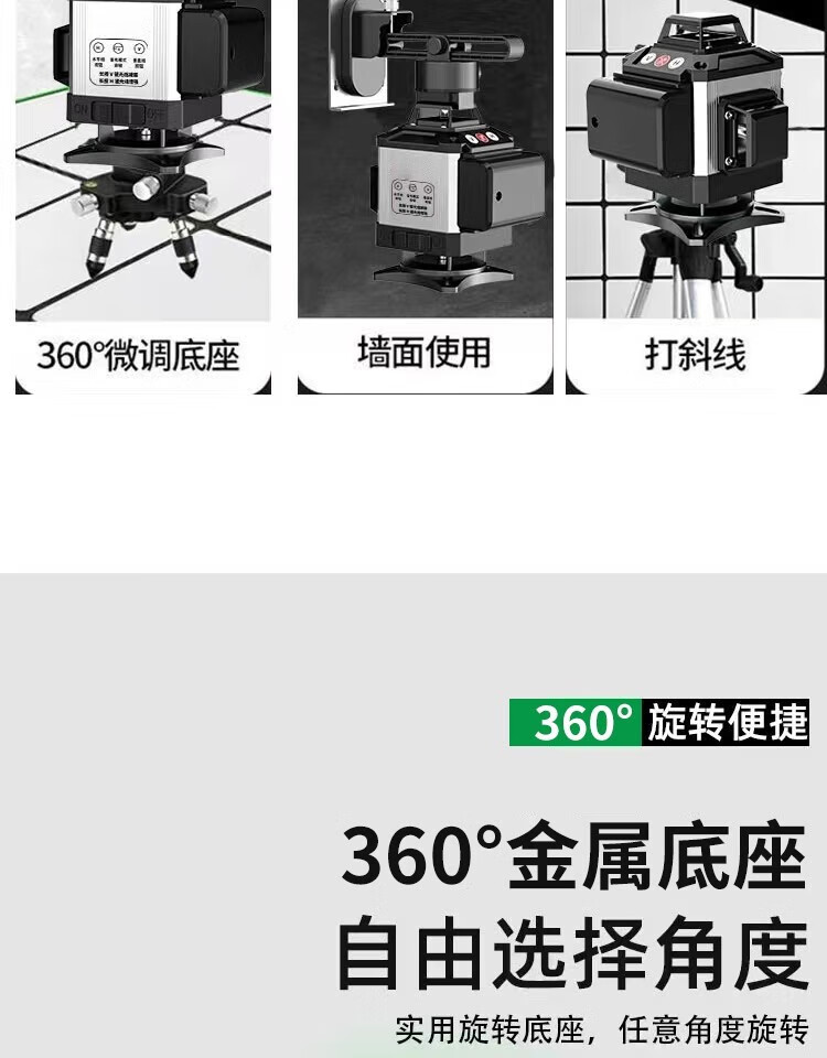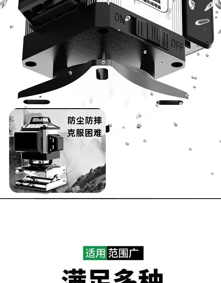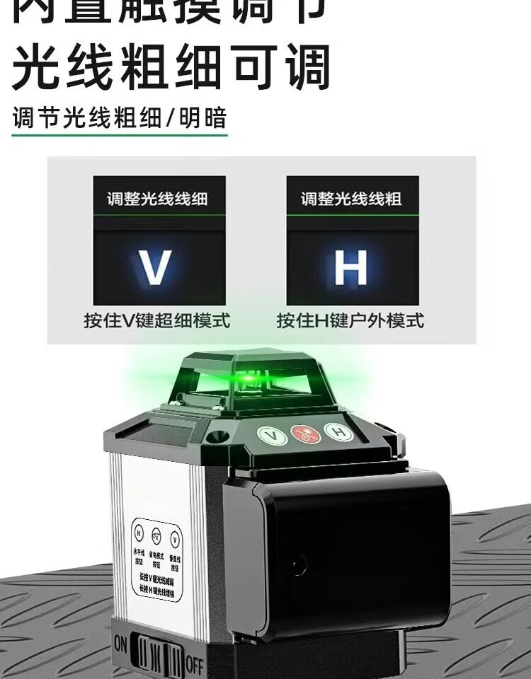 Fiber laser infrared level meter outdoor automatic leveling ultra-bright long standby green light strong light water level meter green light 8 lines extra thick aluminum alloy top version