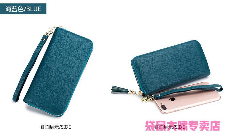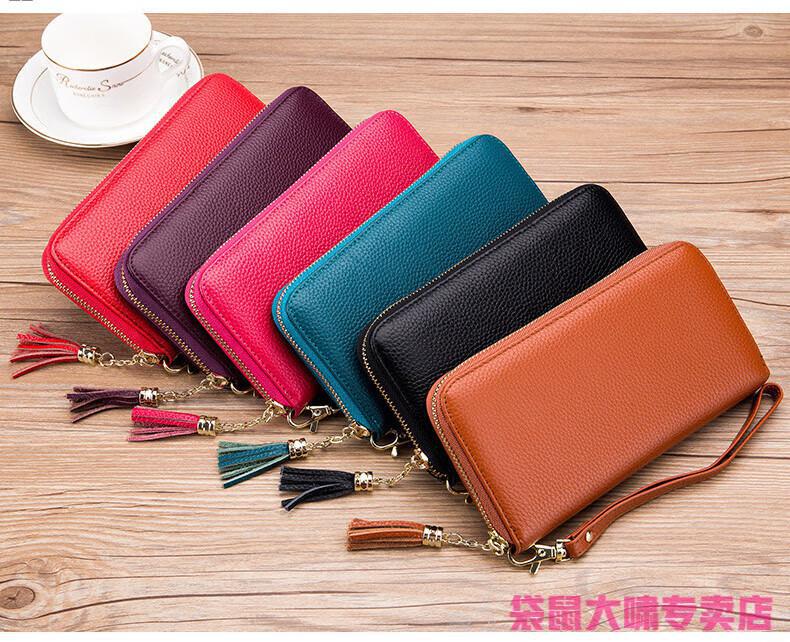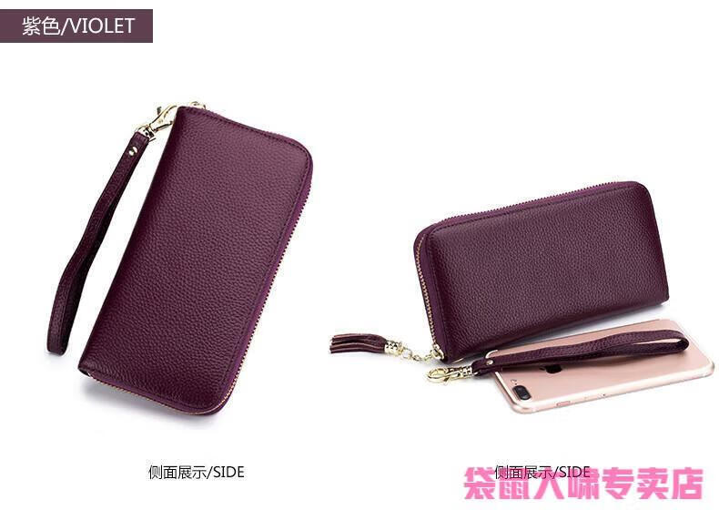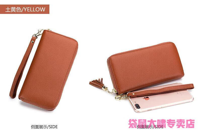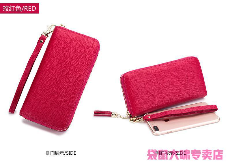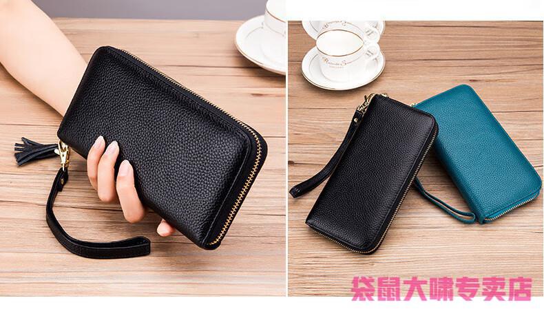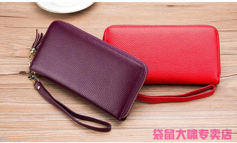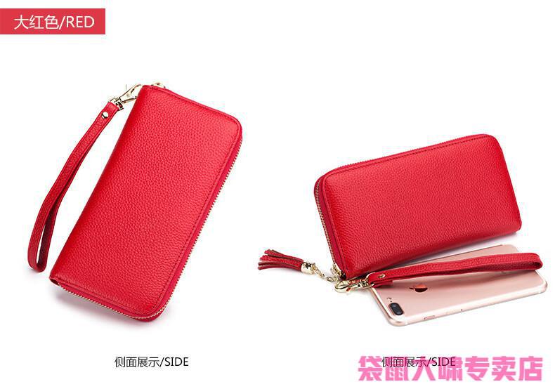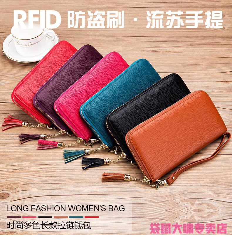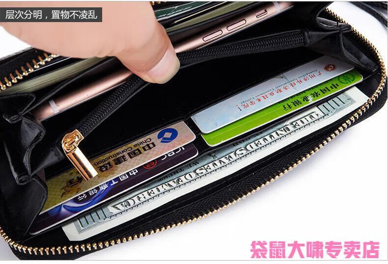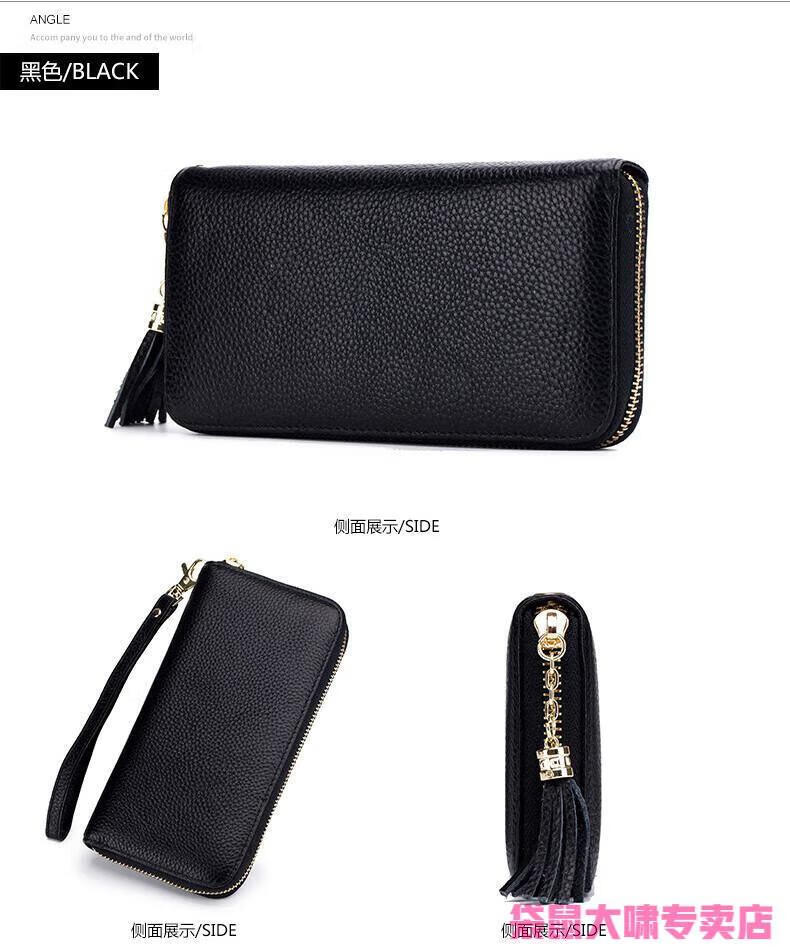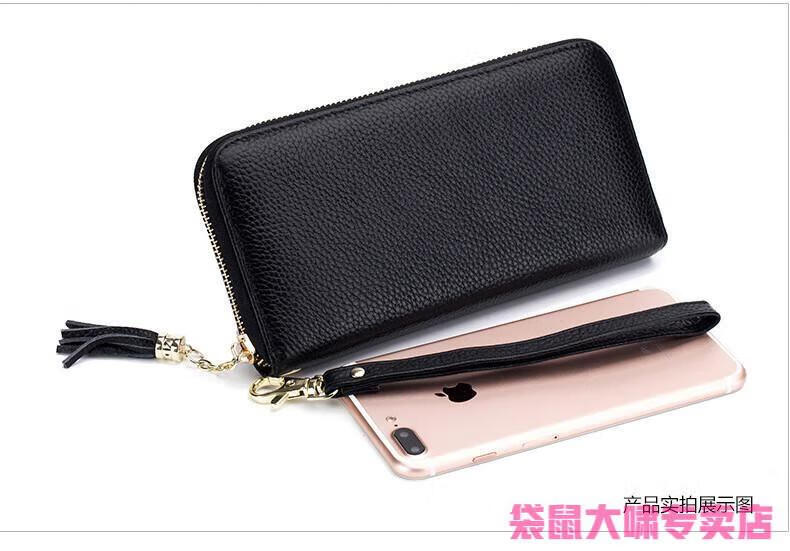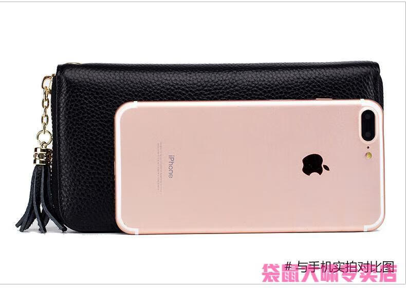 Kangaroo (KANGAROO) 2025 Chinese Valentine's Day genuine leather women's wallet anti-theft brush large capacity long cowhide card bag mobile phone bag for women multi-color optional black