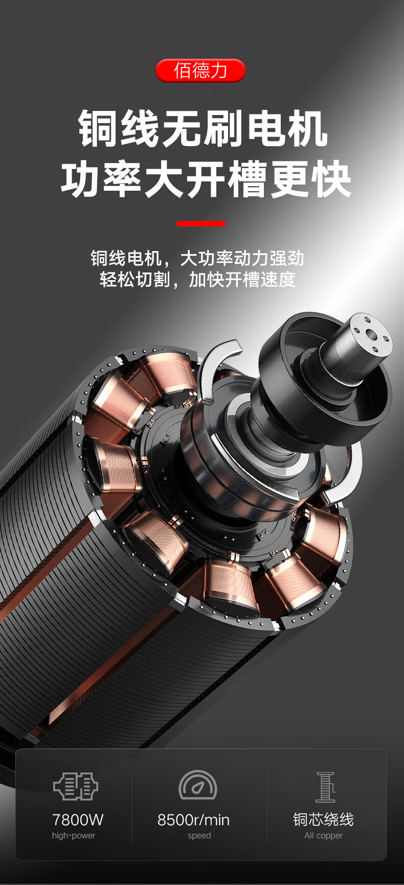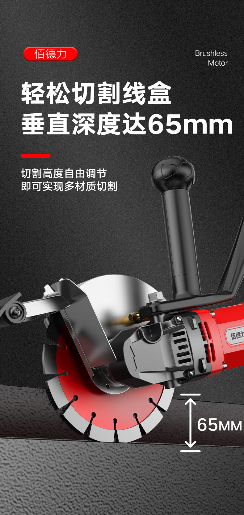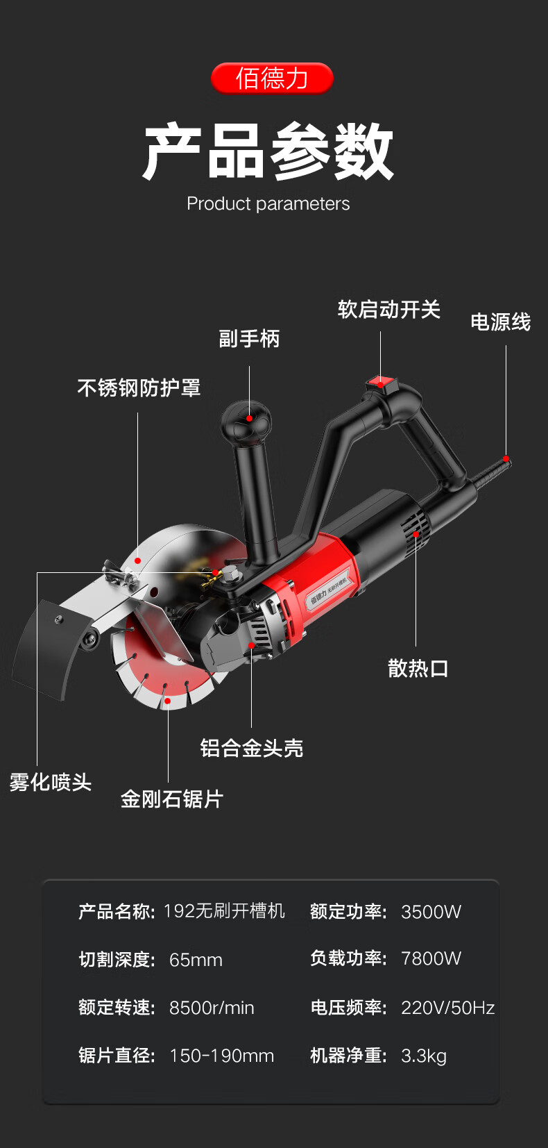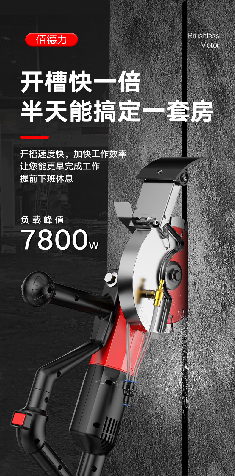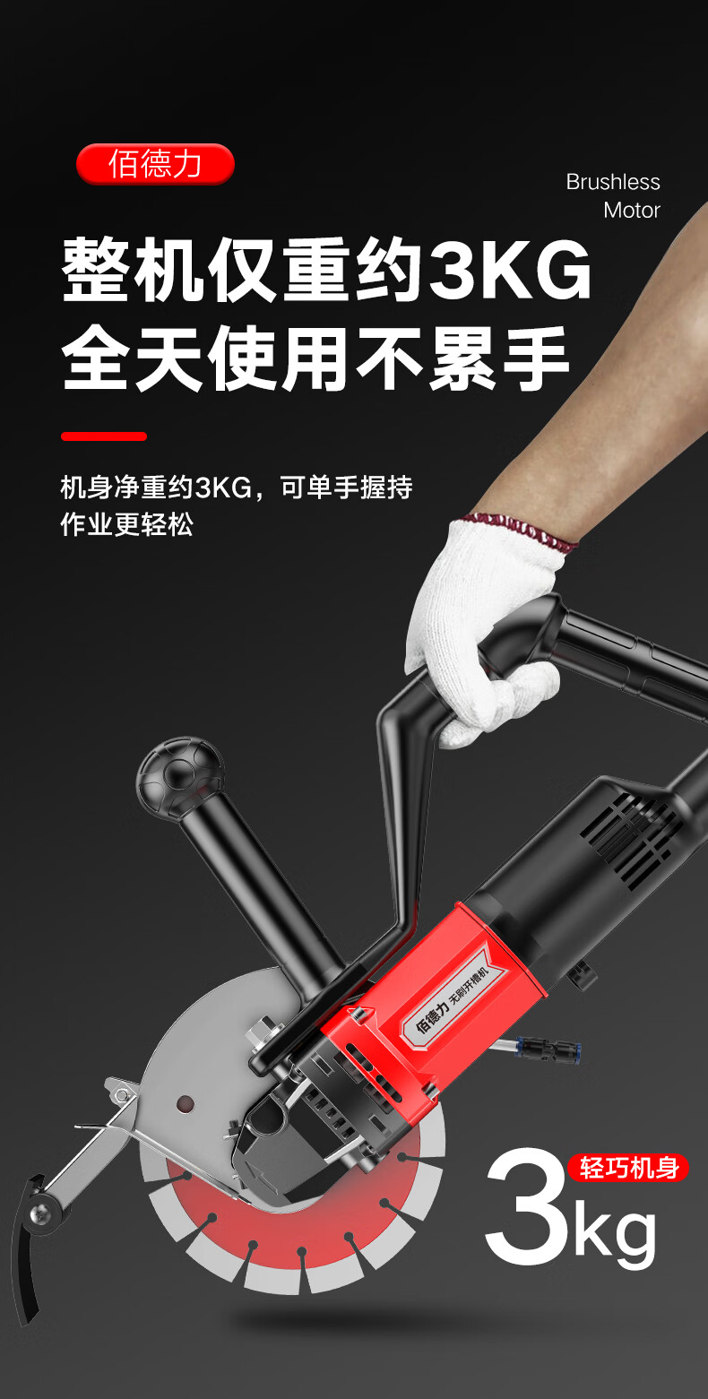 Baideli 192 single-chip brushless slotting machine concrete stone wall high-power dust-free water-electric cutting machine marble machine 192 single-chip brushless slotting machine load 7800W