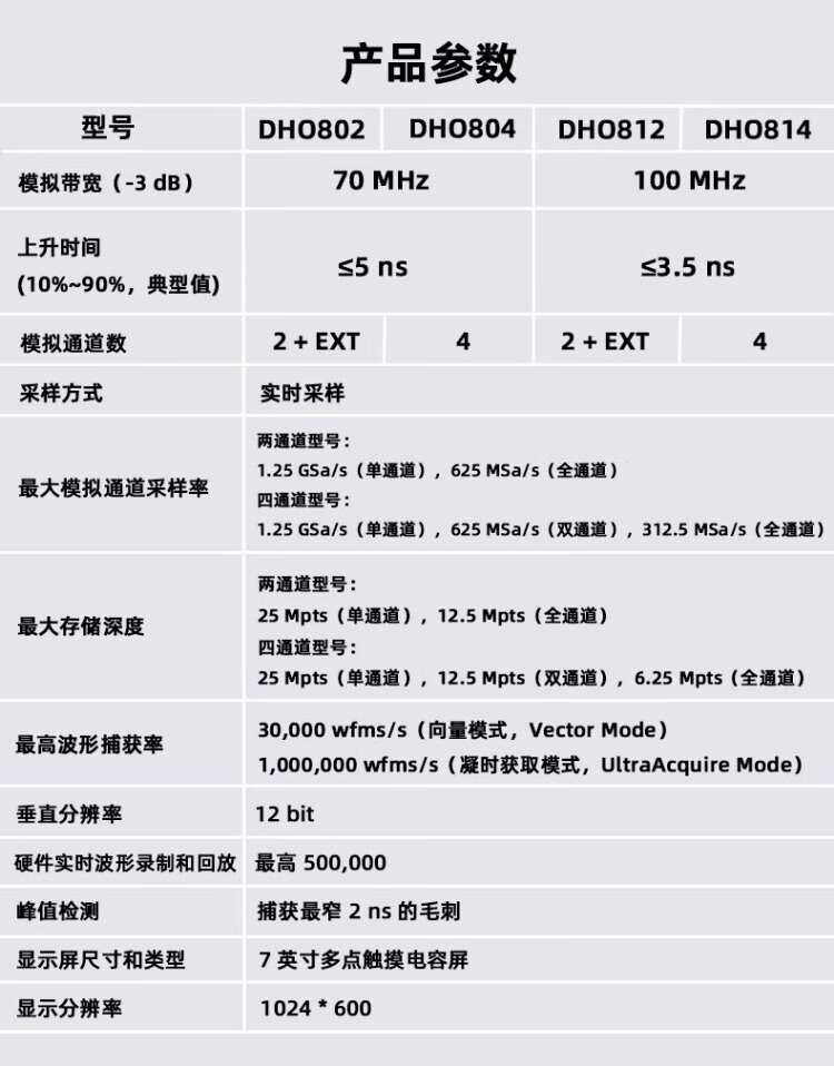 RIGOL Puyuan Precision DHO814 digital oscilloscope four-channel 100MHz high-resolution 12bit portable DHO814 (100MHz four-channel)