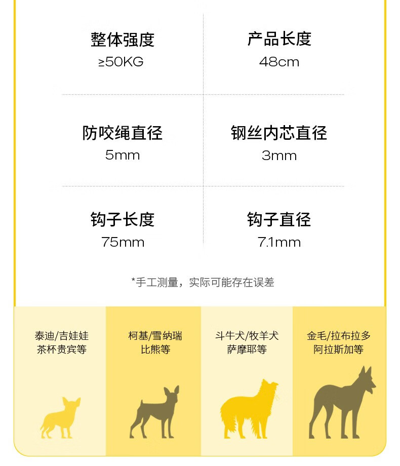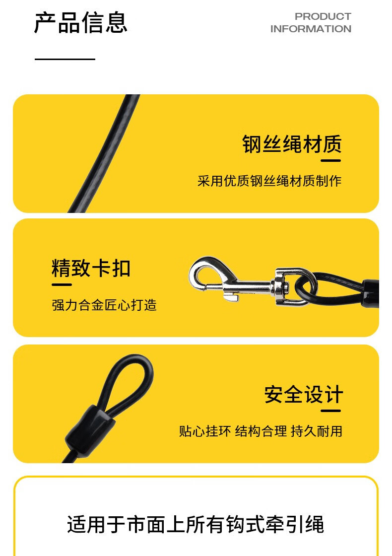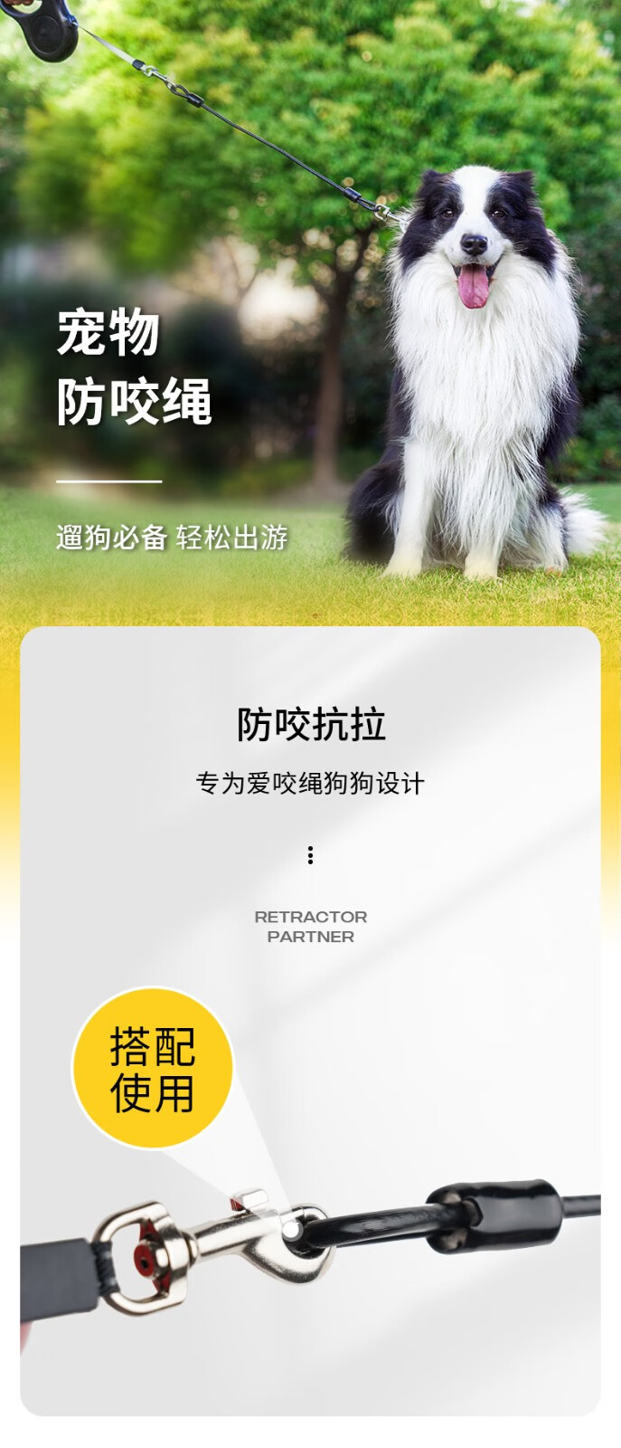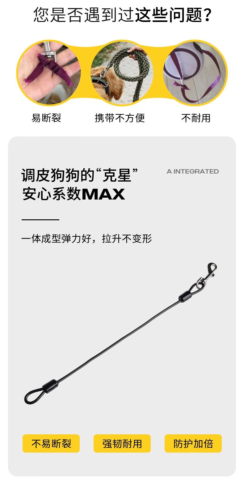 Super durable dog leash, anti-bite steel wire dog leash, medium and large dog golden retriever husky dog leash, pet dog leash, wire rope, black, one size fits all (length 60cm, suitable for both large and small dogs)
