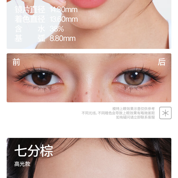 HIME Half-Year Disposable Contact Lenses High Gloss Sunburst Brown Ice Grape Seed Student Daily Versatile Atmosphere 2 Pieces Sunburst Brown 14.30mm (Small Diameter) 0 Degree
