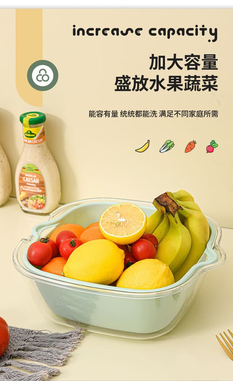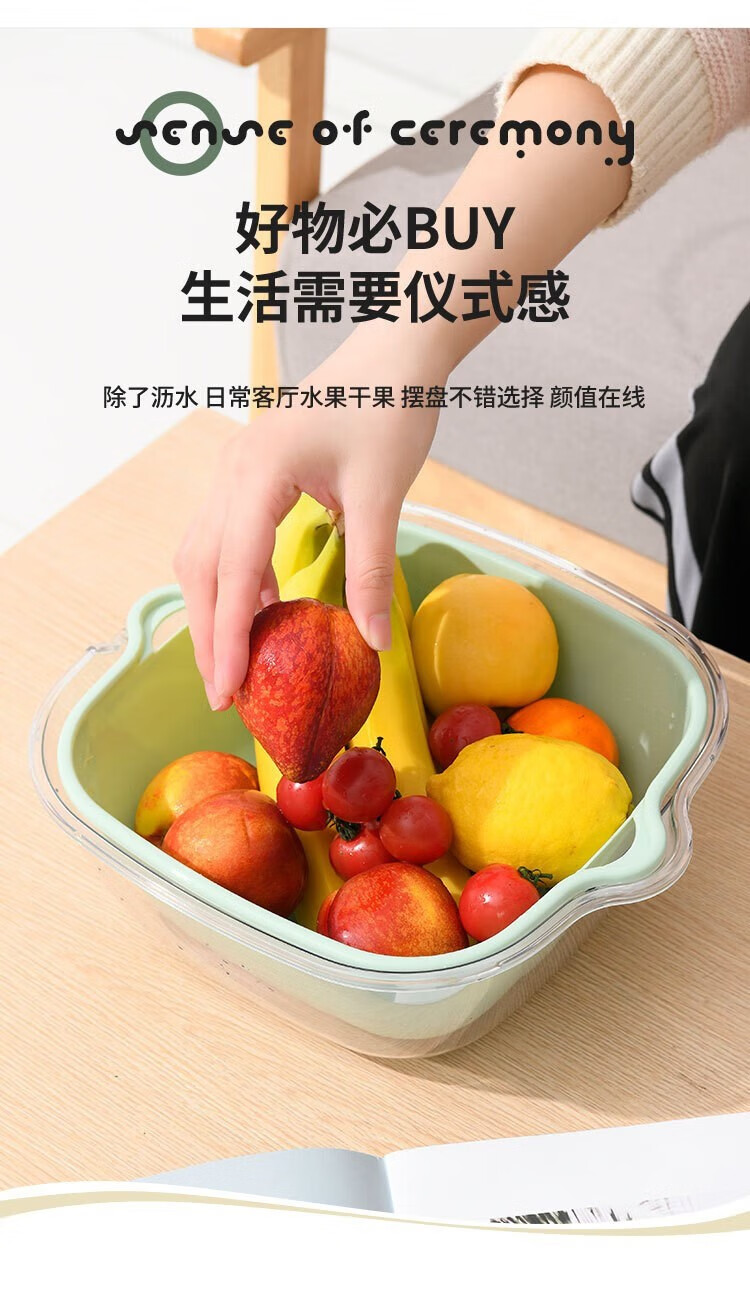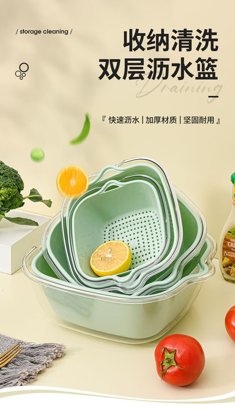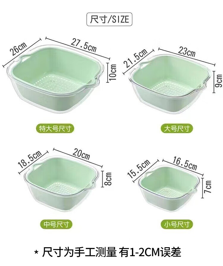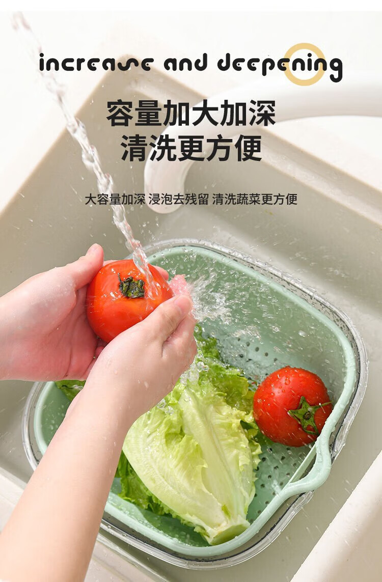 KANGZHIBAN sink plastic drain basket double-layer kitchen drain basket fruit plate vegetable basket thickened rice washing dish small/medium/large 6-piece set green