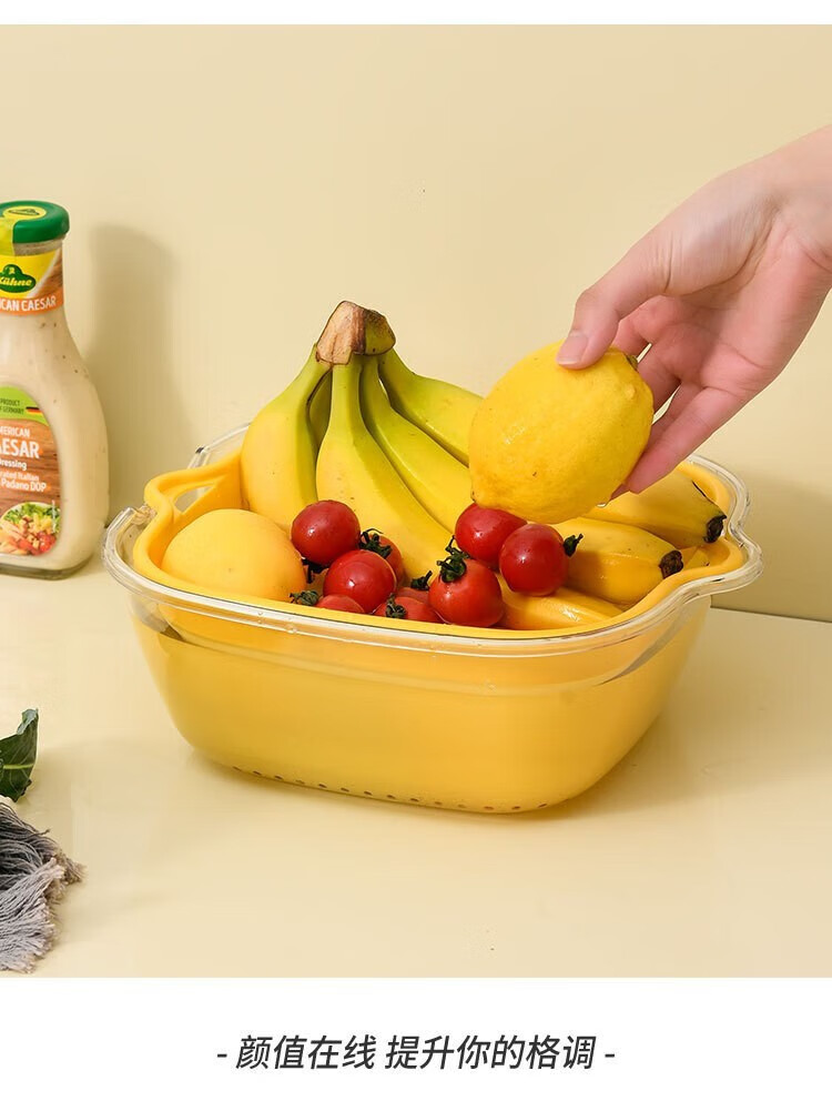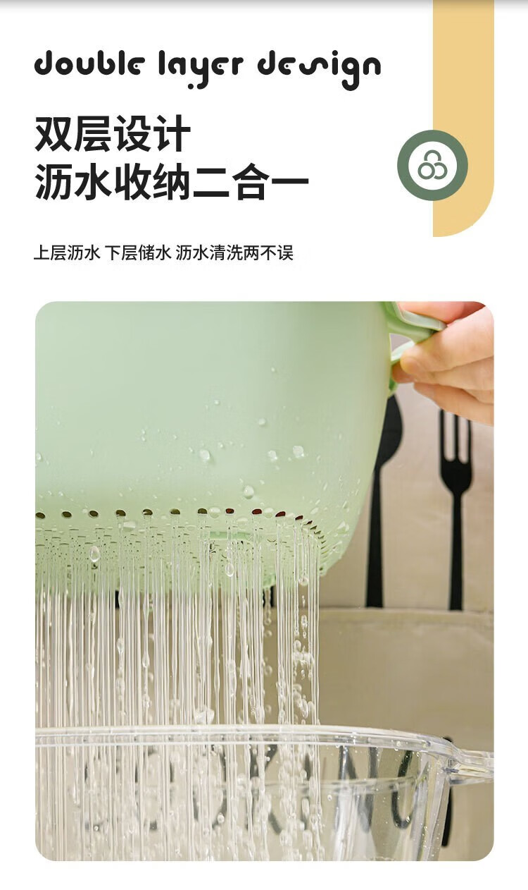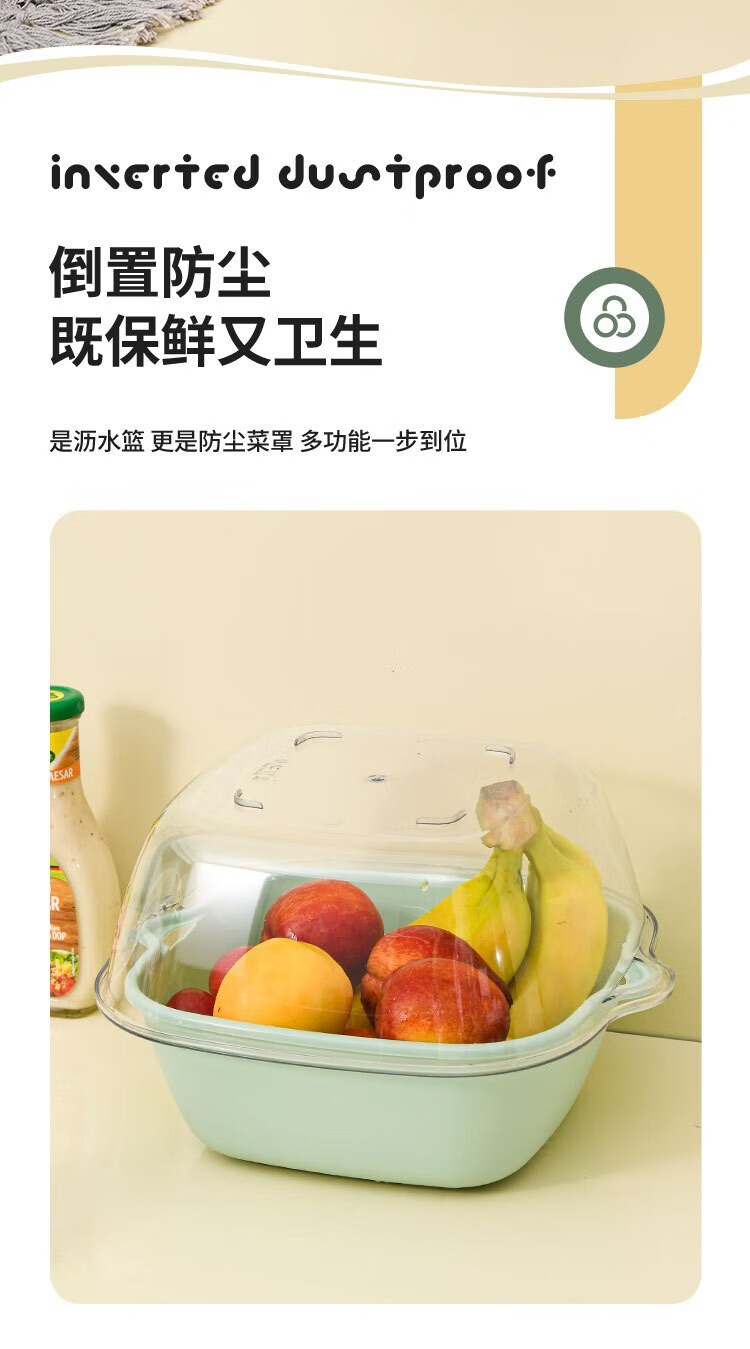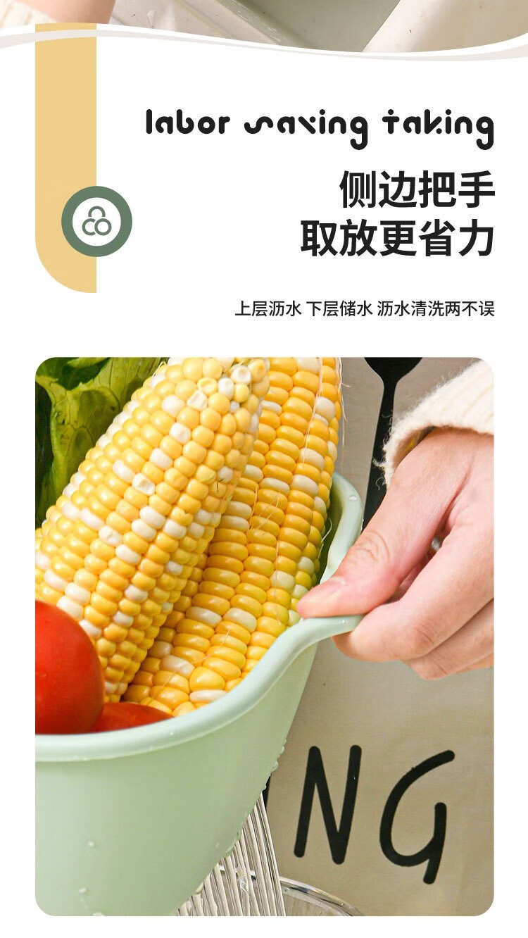 KANGZHIBAN sink plastic drain basket double-layer kitchen drain basket fruit plate vegetable basket thickened rice washing dish small/medium/large 6-piece set green