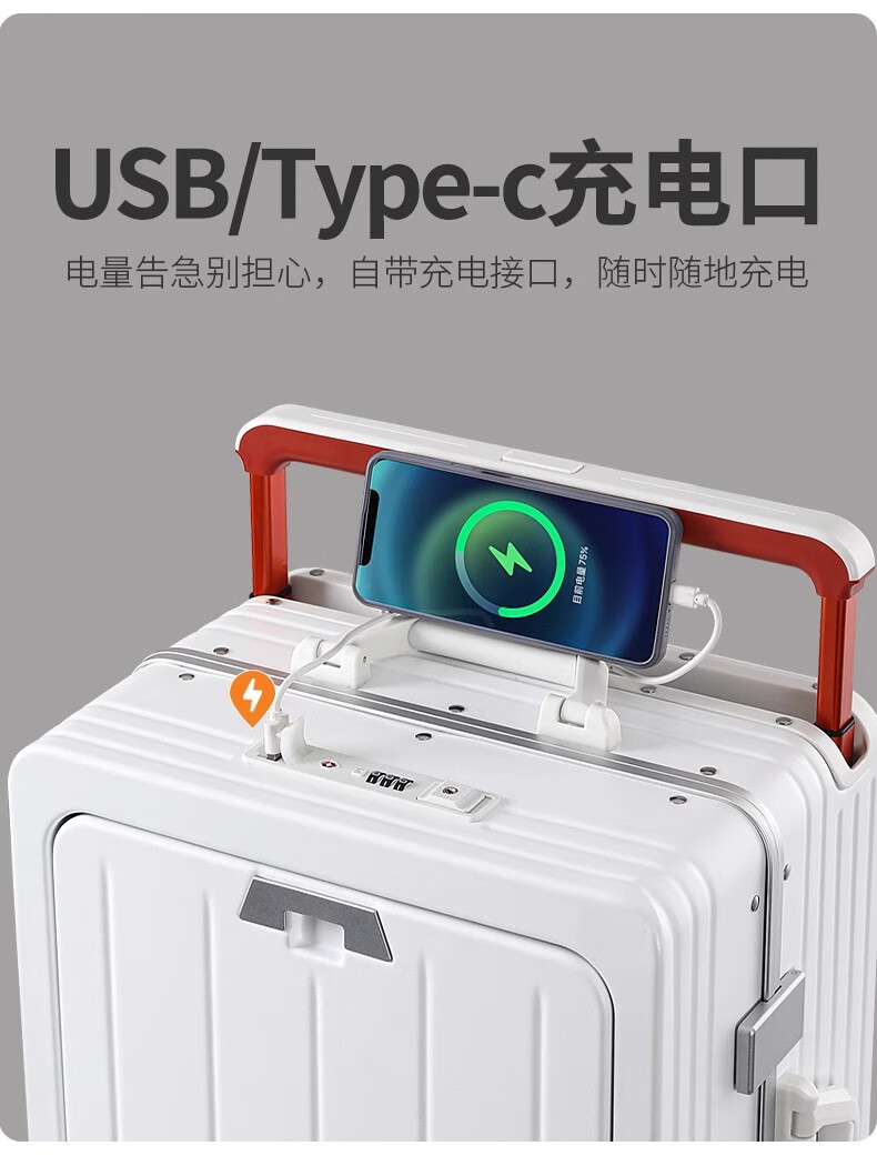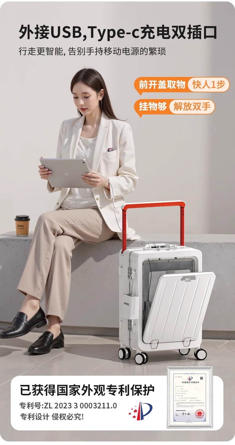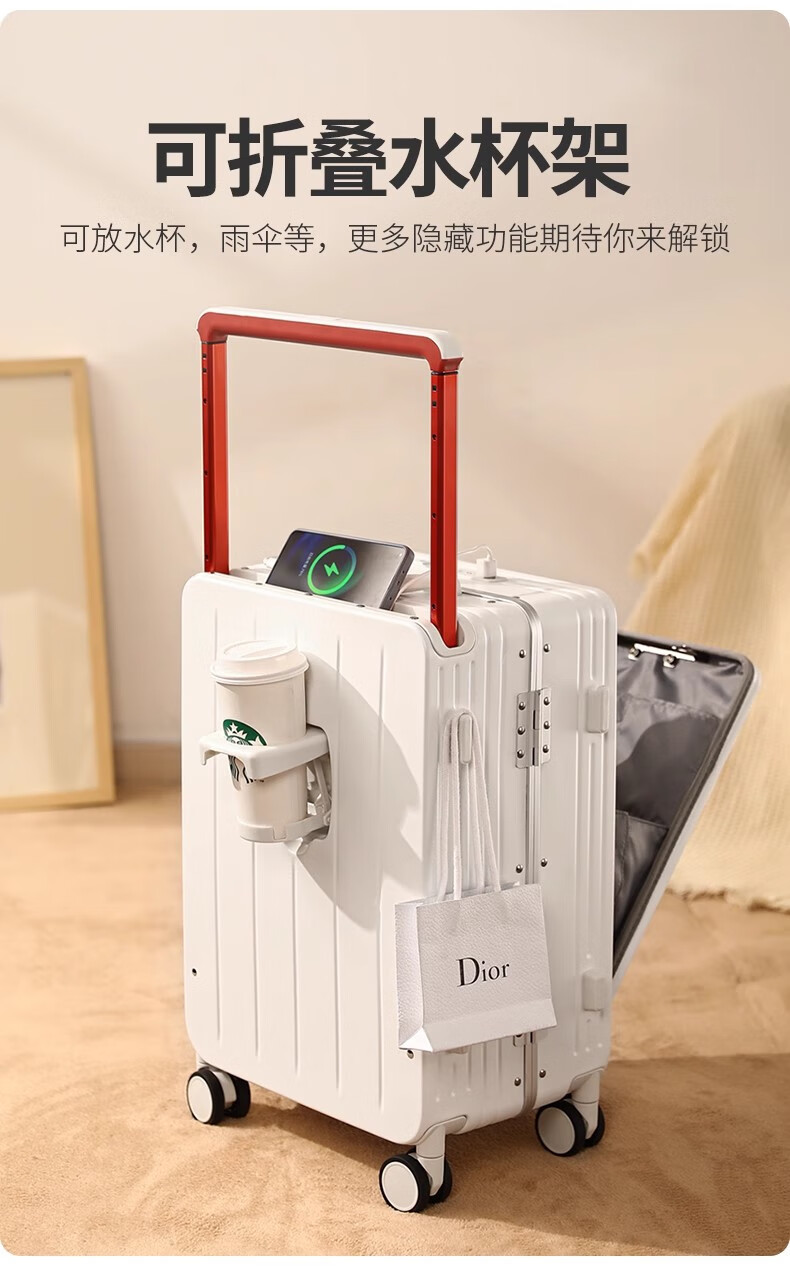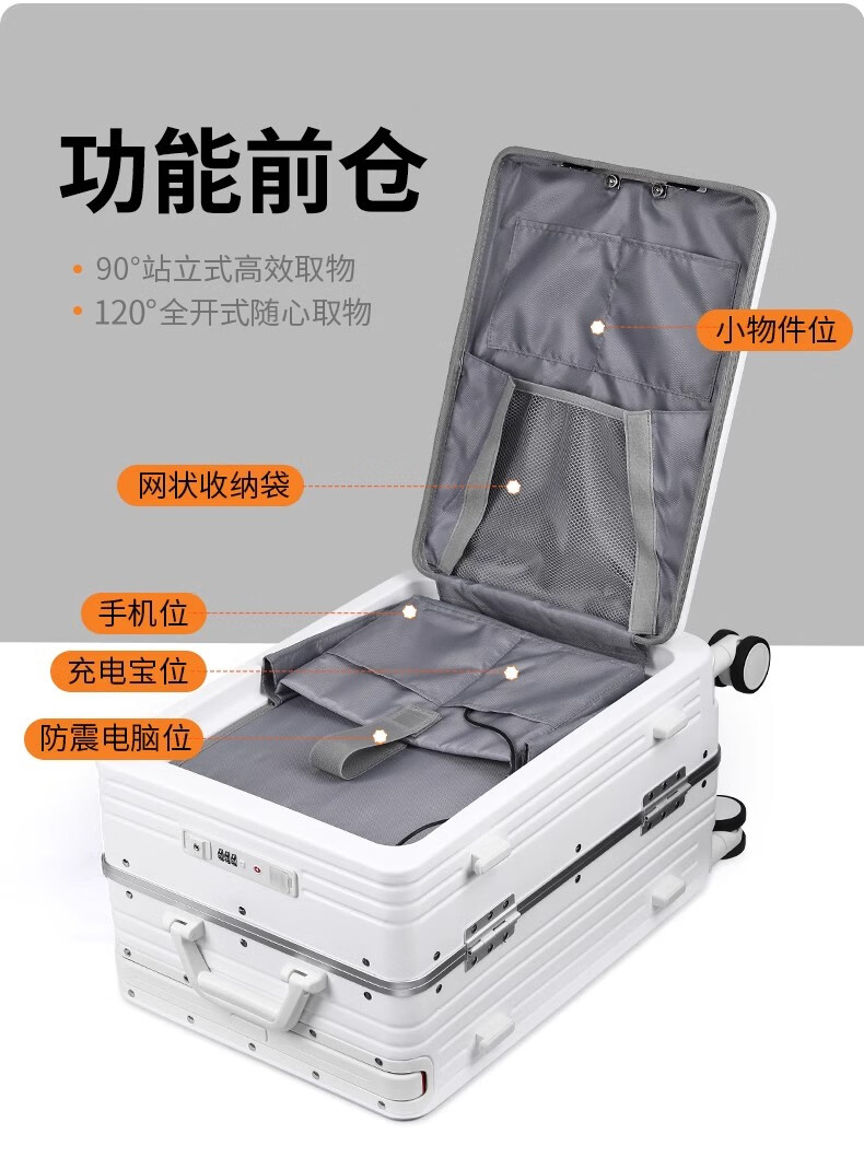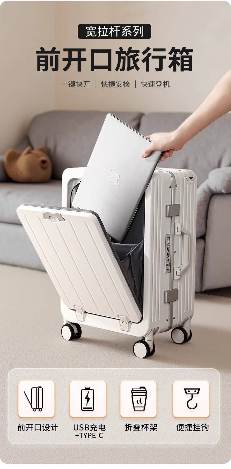 OTA front opening suitcase women's new wide trolley multi-functional boarding case small password suitcase leather suitcase for men Pearl white aluminum frame front opening design + water cup holder + USB charging 20 inches boarding case three-layer PC material + quality inspection is better than the national standard
