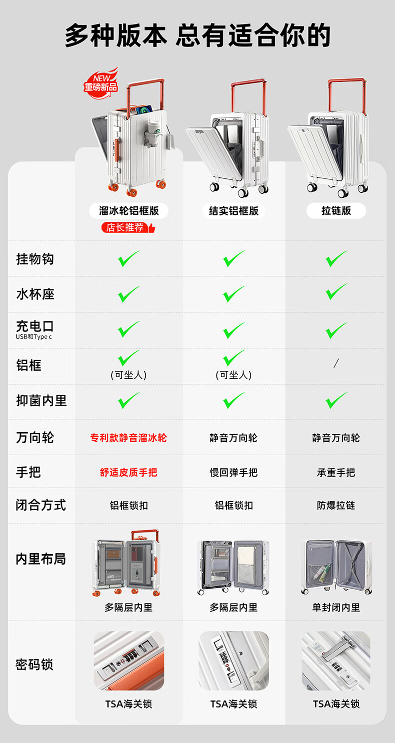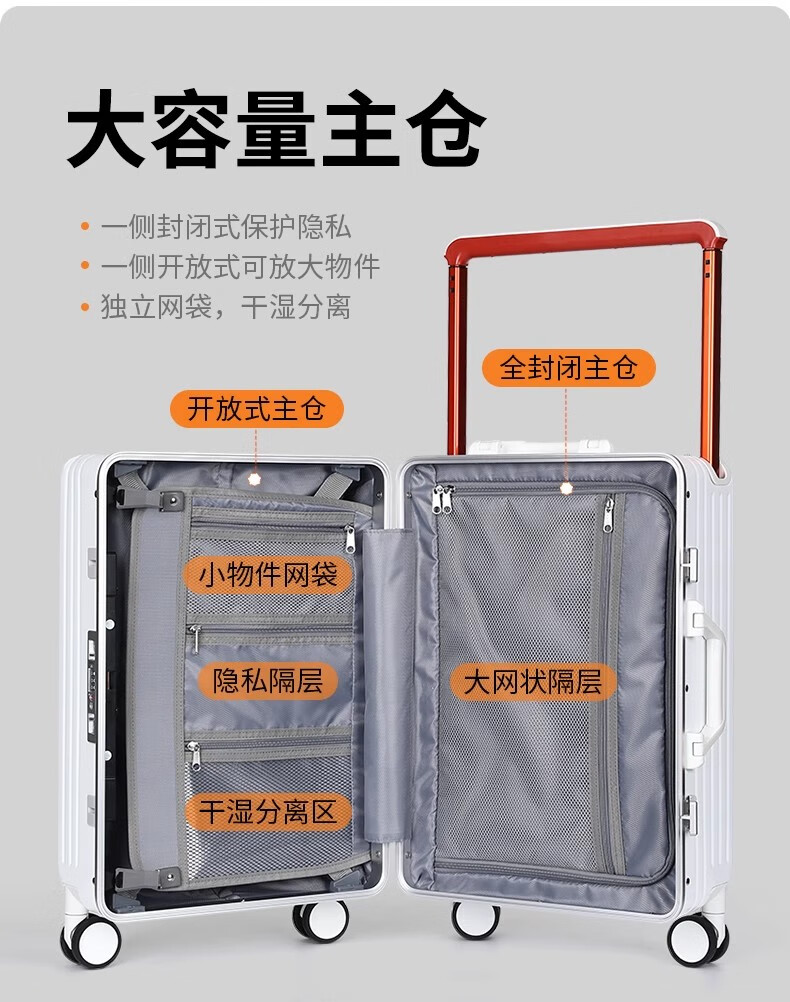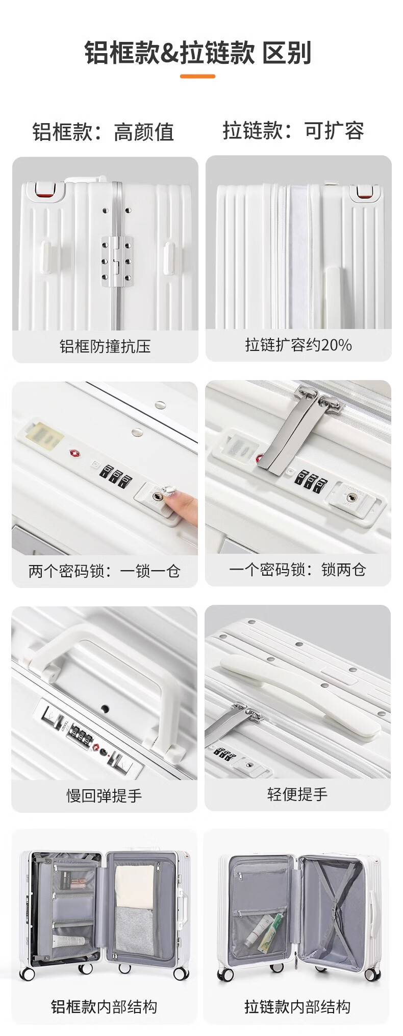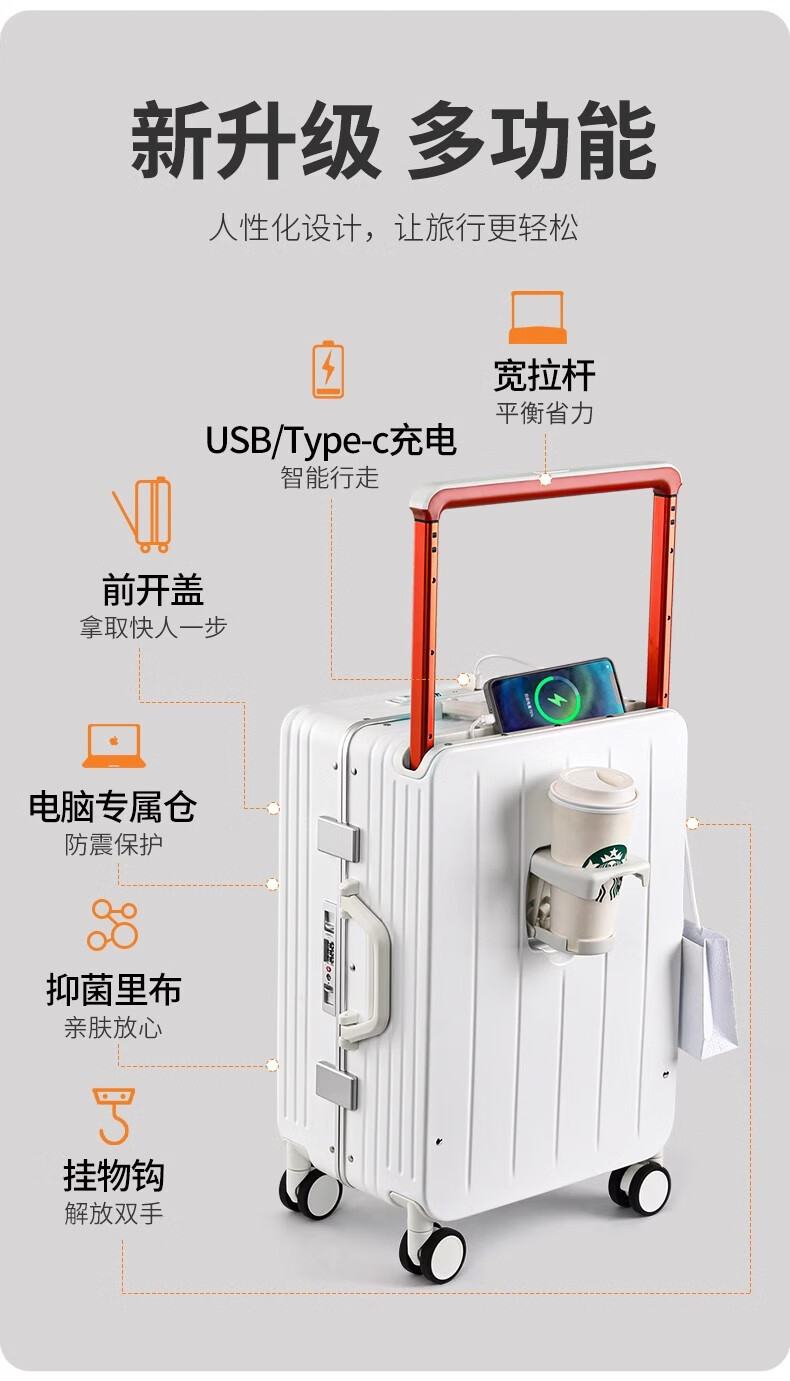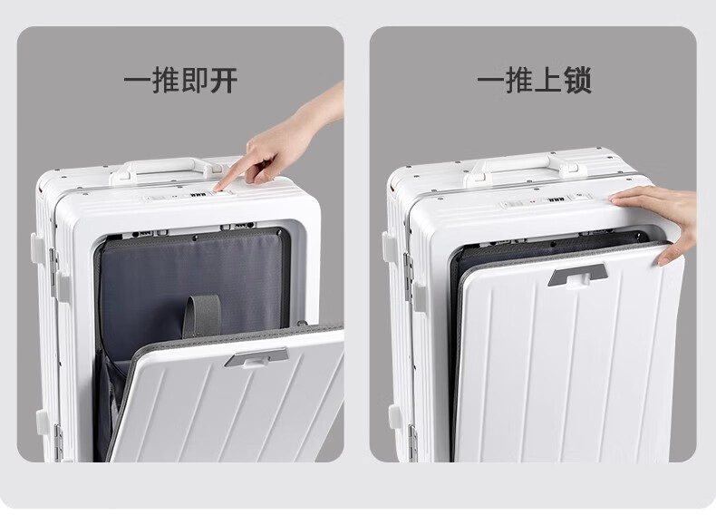 OTA front opening suitcase women's new wide trolley multi-functional boarding case small password suitcase leather suitcase for men Pearl white aluminum frame front opening design + water cup holder + USB charging 20 inches boarding case three-layer PC material + quality inspection is better than the national standard