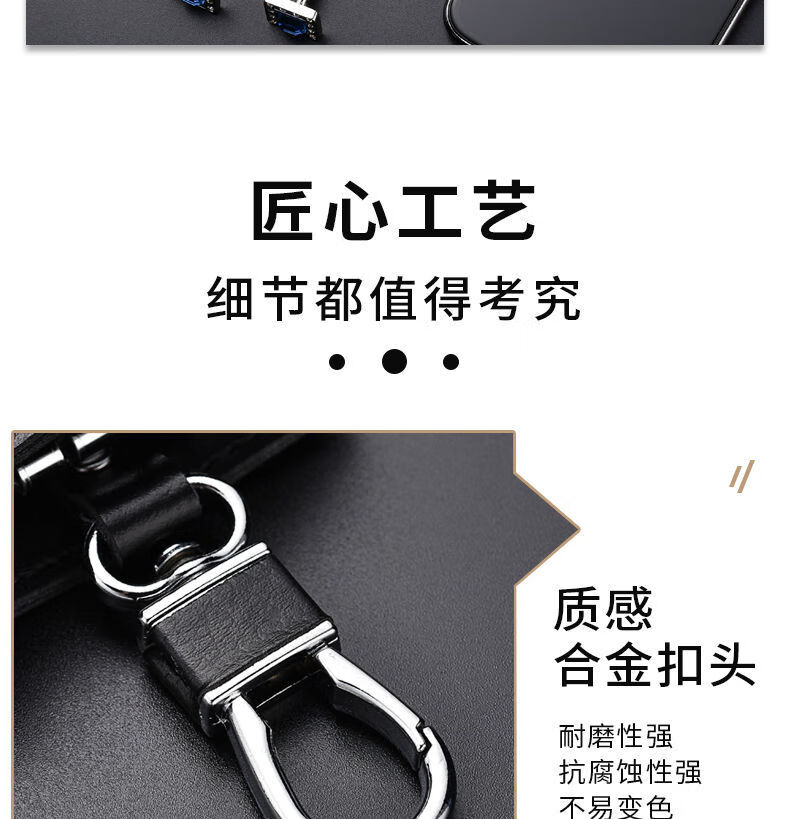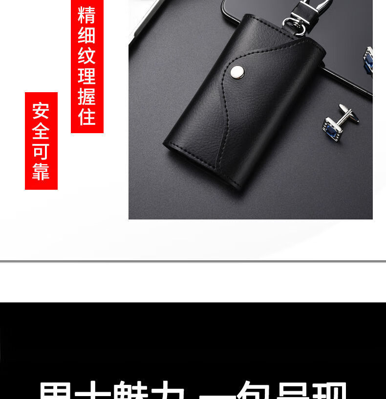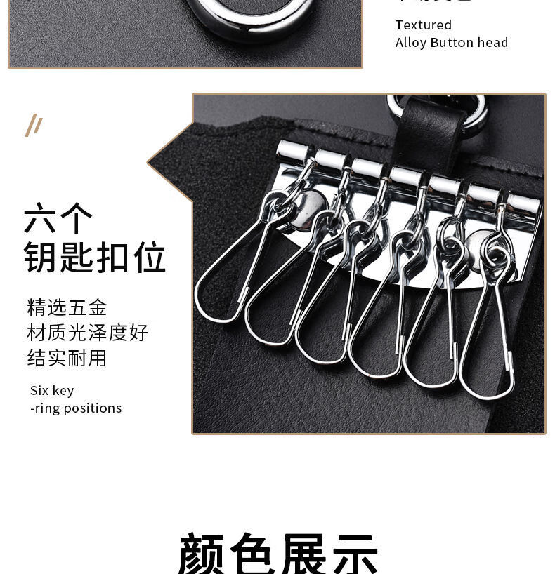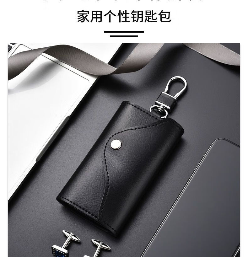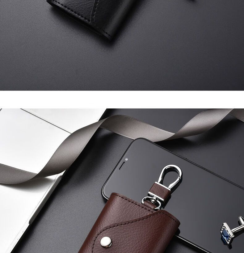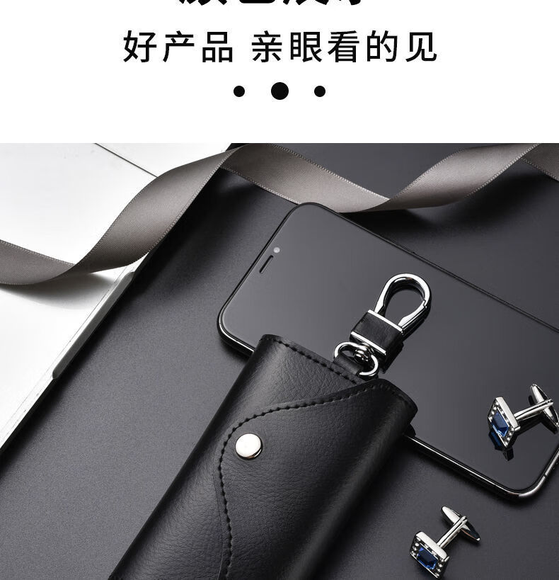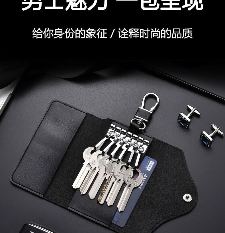 Qindu cowhide key bag men's large-capacity multi-functional universal car key chain women's waist hanging compact home key bag buckle version-black 6 key positions