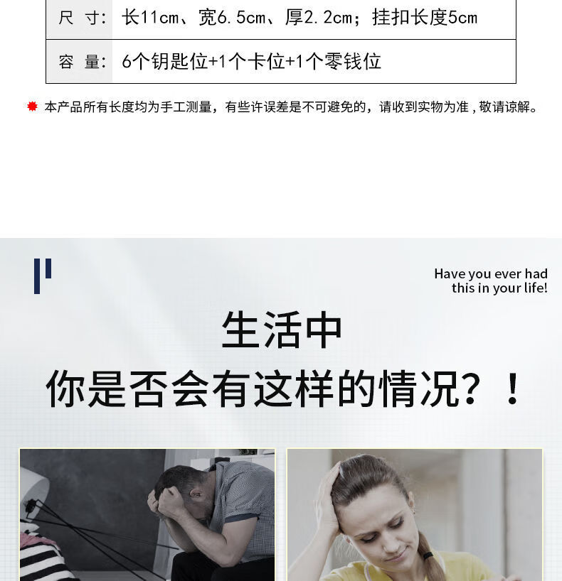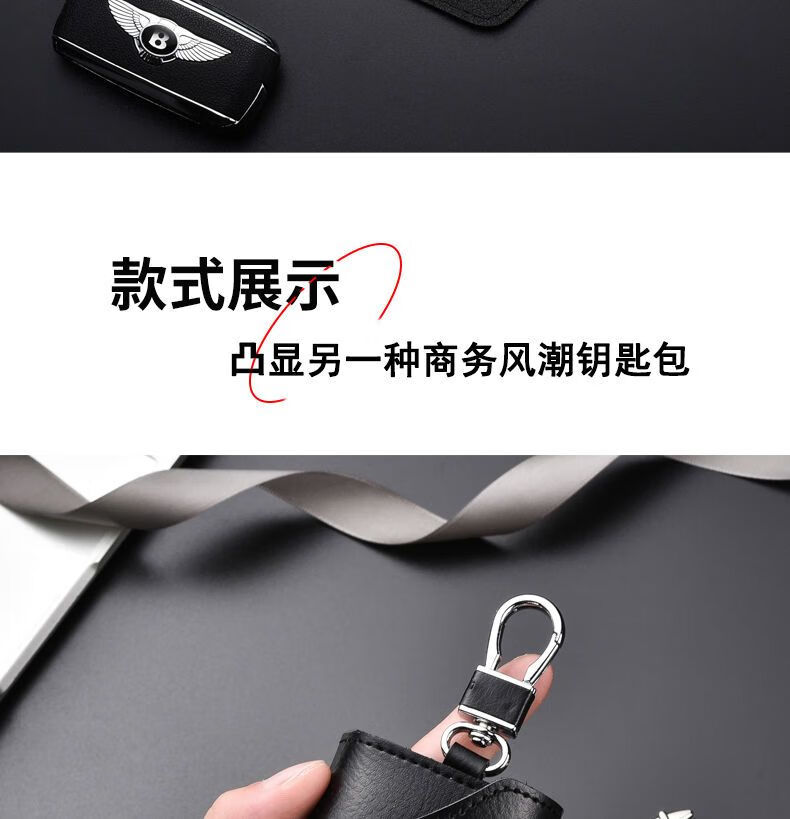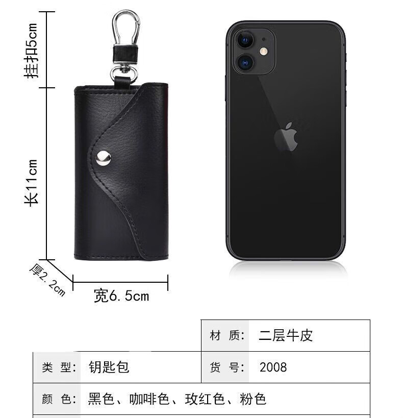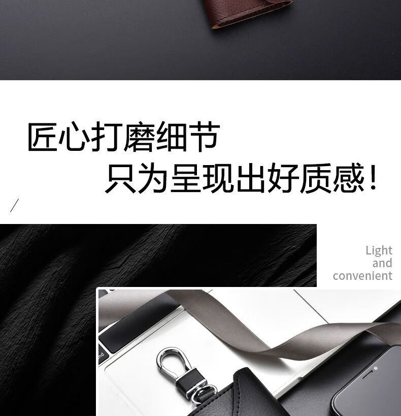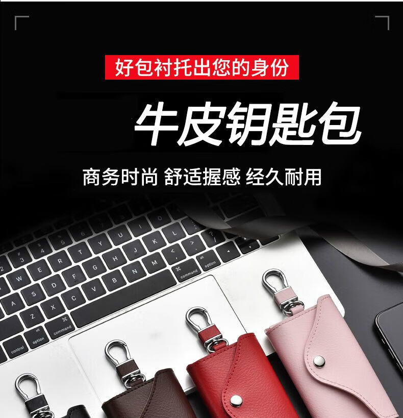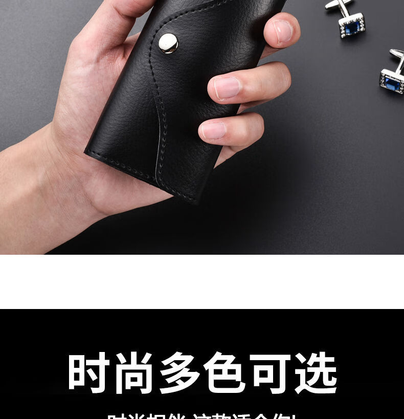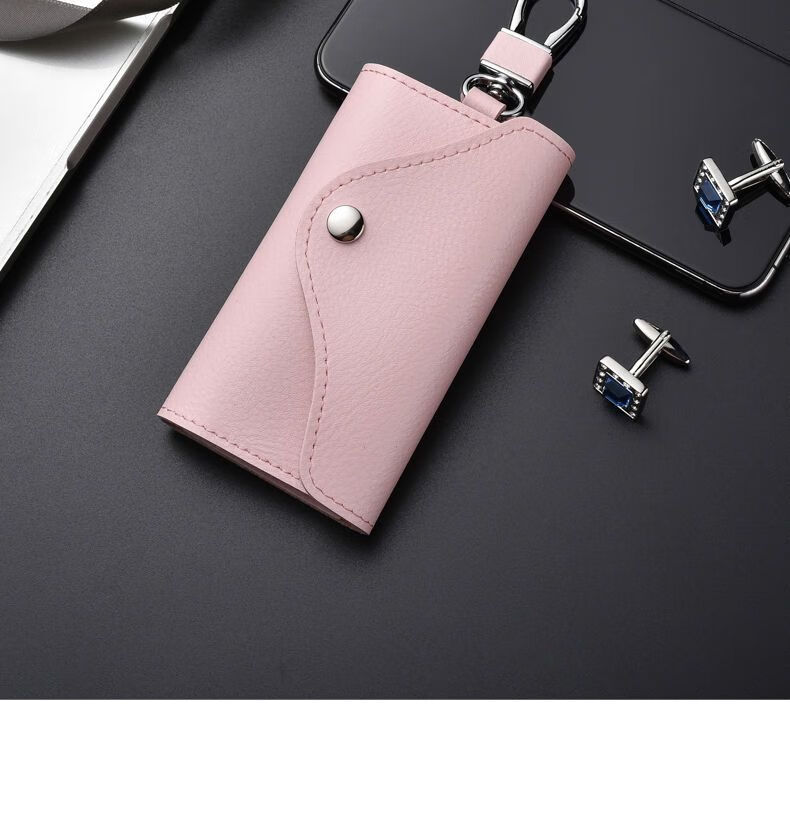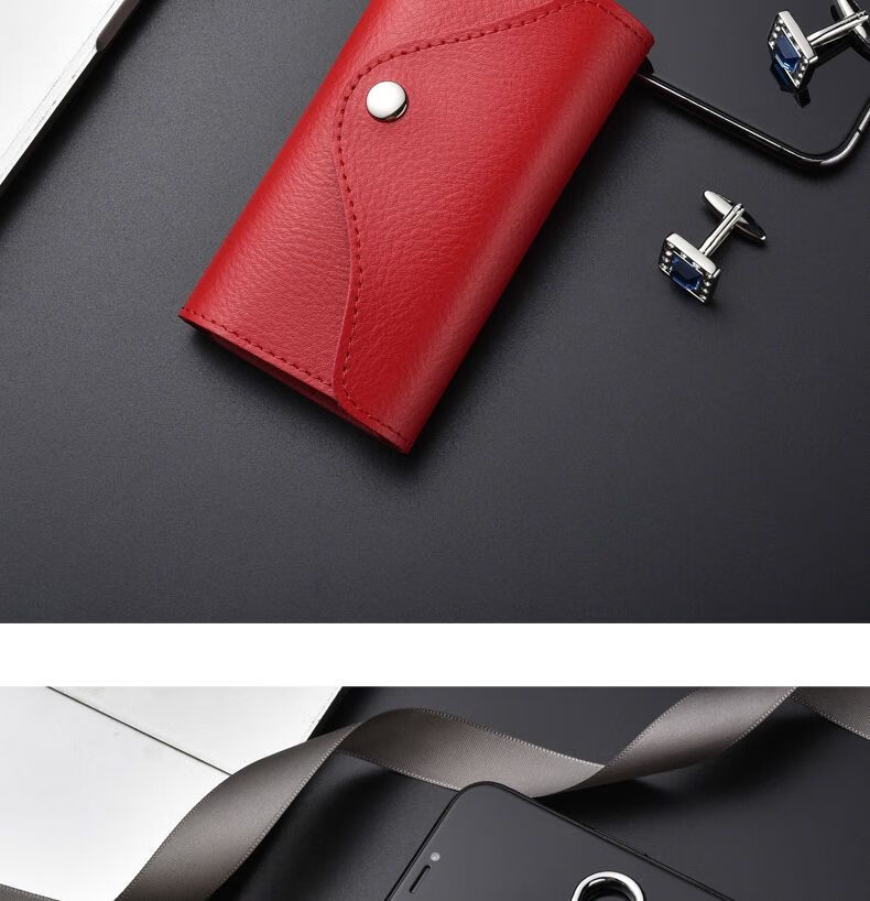 Qindu cowhide key bag men's large-capacity multi-functional universal car key chain women's waist hanging compact home key bag buckle version-black 6 key positions