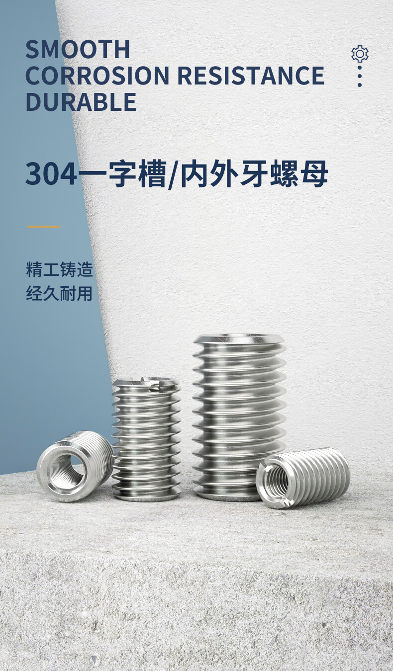 GUWANJI 304 stainless steel internal and external thread nut conversion self-tapping brace screw thread sheath national standard fastener collection M8*1.25*M10*1.5*15 5 pieces slotted