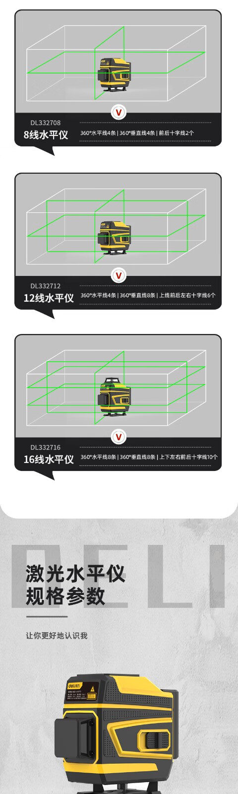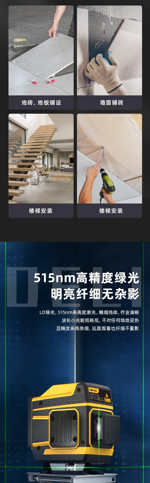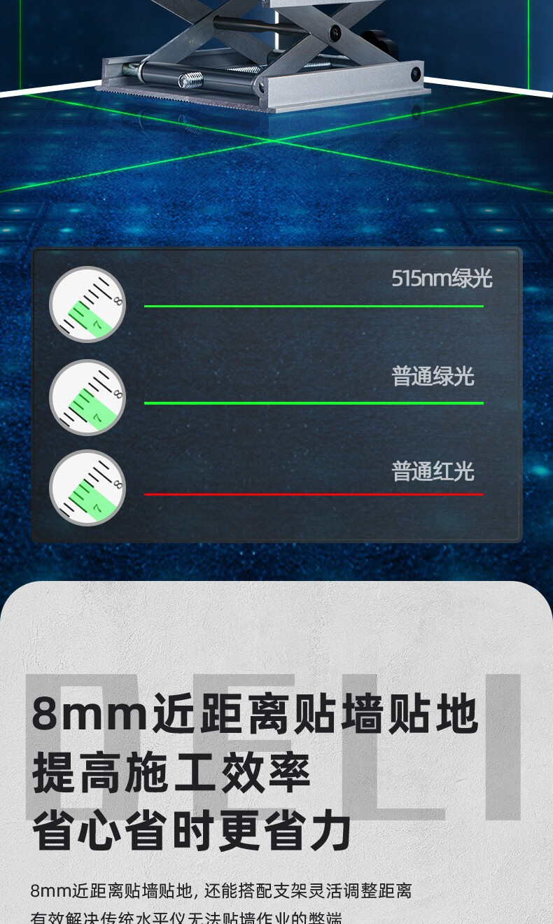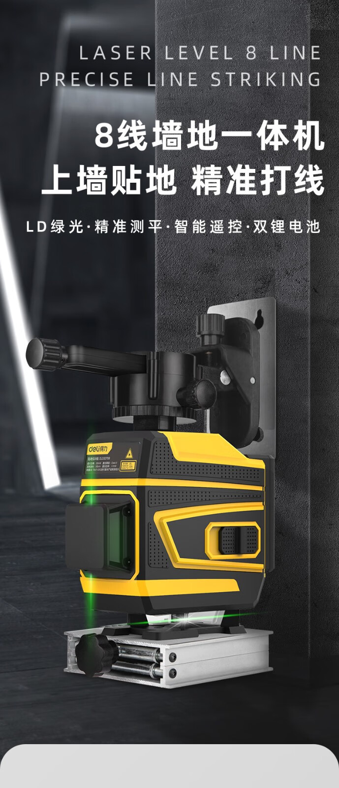 Deli 12-line level meter, high-precision strong light green light laser wall-mounting meter, infrared ultra-bright thin line 16-line floor leveling meter, 8-line wall-mounting level meter all-in-one machine