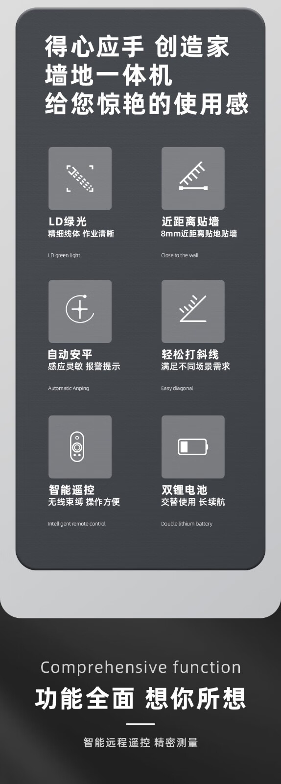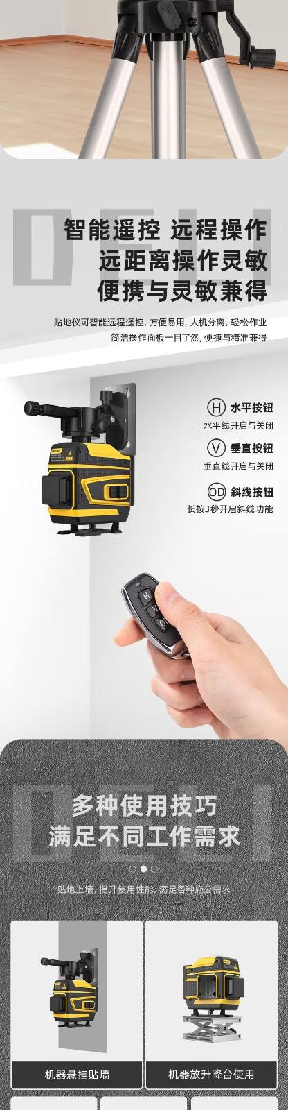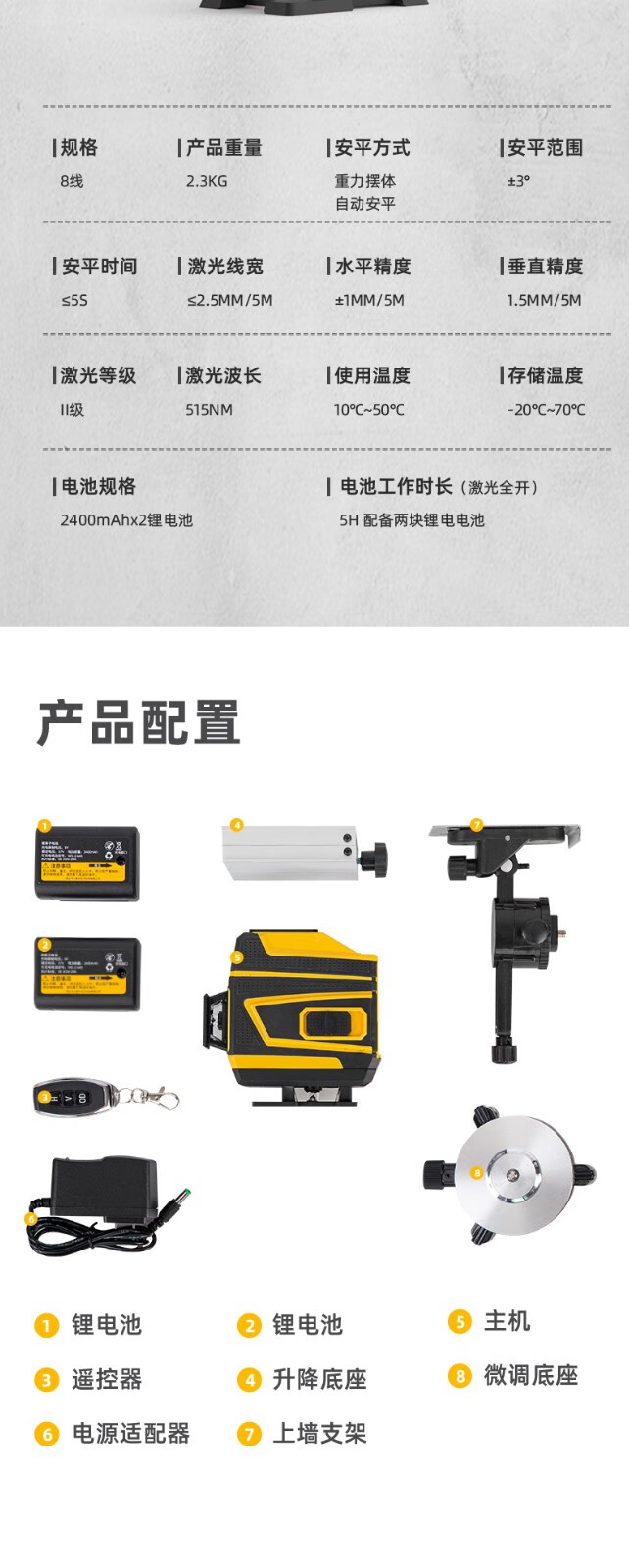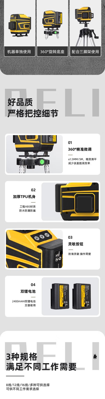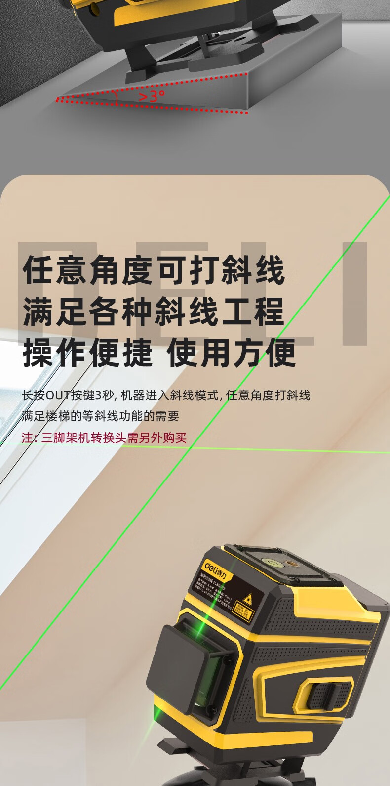 Deli 12-line level meter, high-precision strong light green light laser wall-mounting meter, infrared ultra-bright thin line 16-line floor leveling meter, 8-line wall-mounting level meter all-in-one machine