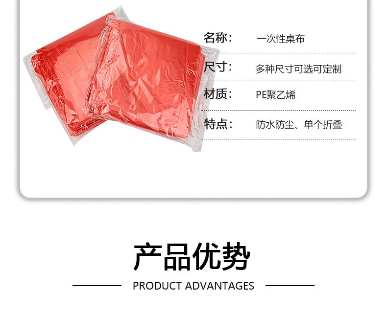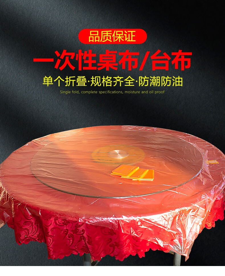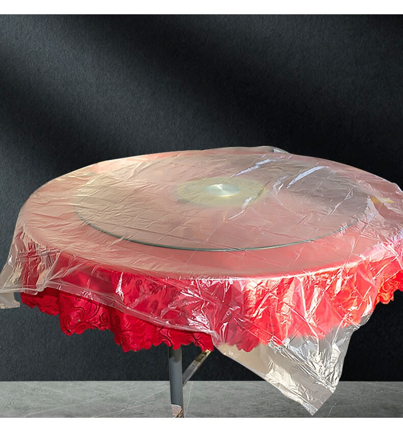 Thick new disposable tablecloth waterproof and oil-proof thickened transparent red square round dining table camping plastic large tablecloth red thickened 240cm*240cm 100 sheets