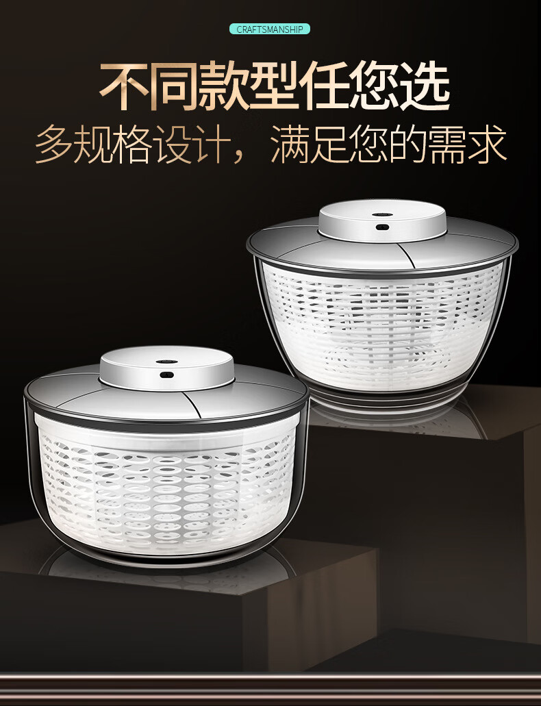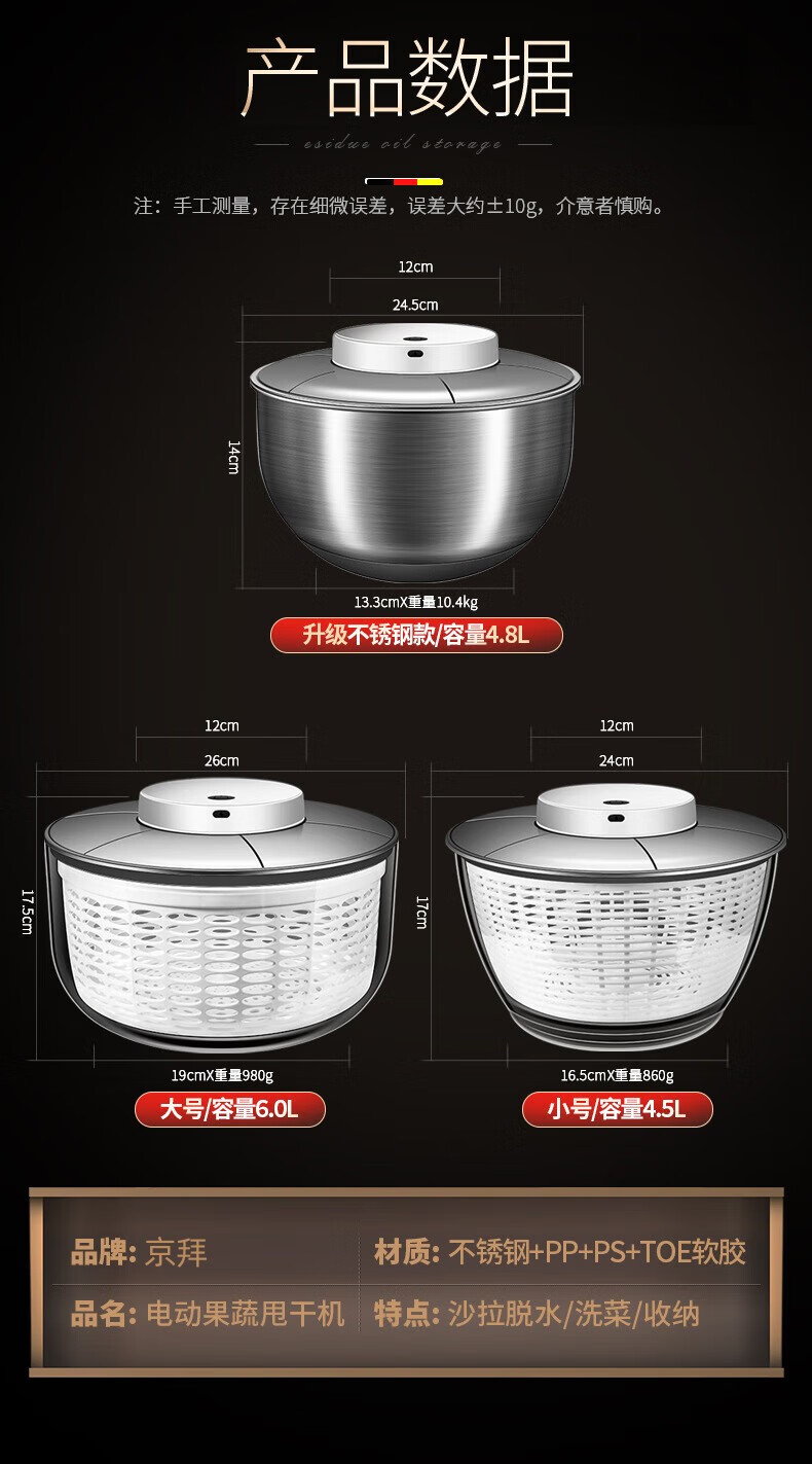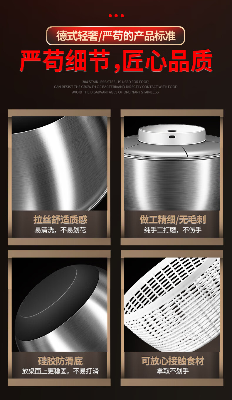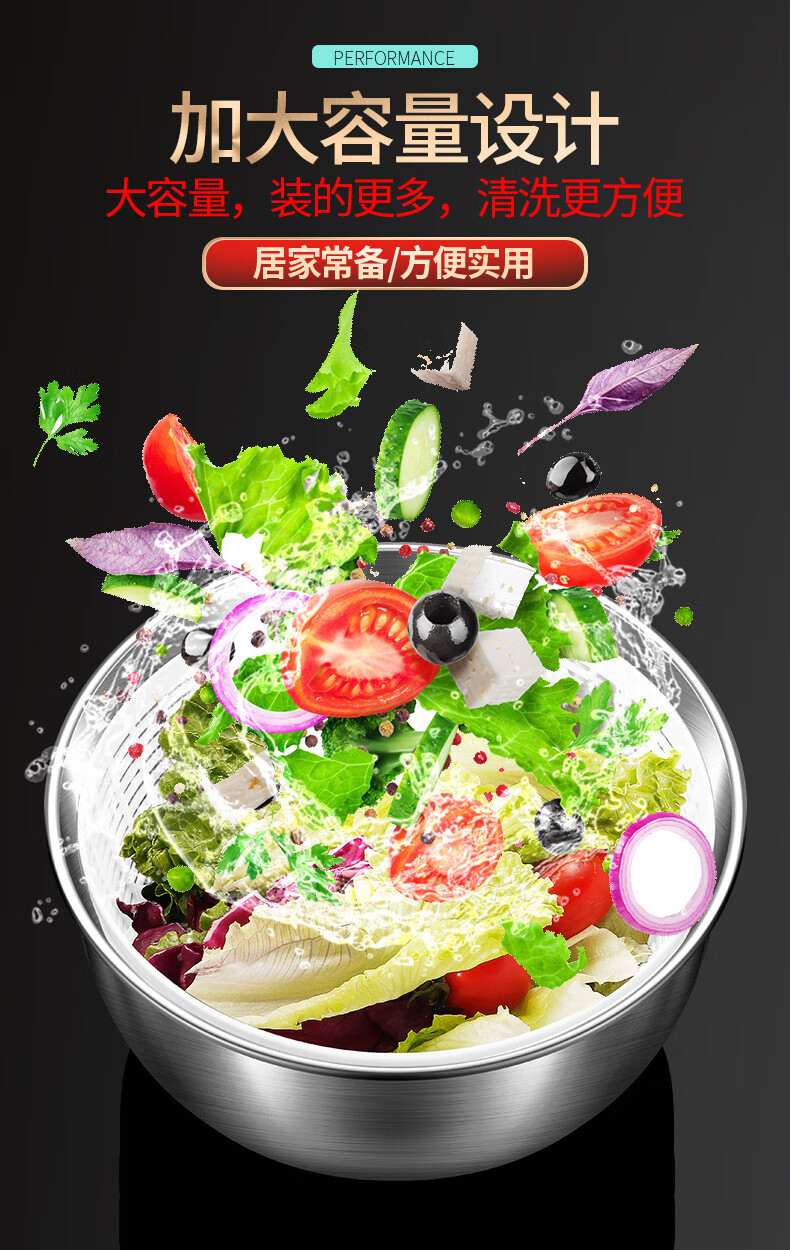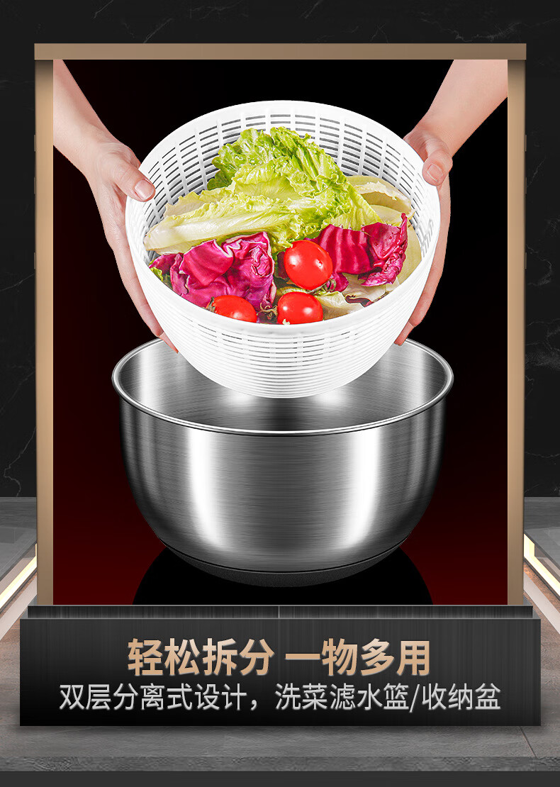 Jingbai stainless steel vegetable salad dehydrator hand-cranked deoiling and drying machine fruit and vegetable drain basket kitchen household vegetable sink stainless steel large 3800ML manual dryer