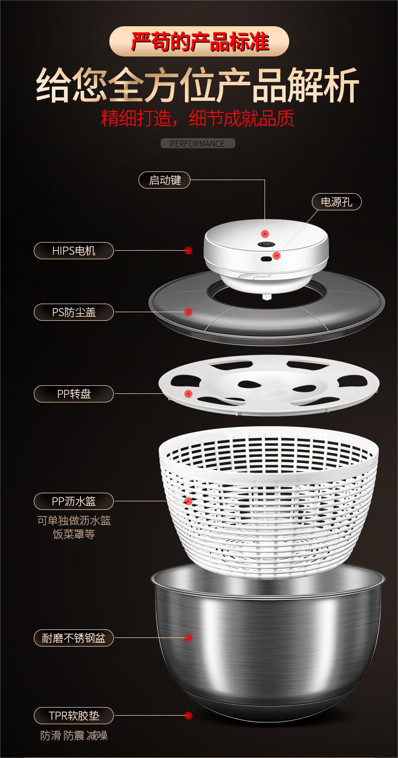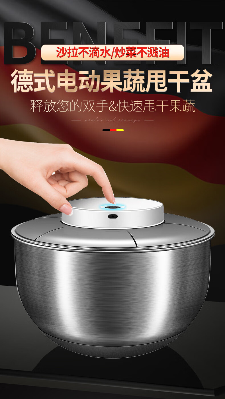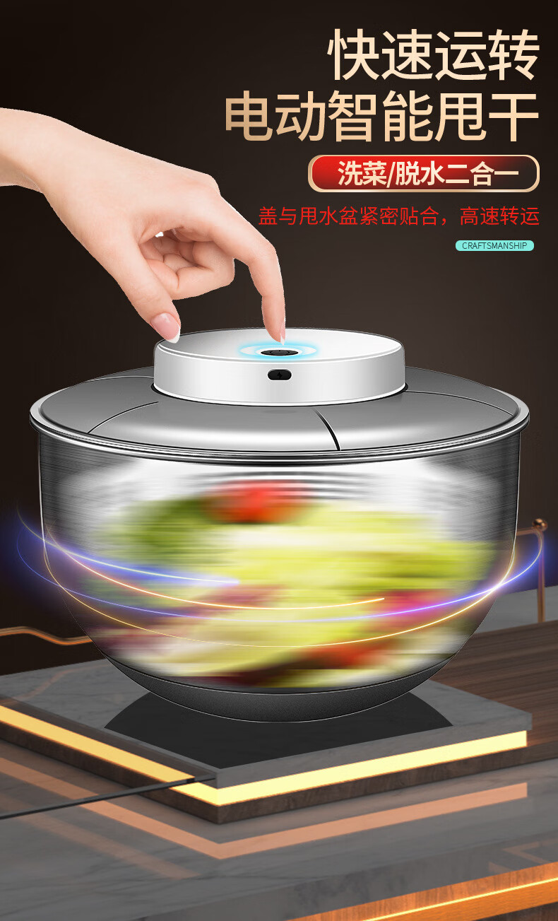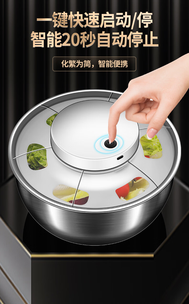 Jingbai stainless steel vegetable salad dehydrator hand-cranked deoiling and drying machine fruit and vegetable drain basket kitchen household vegetable sink stainless steel large 3800ML manual dryer