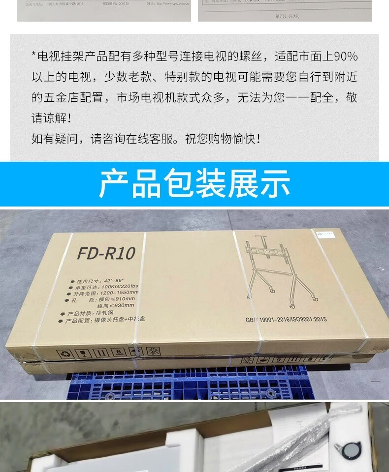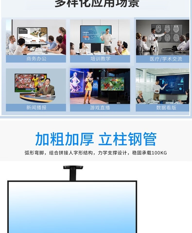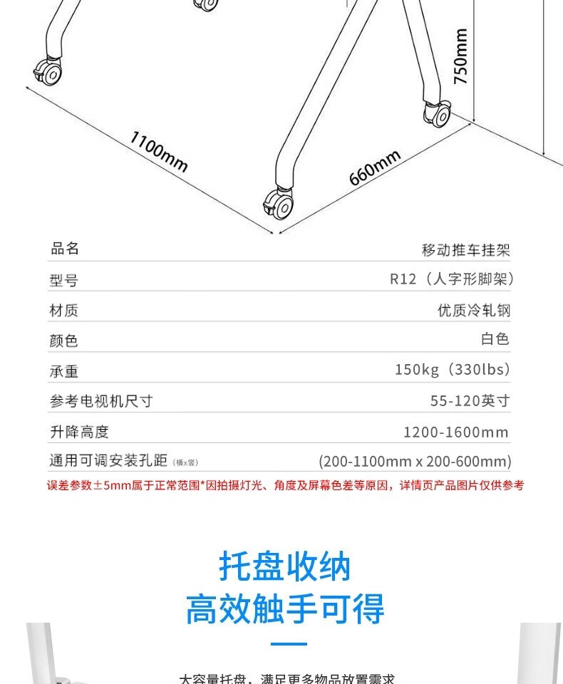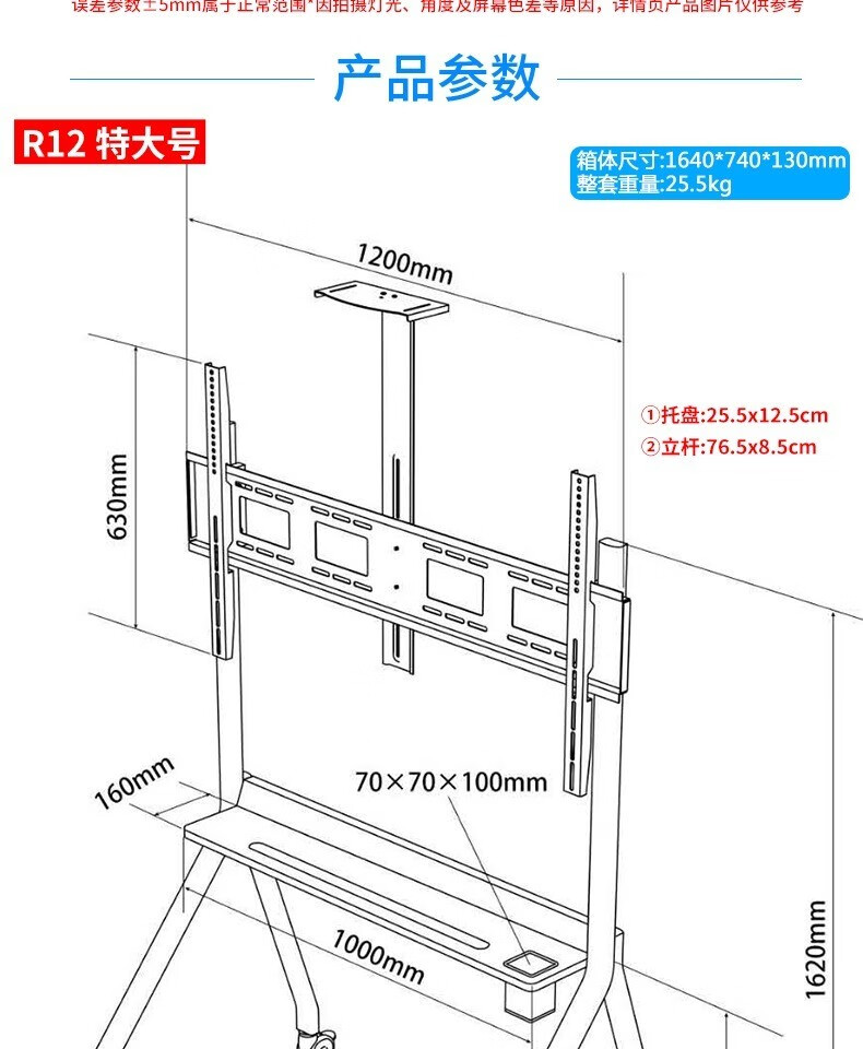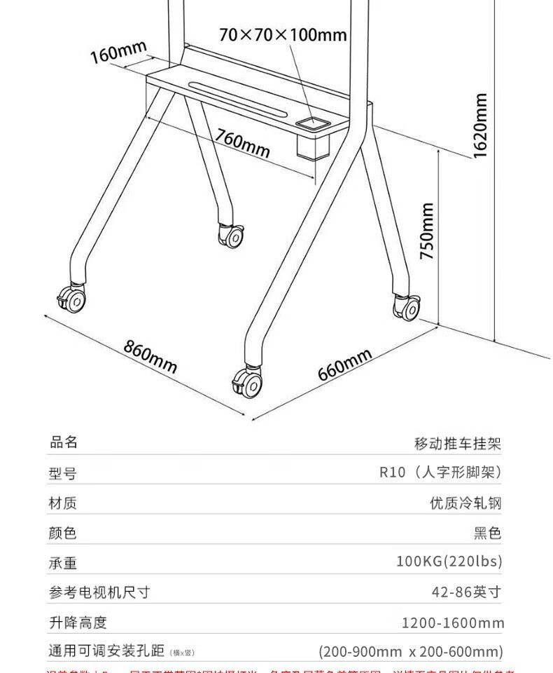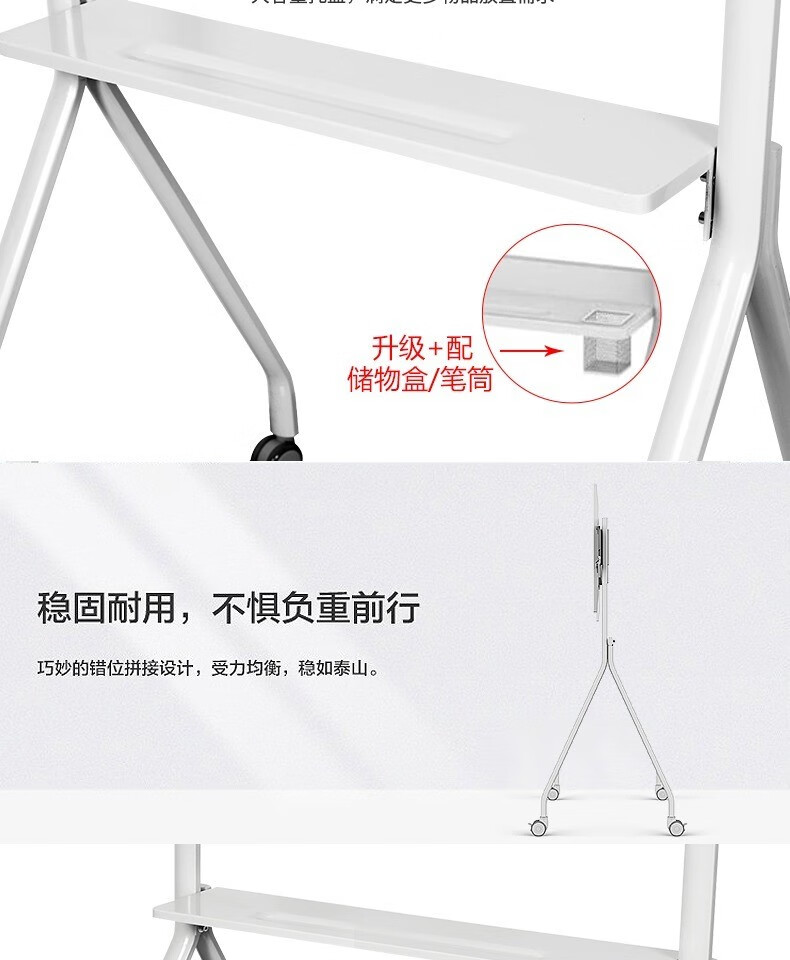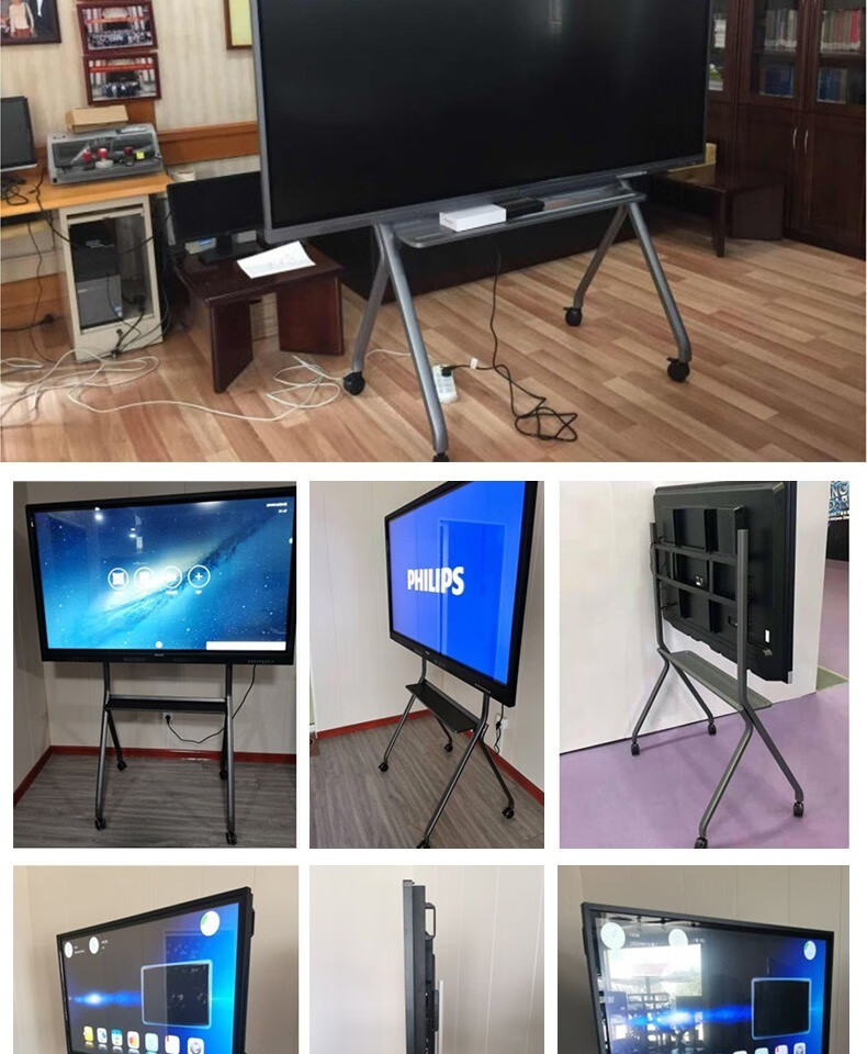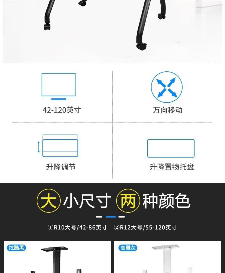 Suitable for 55-120/inch Huawei Seewo Lenovo Xiaomi Hisense TCL Senke Digital Crown Council Tablet Mobile Stand TV Mount Touch All-in-One Machine Floor Bracket R10 Large/Cool Black (42-86 Inch) Medical Wheel + Top Tray