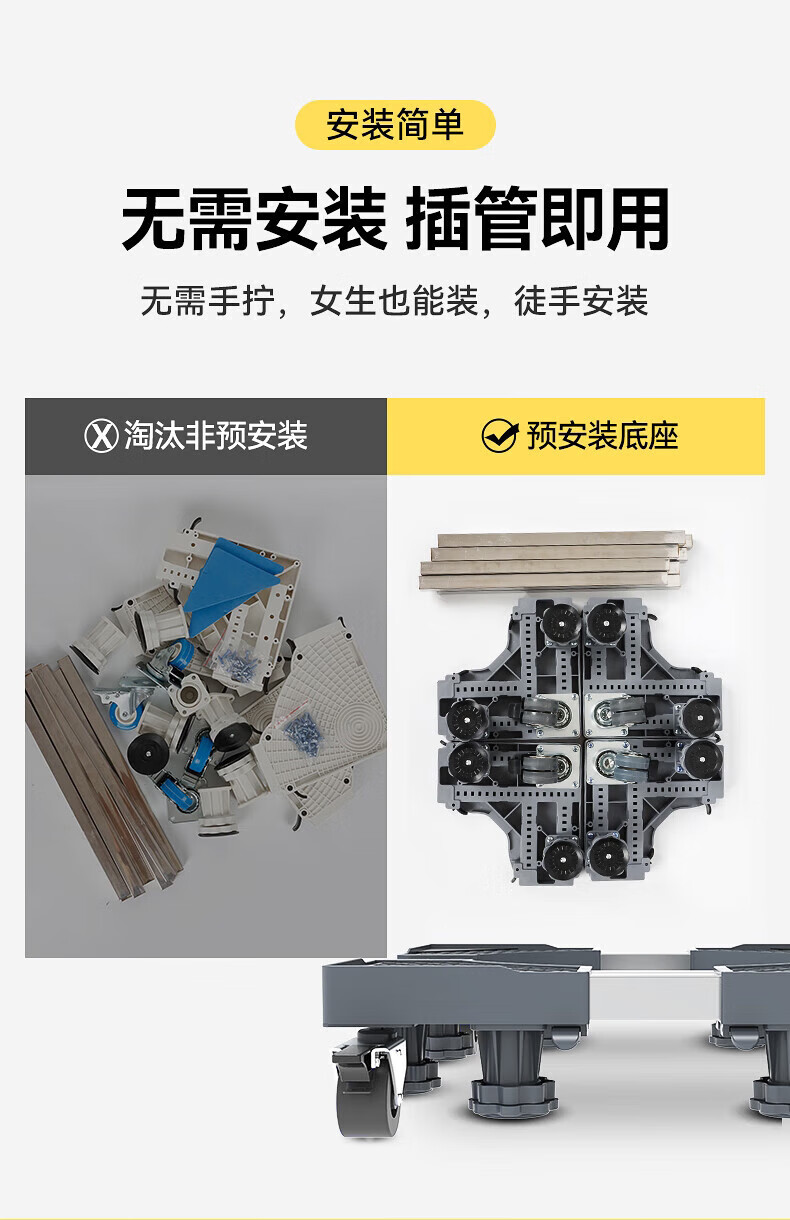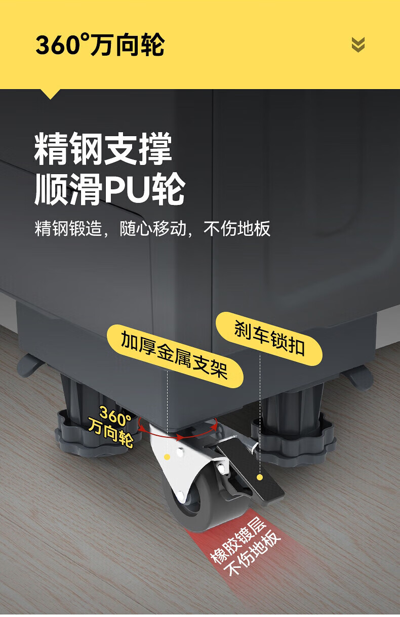 Washing machine base mobile rack fully automatic anti-slip anti-shock foot pad universal wheel refrigerator stand heightening tray universal single tube four king foot single wheel