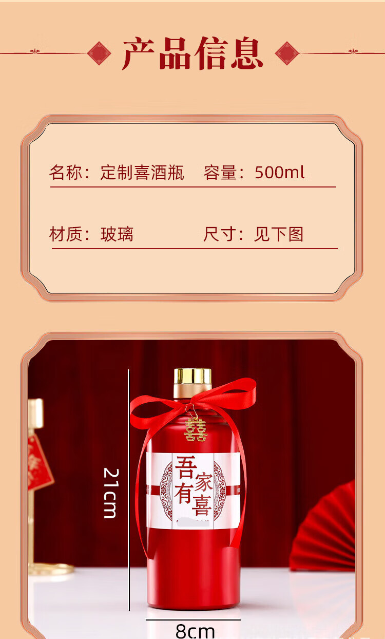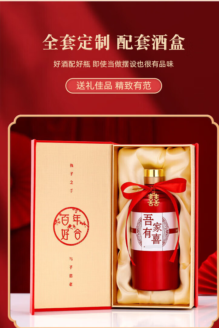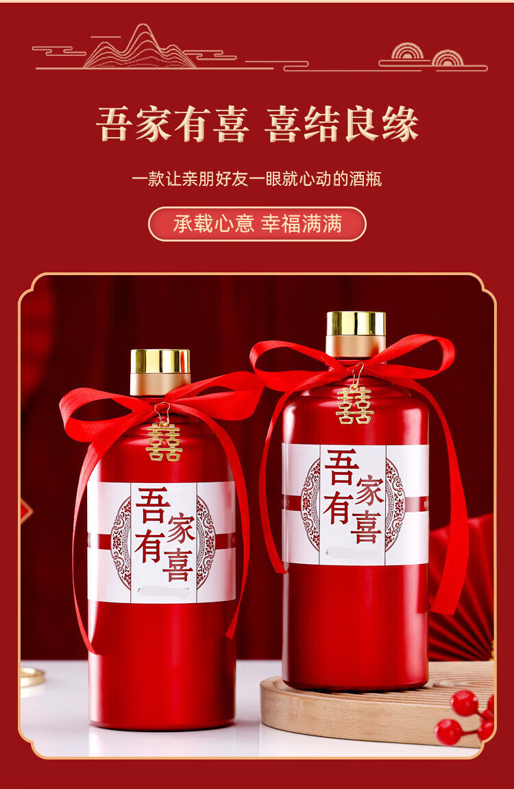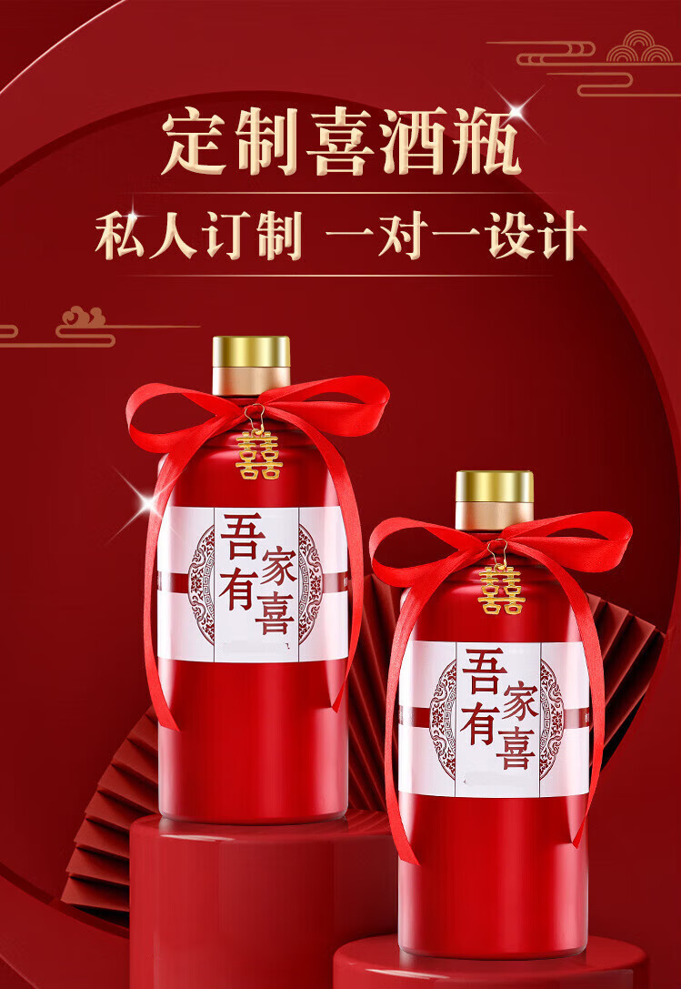 Lai Miao Yixi wine bottle empty bottle white wine bottle wedding wedding banquet one pound wine bottle empty bottle packaging label printing single bottle + card box 500ml (ribbon + hanging ornaments)