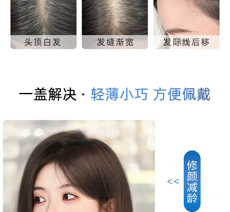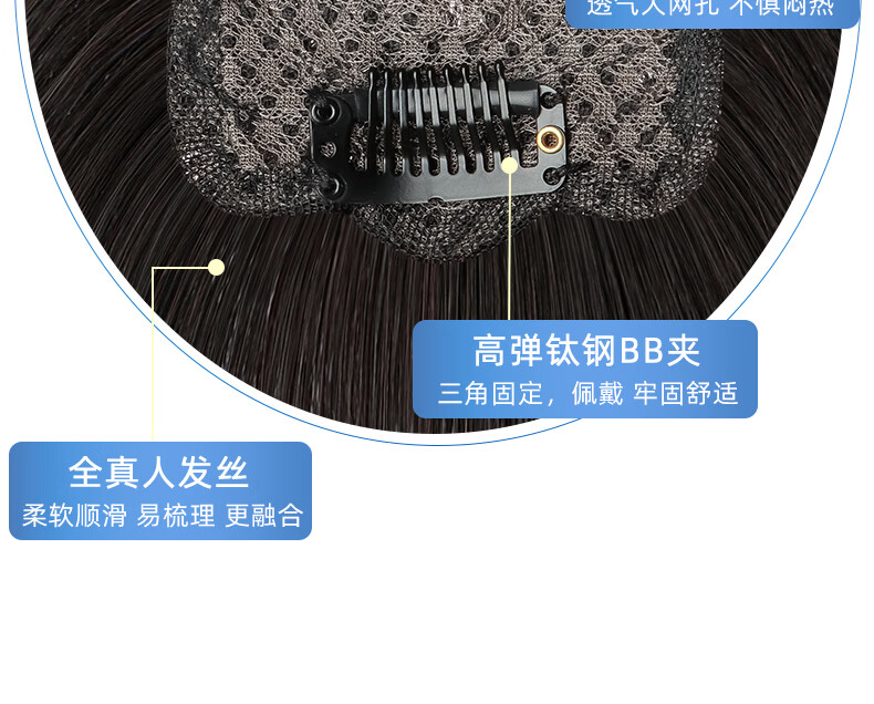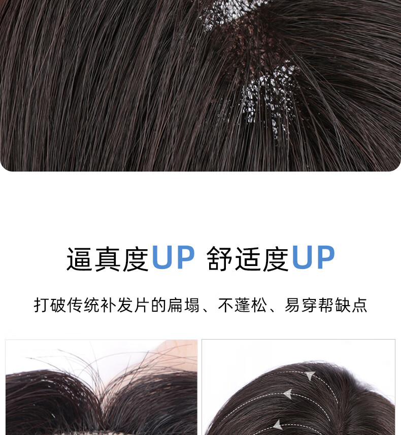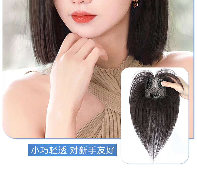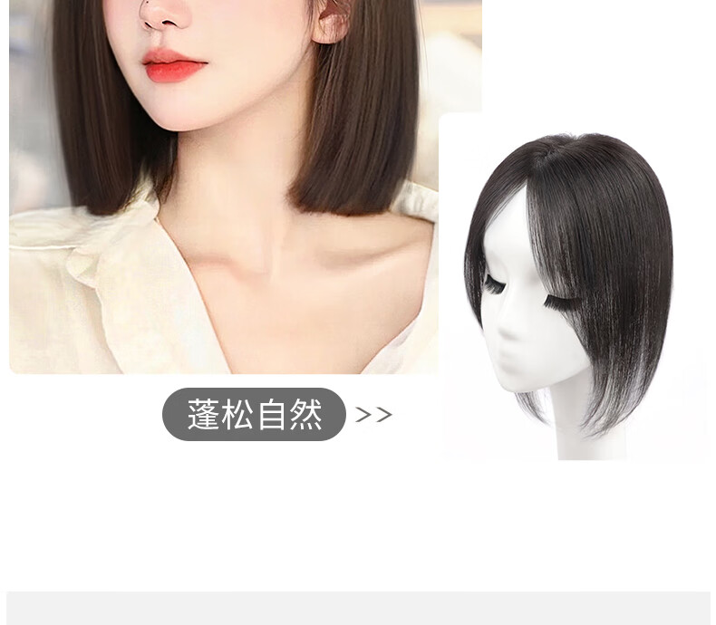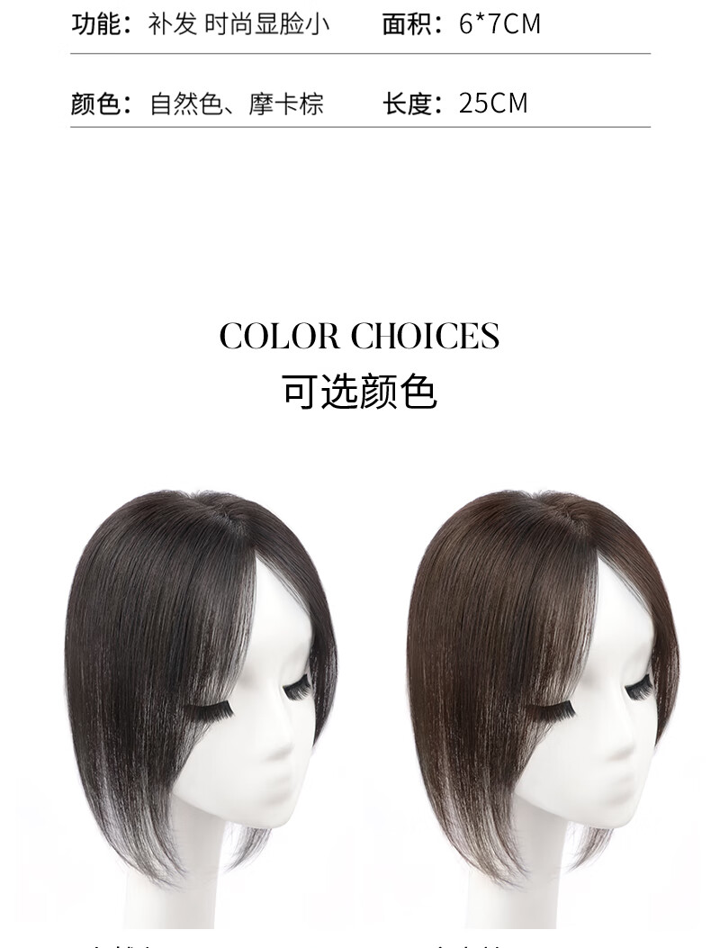 Sky Tree Wig Women's Top Hair Replacement Covering White Hair High Crown Real Hair Light Breathable Hairstyle Seamless Wig Tulip Eight-Character Bangs 6*7 Natural Color 25cm