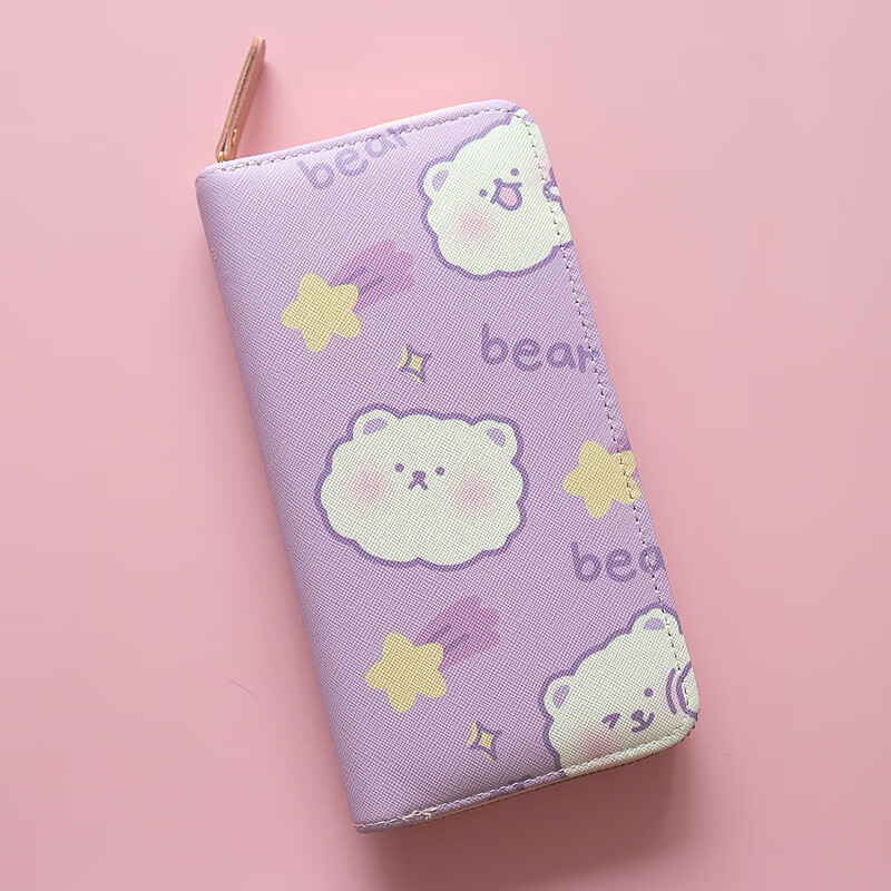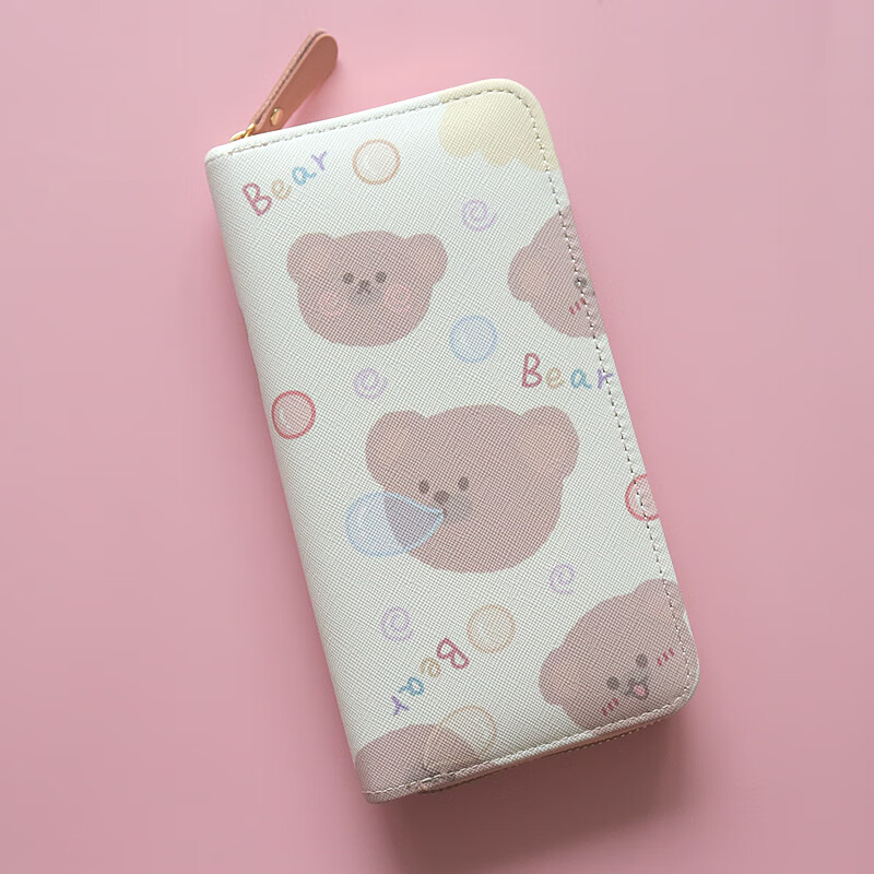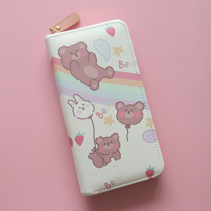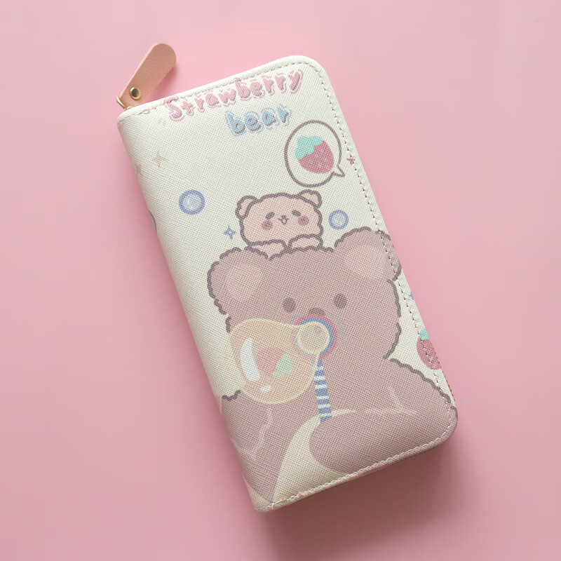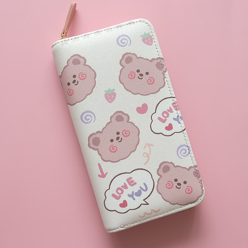 Chenwen children's wallet women's long small fresh zipper large capacity money clip mobile phone storage girl cute card holder long wallet loveyou bear head