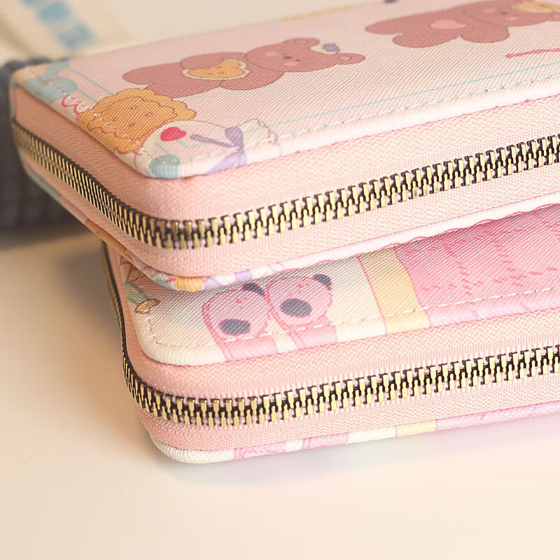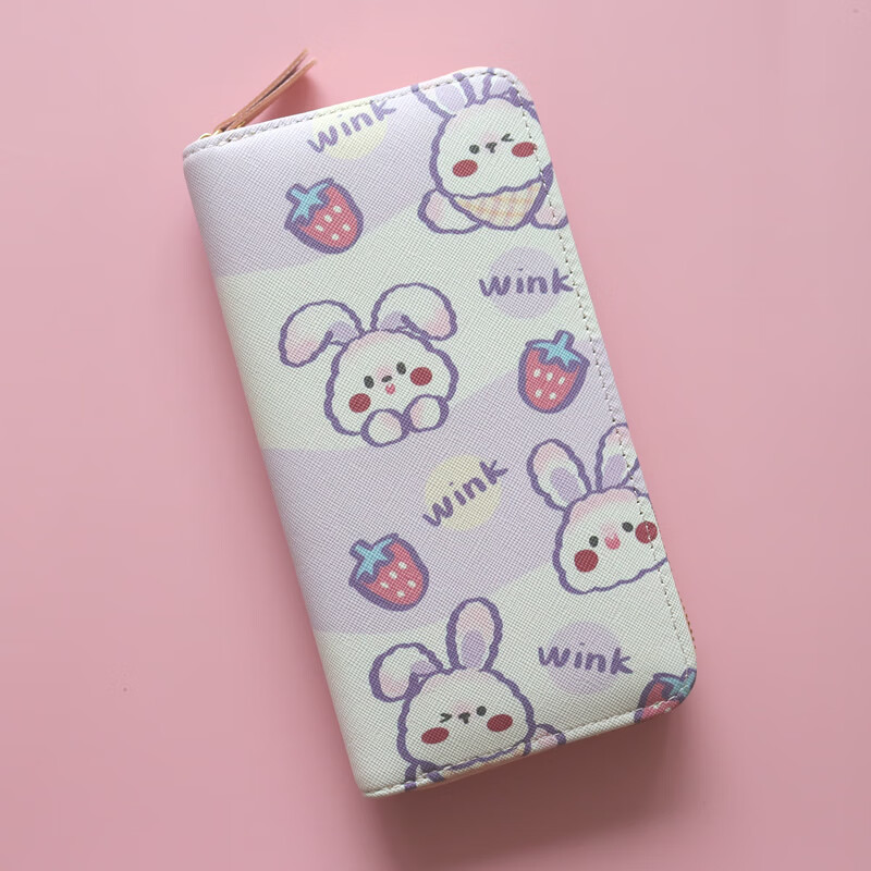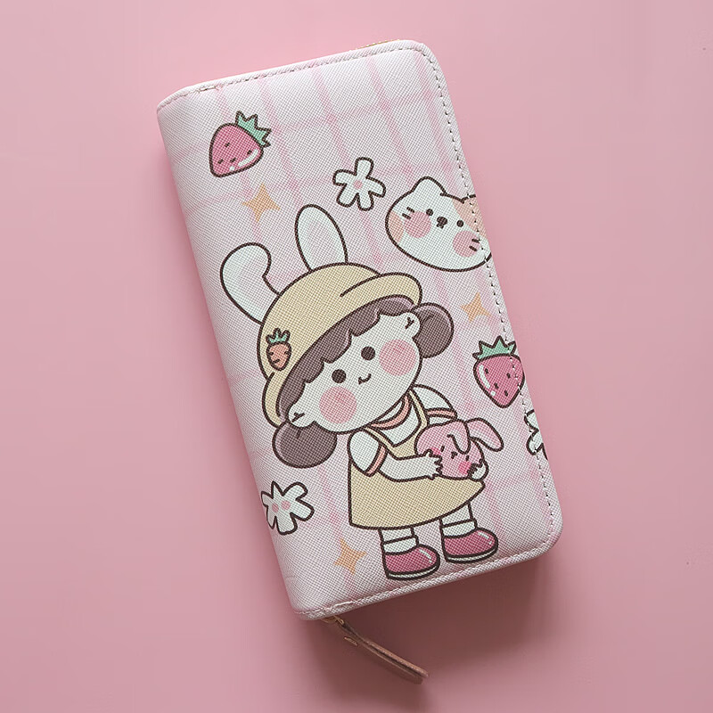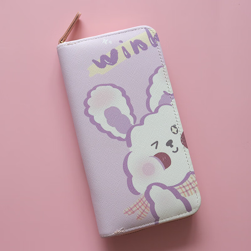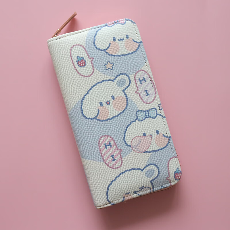 Chenwen children's wallet women's long small fresh zipper large capacity money clip mobile phone storage girl cute card holder long wallet loveyou bear head