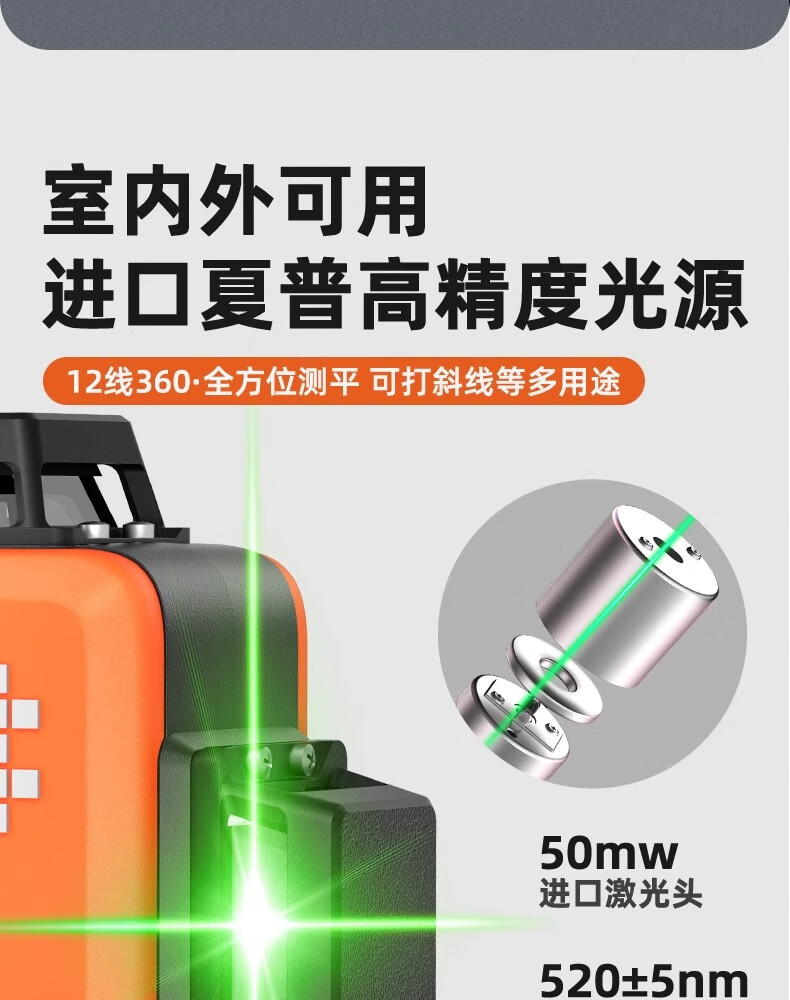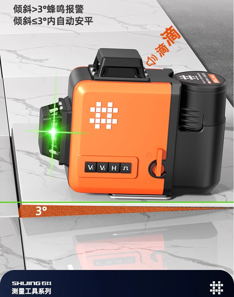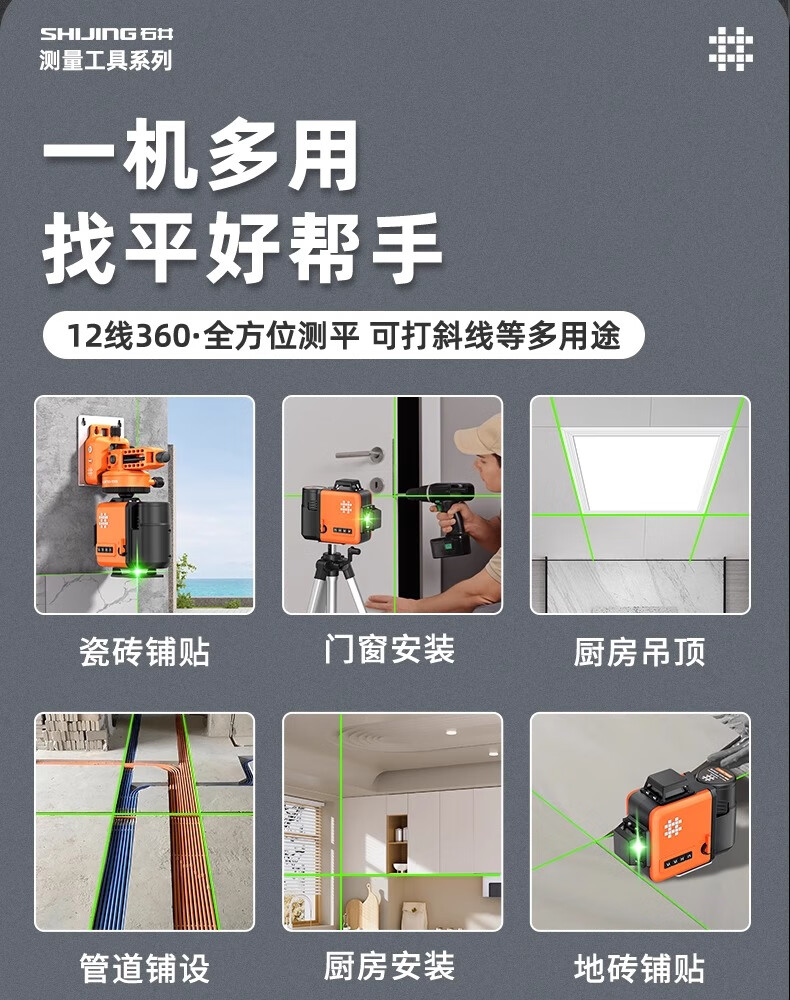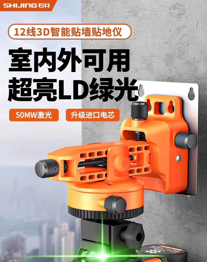 Ishijing (SHIJING) level meter high-precision strong light thin line laser infrared 12 lines outdoor strong light automatic leveling water meter latest model lower level 12 lines super bright green light plastic box high configuration dual power