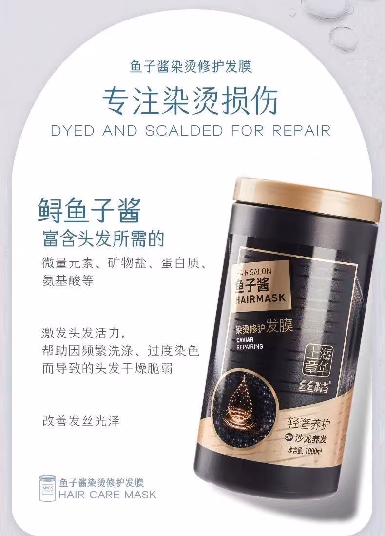 Zhanghua (SAVOL) Silk Essence Caviar Dyeing and Perming Hair Mask Hyaluronic Acid Conditioner Hydrating and Nutritious Caviar Dyeing and Perming Hair Mask 1L*1 Bottle